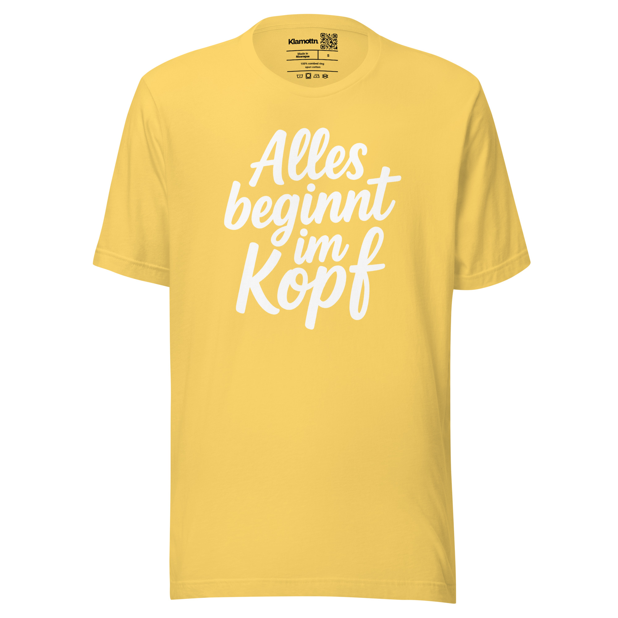 Alles, was du erreichen willst, startet zuerst als kleiner Funke in deinem Kopf – und genau dieses Gefühl fängt das Motiv ein. Es erinnert dich daran, dass deine Gedanken dein stärkster Motor sind, egal ob du gerade vor einer Herausforderung stehst oder ein neues Kapitel beginnst. Die geschwungene Schrift wirkt wie ein gedanklicher Fluss, der dich subtil dazu einlädt, größer zu denken, mutiger zu fühlen und dir selbst mehr zuzutrauen.