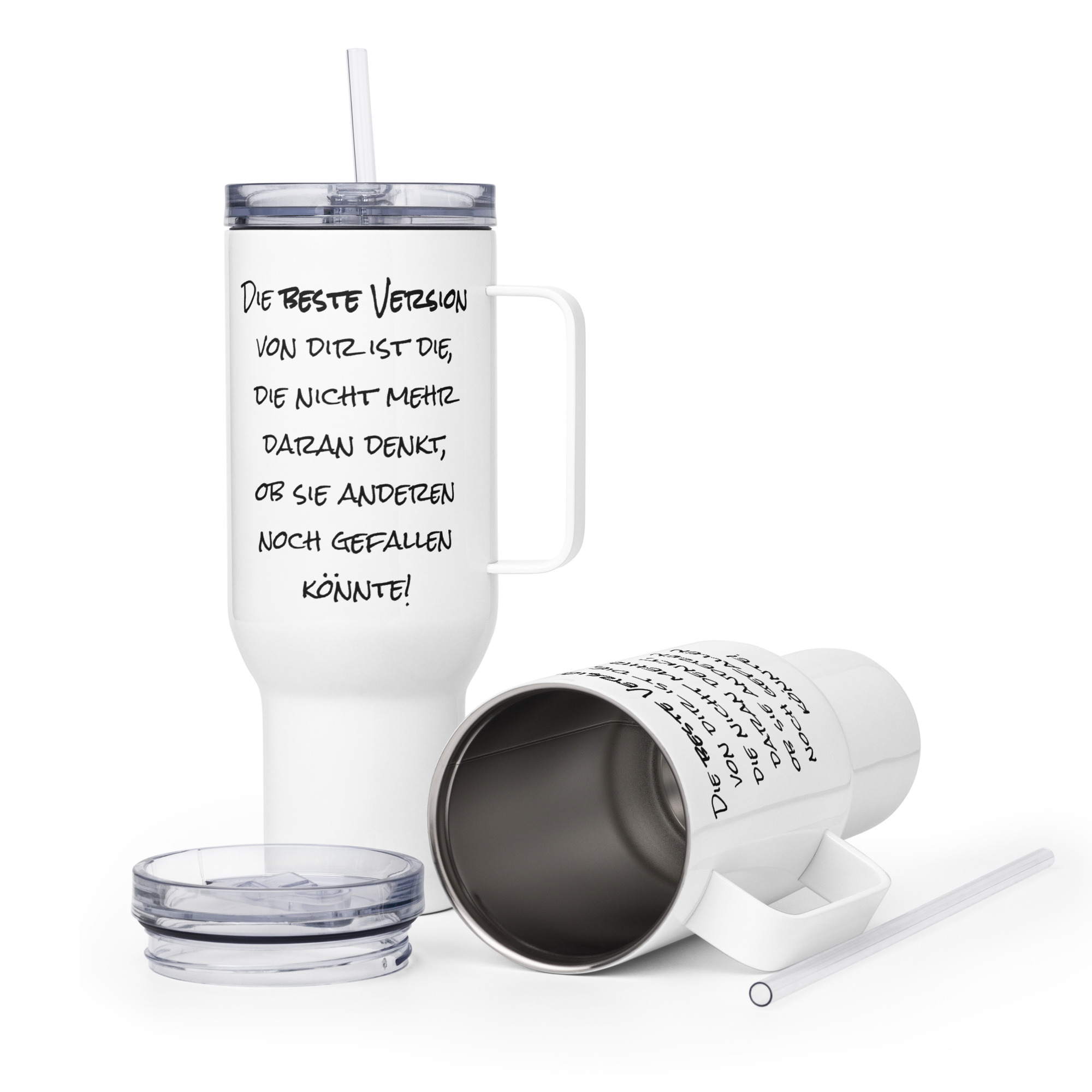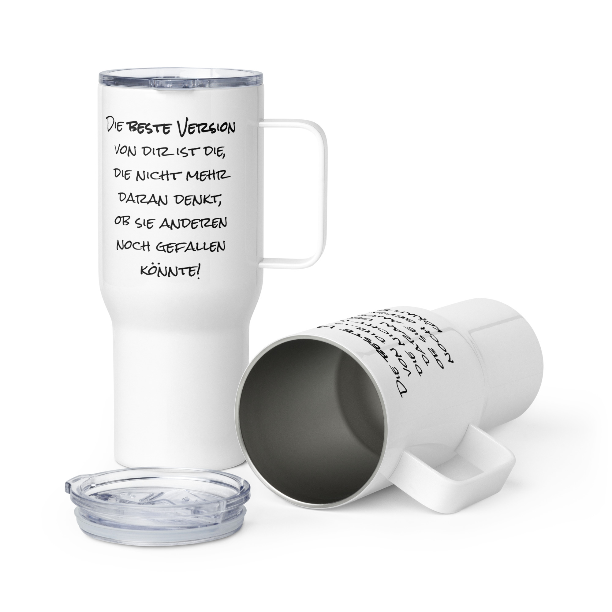 Genieße stilvoll und komfortabel aus diesem extrahohen Reisebecher. Mit seinem eleganten und strapazierfähigen Design wirst du diesen Becher überall hin mitnehmen. Er passt in die meisten Auto-Becherhalter und hat einen auslaufsicheren Kunststoffdeckel. Auf dem Weg zur Arbeit oder in ein neues Abenteuer – dieser Reisebecher hält dein Getränk sicher und auf genau der richtigen Temperatur.