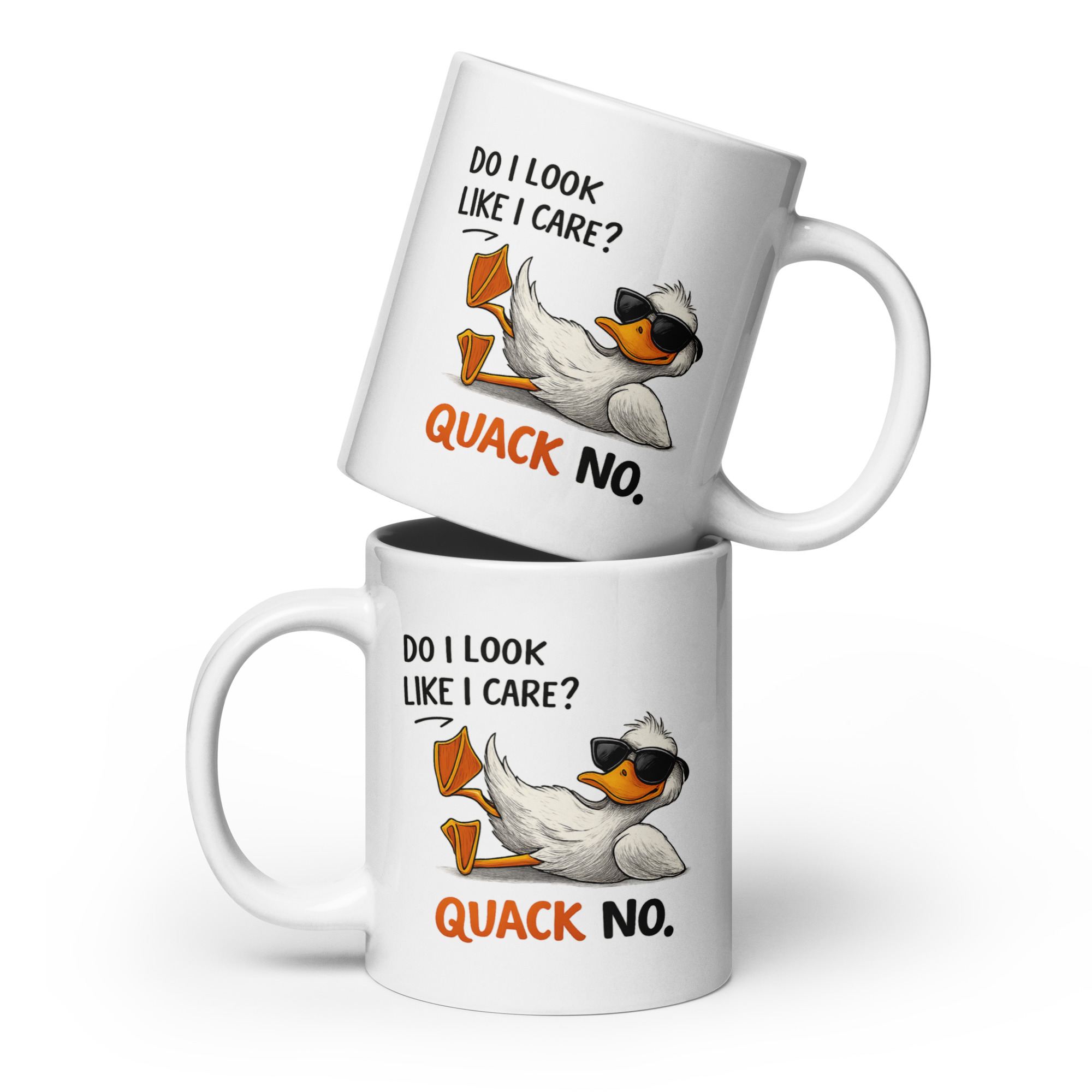 Dieses Motiv sagt alles, ohne ein Wort zu viel zu verlieren. Die lässige Ente lehnt sich zurück, Sonnenbrille auf, Haltung klar: Mir egal, was du denkst. Genau diese Mischung aus Humor, Attitüde und Gleichgültigkeit trifft den Nerv einer Generation, die sich nicht mehr verbiegen lässt.