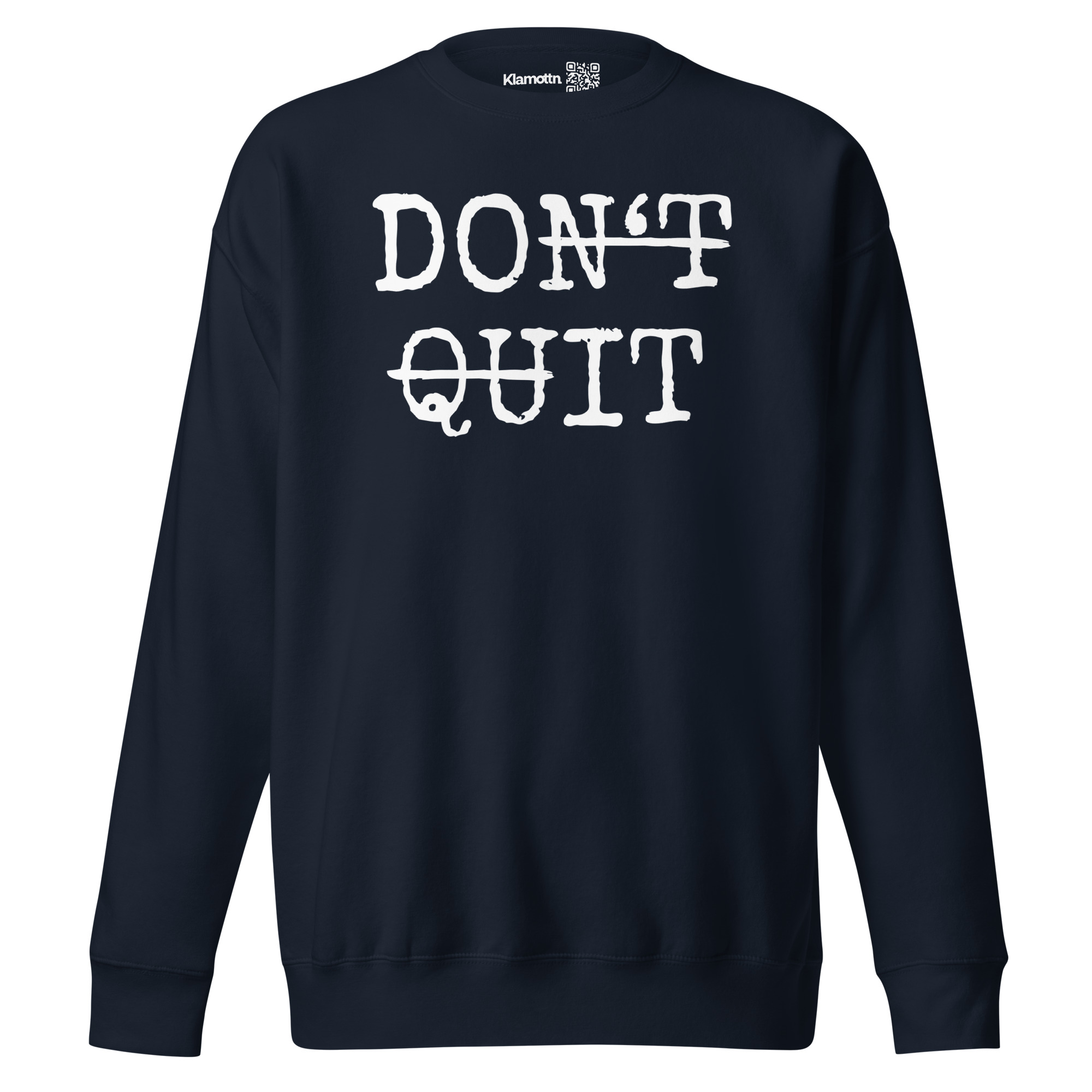 Dieses Motiv trifft dich direkt im Kopf und im Bauch – mit einer doppeldeutigen Botschaft, die stärker kaum sein könnte. „Don’t Quit“ steht fett im Raum, als klare Erinnerung daran, dass Aufgeben nicht dein Style ist. Gleichzeitig sind die Buchstaben „n’t“ und „Qu“ durchgestrichen, wodurch aus dem ernsten „Don’t Quit“ plötzlich ein freches, motivierendes „Do It“ wird.