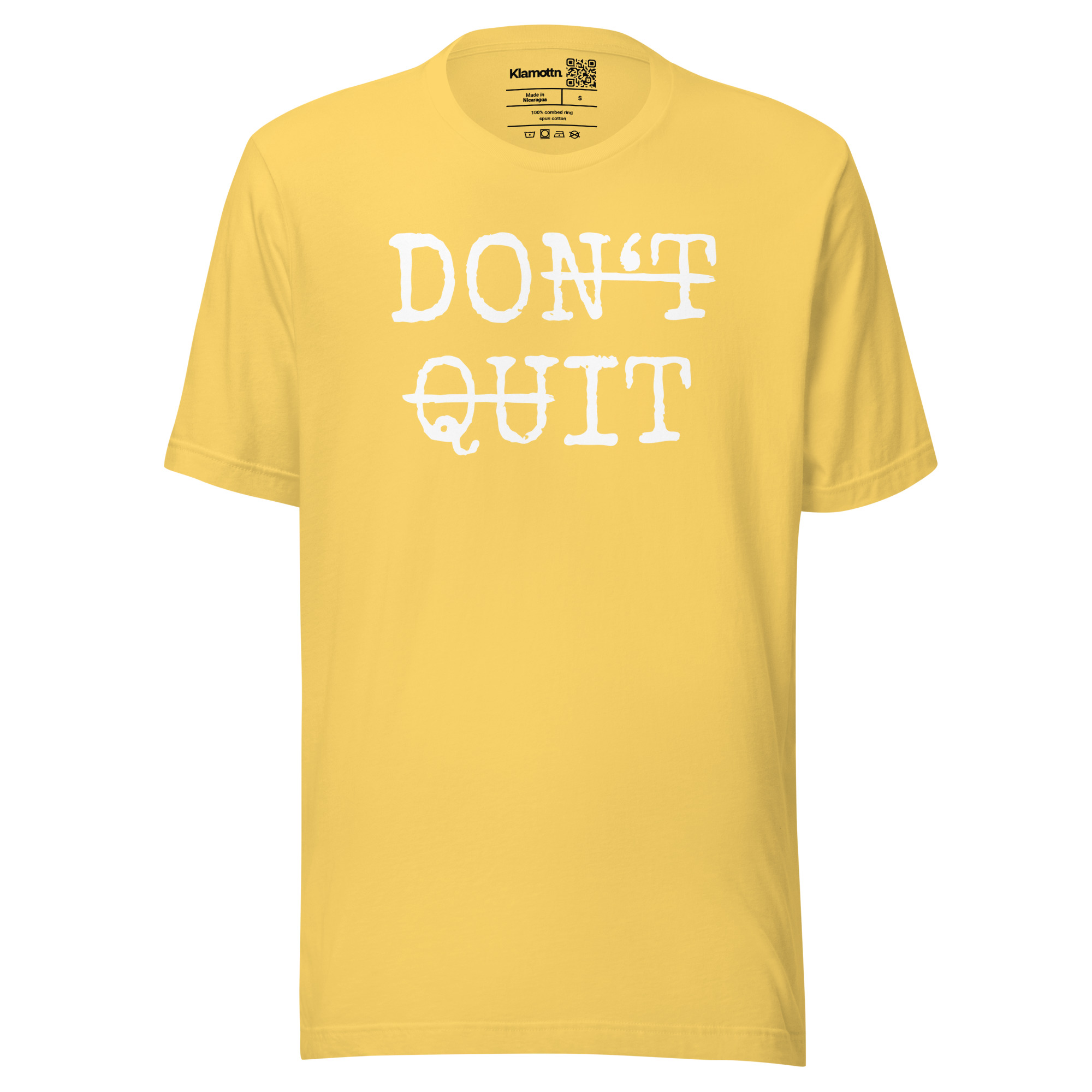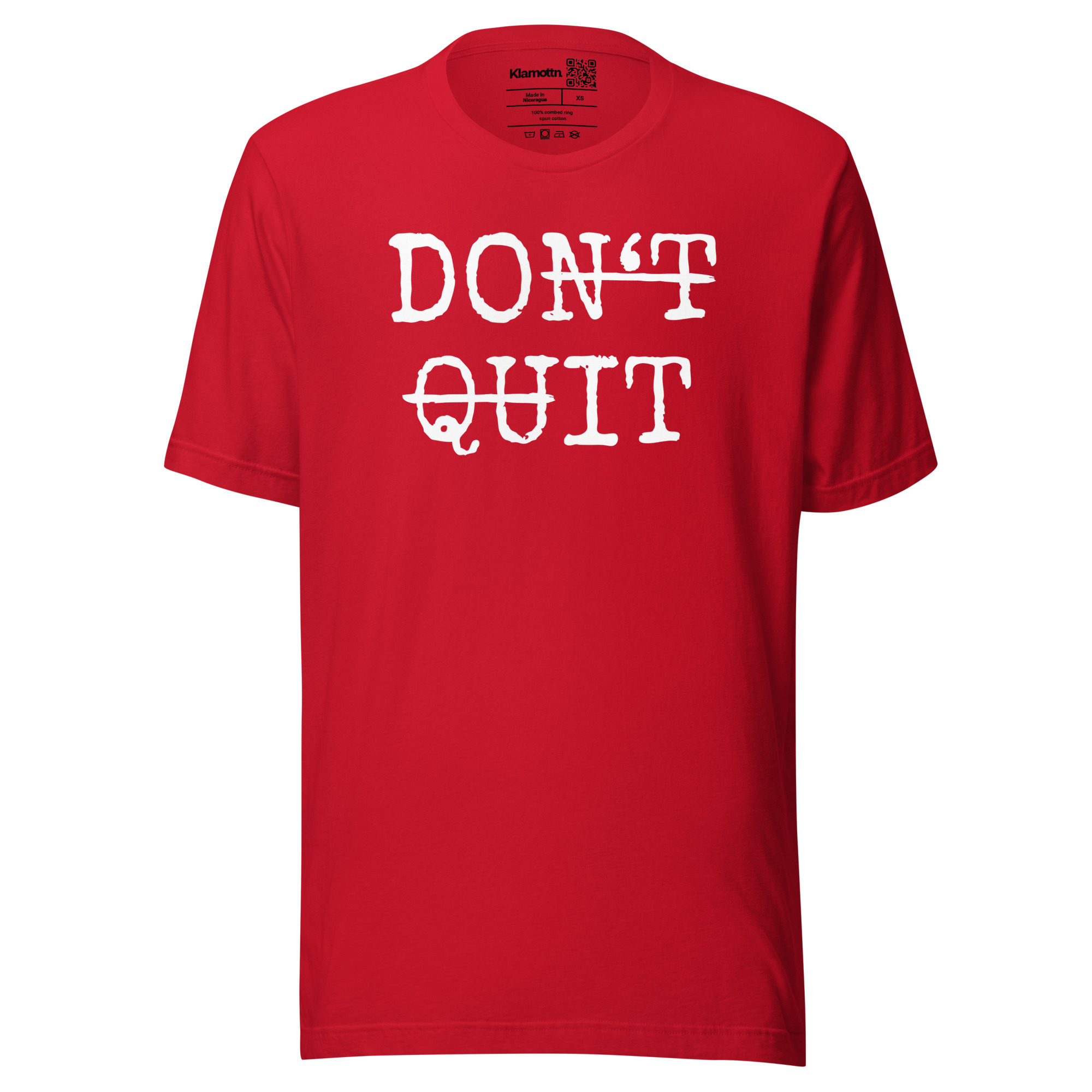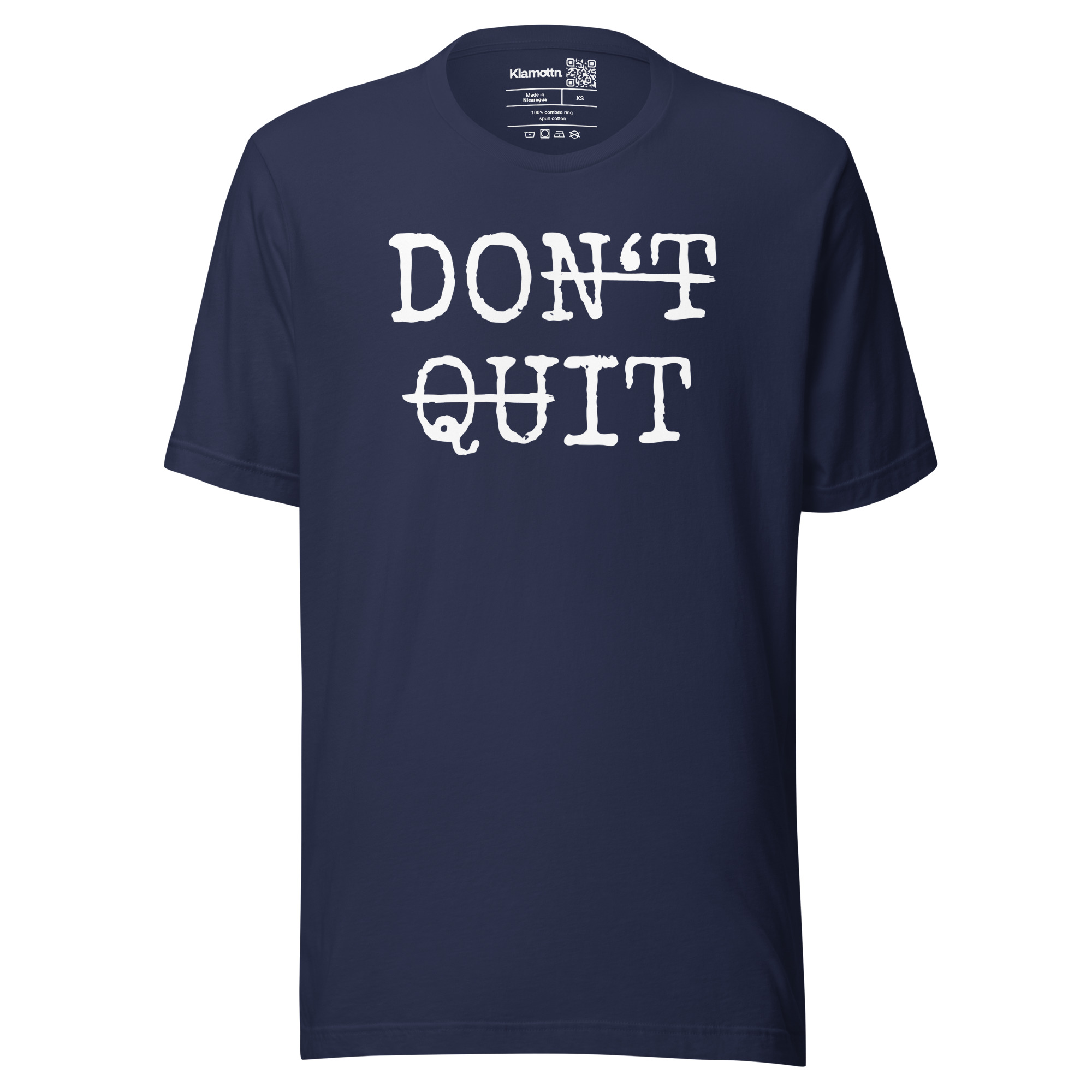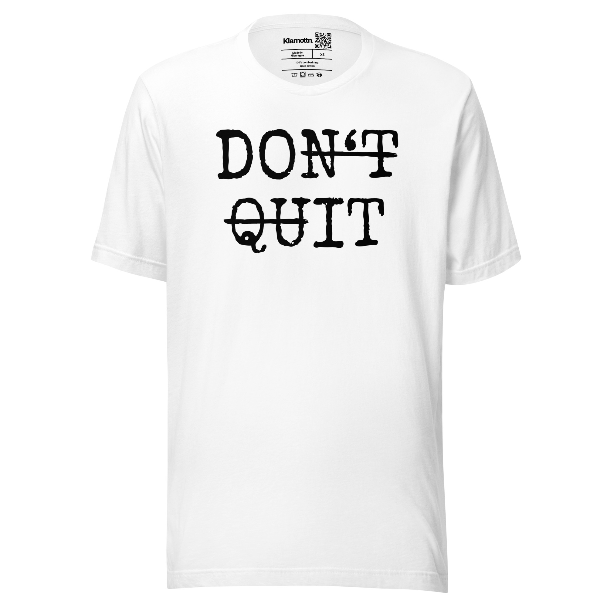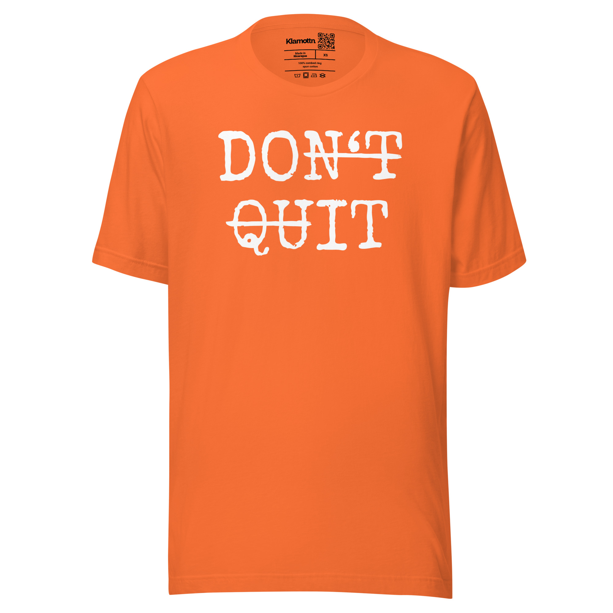 Dieses Motiv trifft dich direkt im Kopf und im Bauch – mit einer doppeldeutigen Botschaft, die stärker kaum sein könnte. „Don’t Quit“ steht fett im Raum, als klare Erinnerung daran, dass Aufgeben nicht dein Style ist. Gleichzeitig sind die Buchstaben „n’t“ und „Qu“ durchgestrichen, wodurch aus dem ernsten „Don’t Quit“ plötzlich ein freches, motivierendes „Do It“ wird.