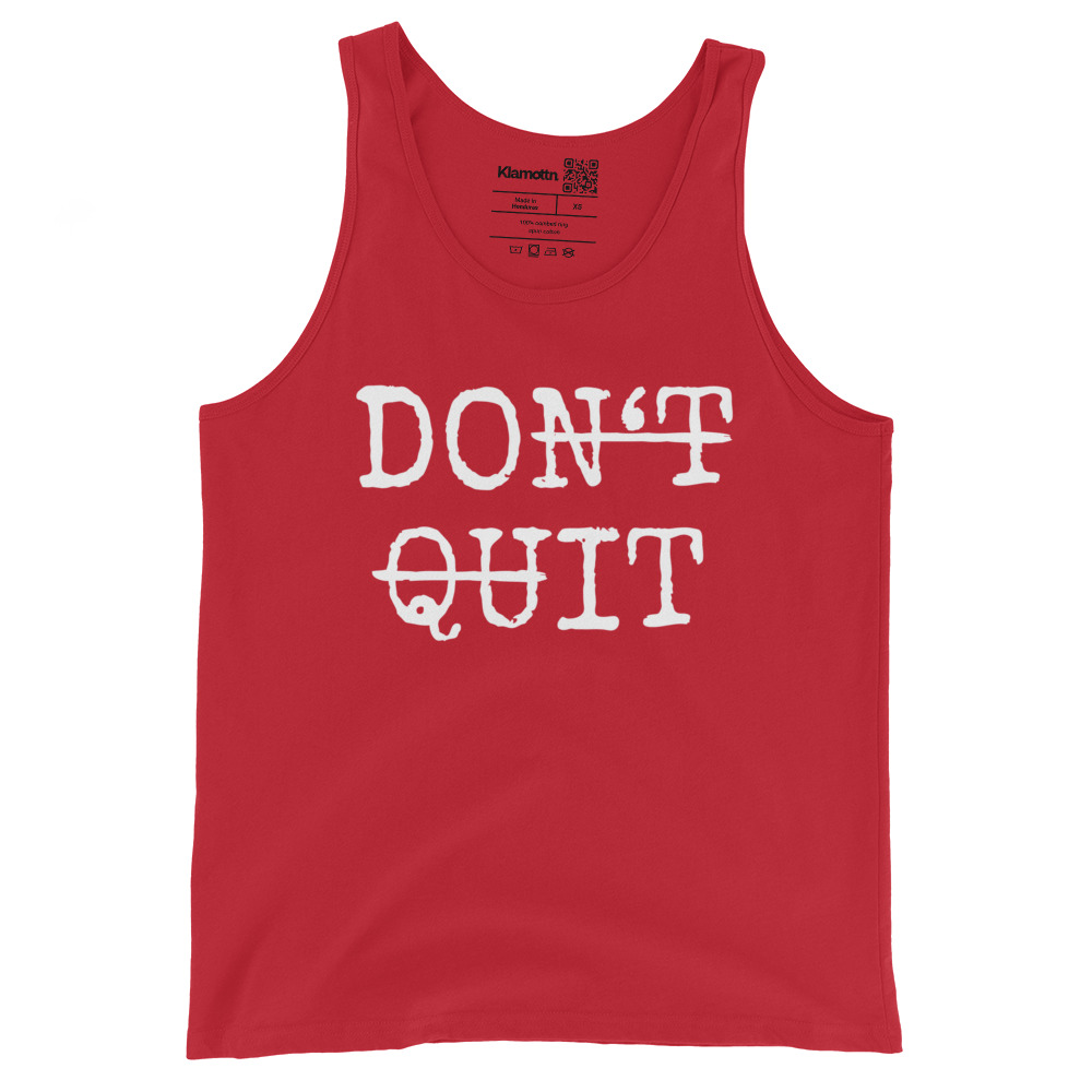 Dieses Motiv trifft dich direkt im Kopf und im Bauch – mit einer doppeldeutigen Botschaft, die stärker kaum sein könnte. „Don’t Quit“ steht fett im Raum, als klare Erinnerung daran, dass Aufgeben nicht dein Style ist. Gleichzeitig sind die Buchstaben „n’t“ und „Qu“ durchgestrichen, wodurch aus dem ernsten „Don’t Quit“ plötzlich ein freches, motivierendes „Do It“ wird.