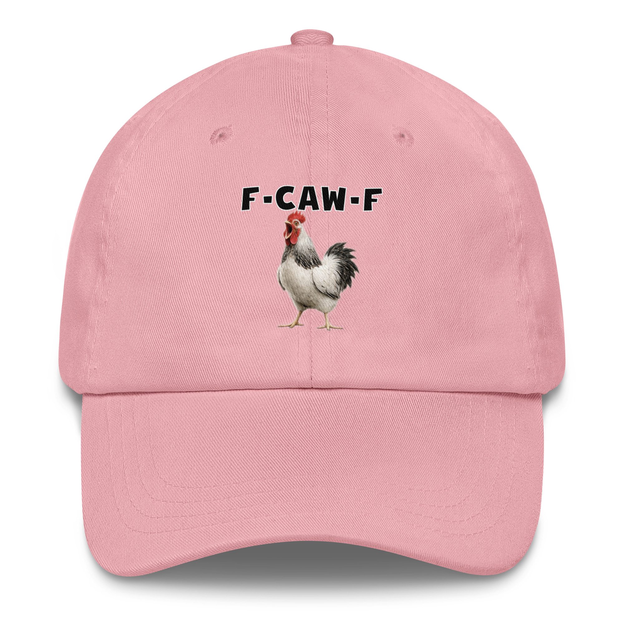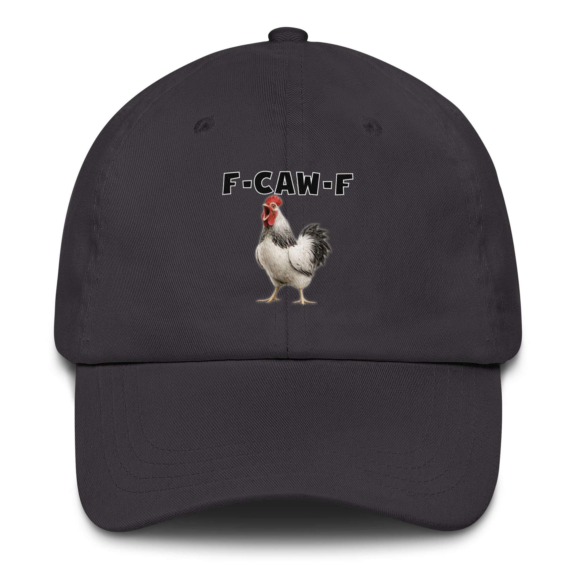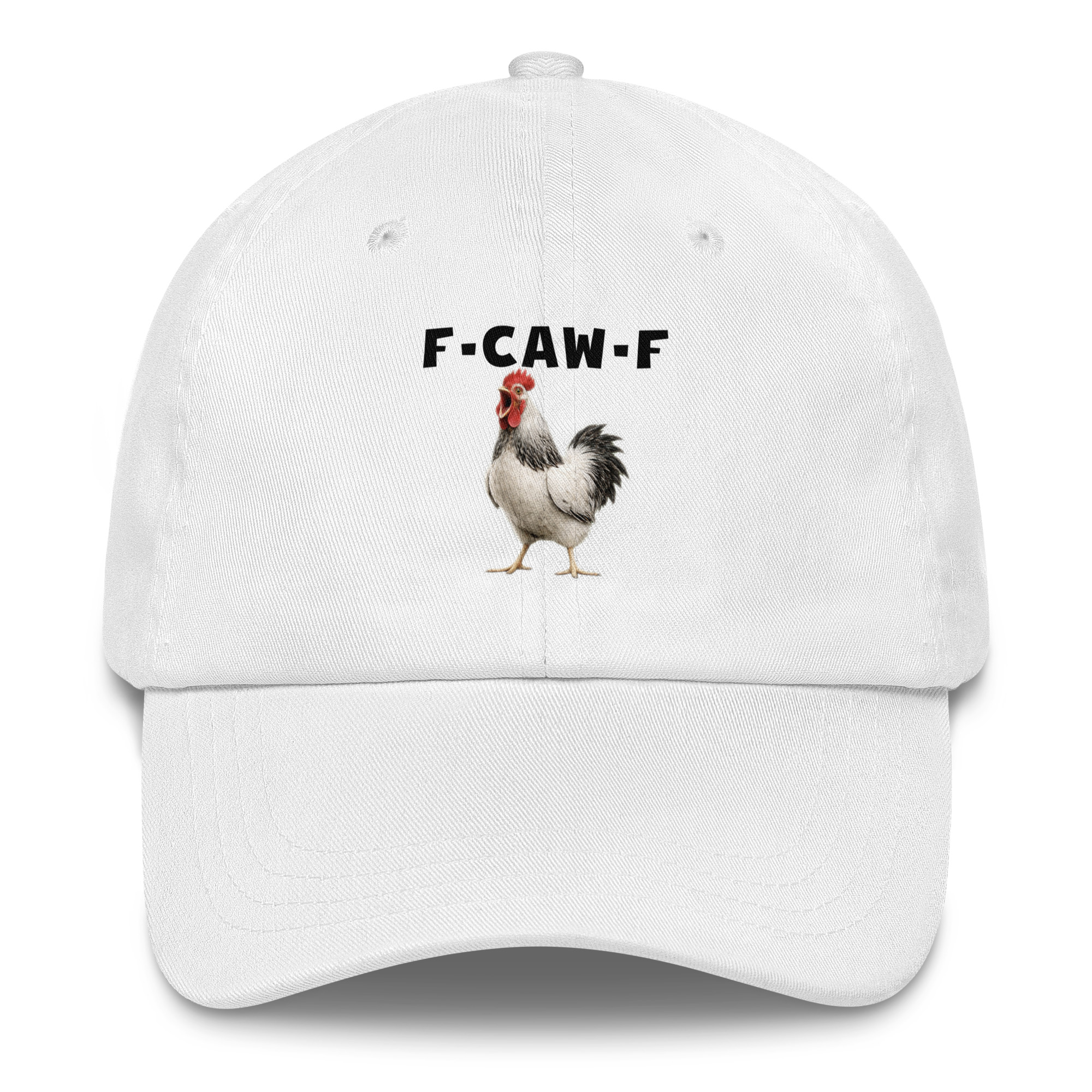 Das ist kein harmloses Gegacker, das ist ein akustischer Mittelfinger mit Federn. Das Motiv greift genau den Moment auf, in dem das Huhn mit weit geöffnetem Schnabel losschreit und dieses Gegacker plötzlich wie „F-Caw-F“ klingt.