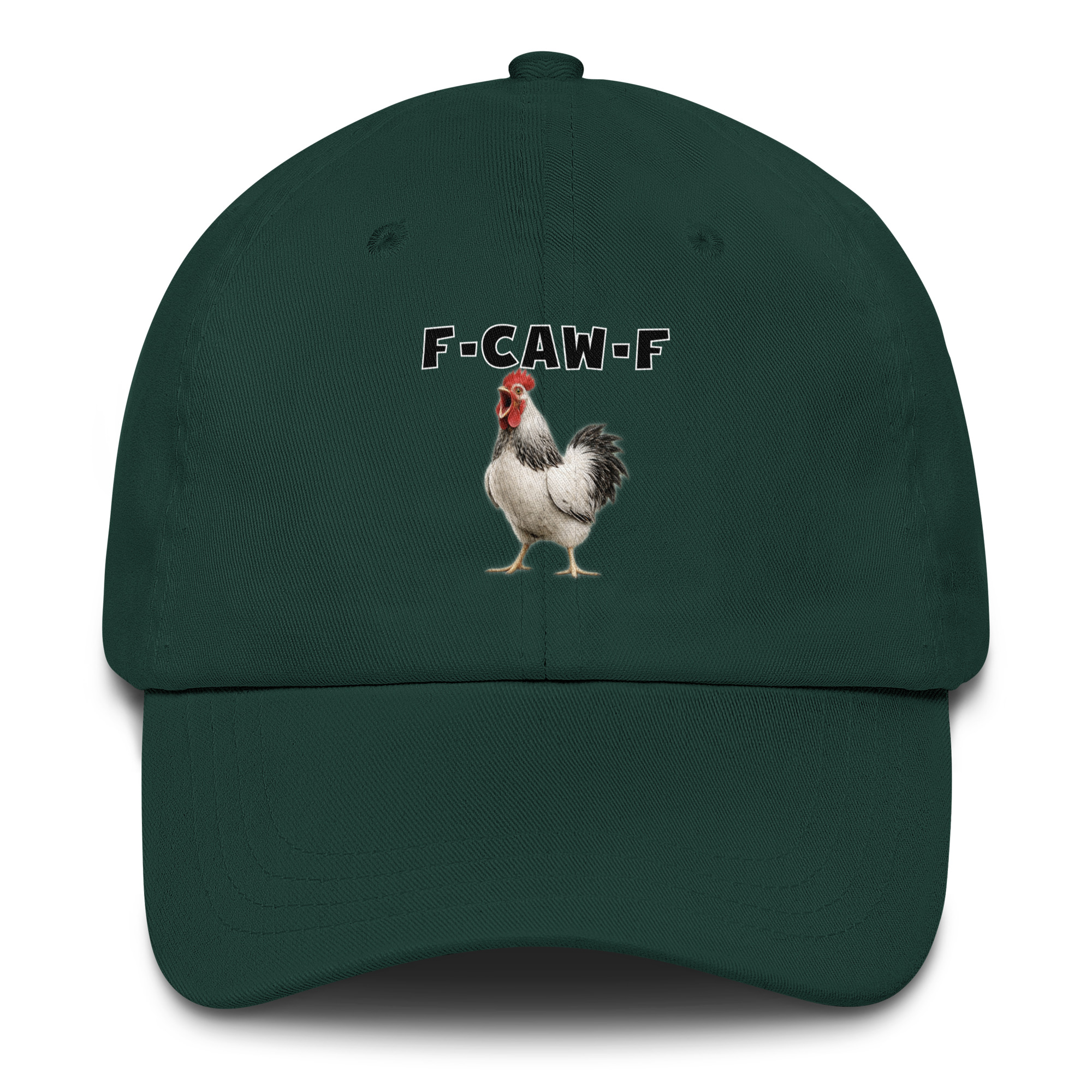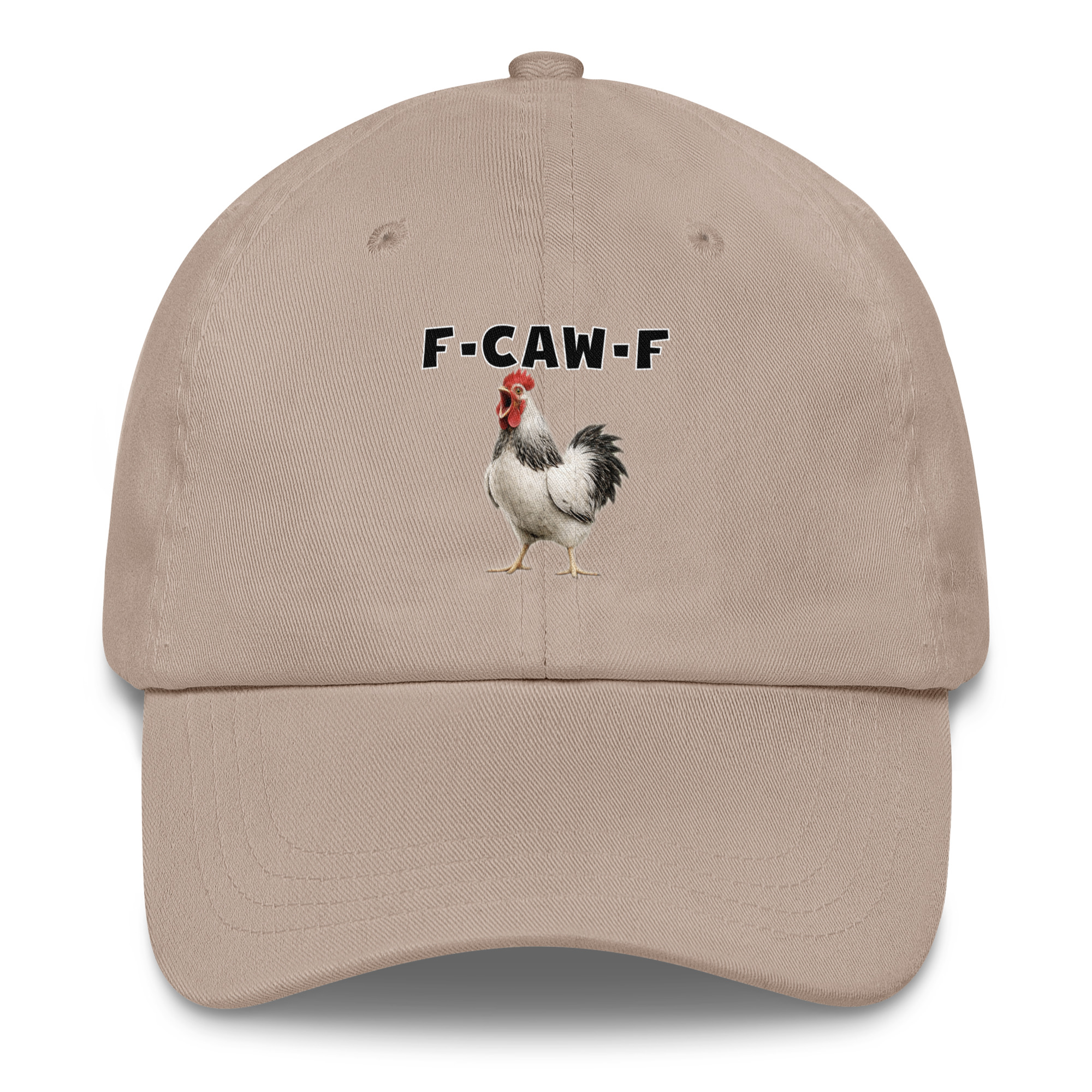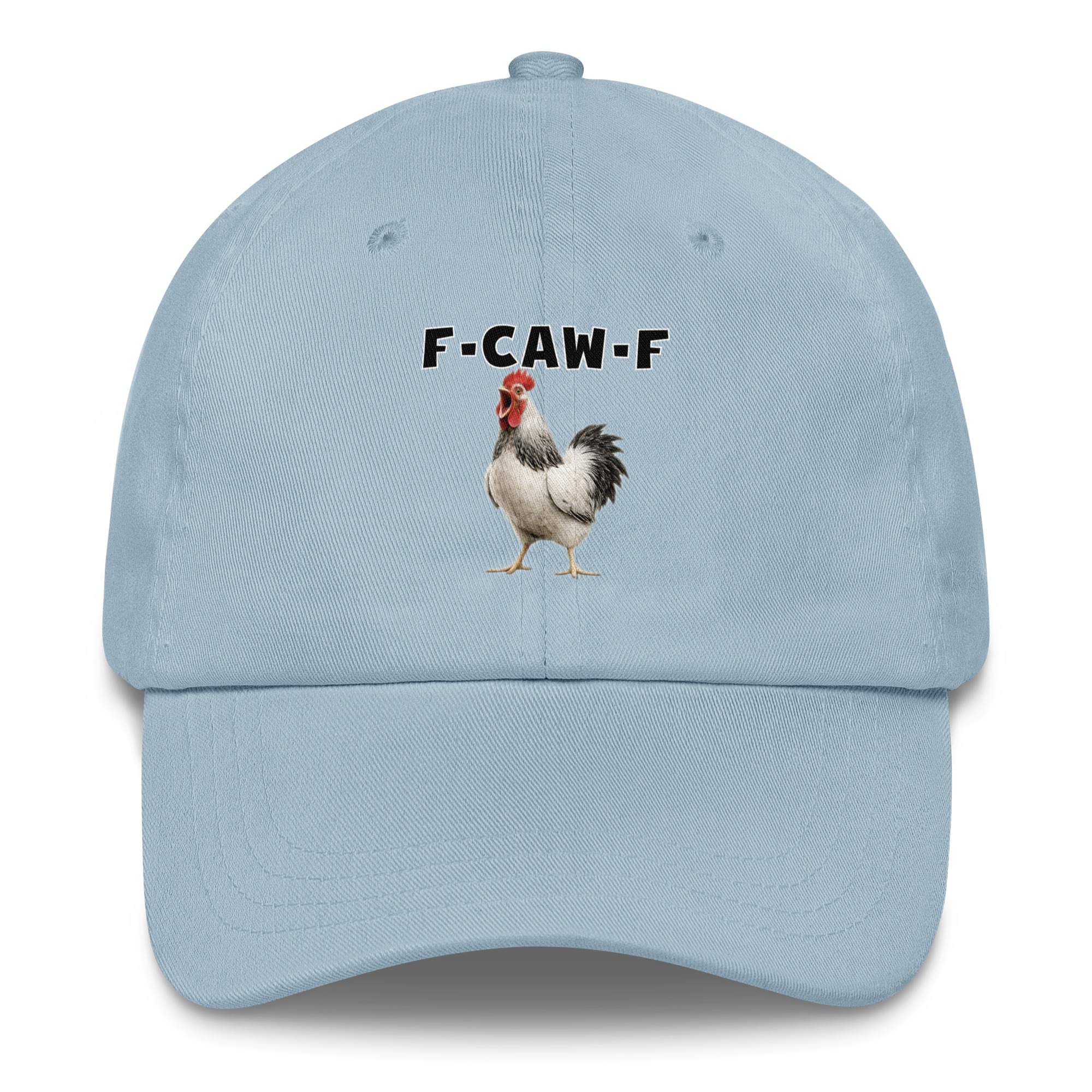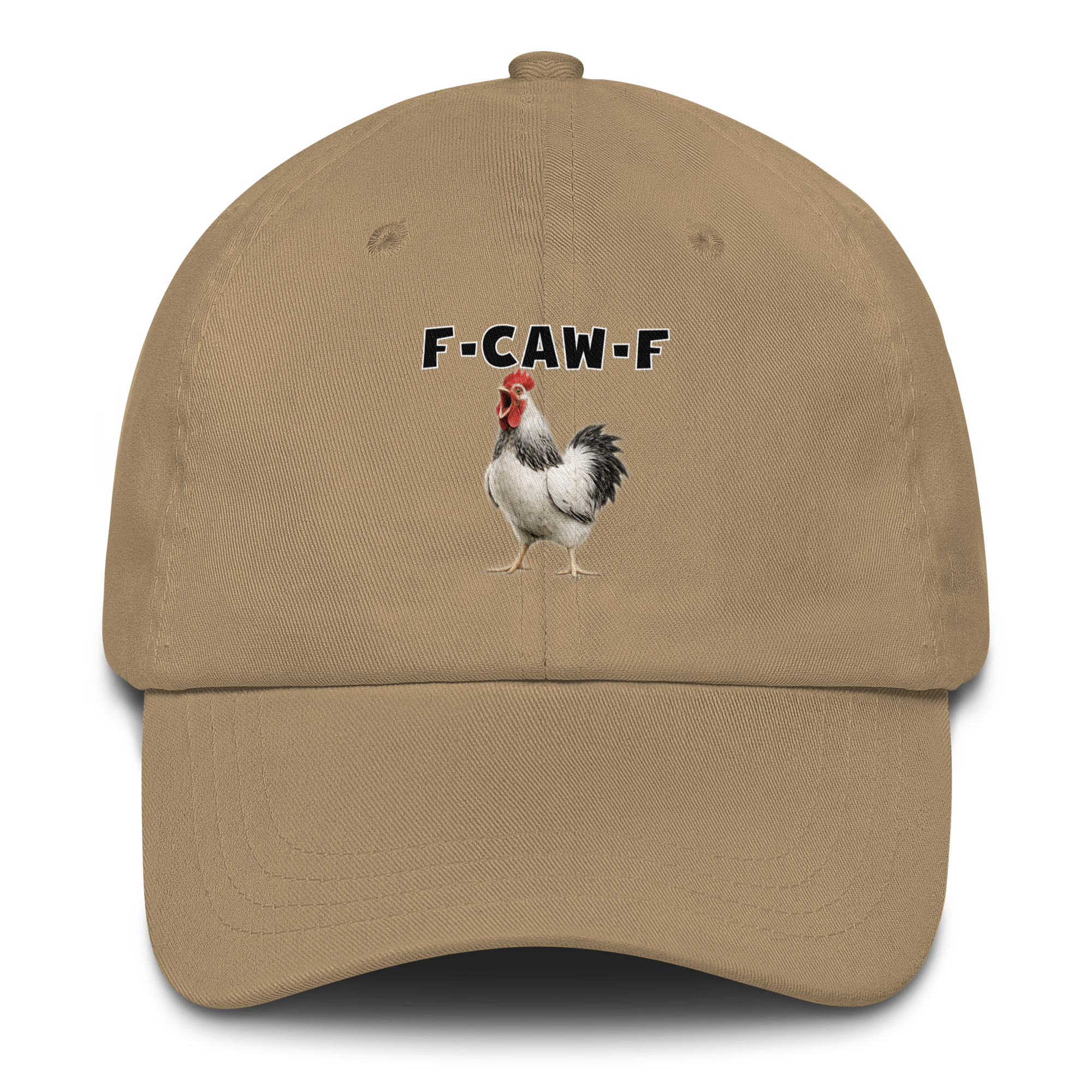 Das ist kein harmloses Gegacker, das ist ein akustischer Mittelfinger mit Federn. Das Motiv greift genau den Moment auf, in dem das Huhn mit weit geöffnetem Schnabel losschreit und dieses Gegacker plötzlich wie „F-Caw-F“ klingt.