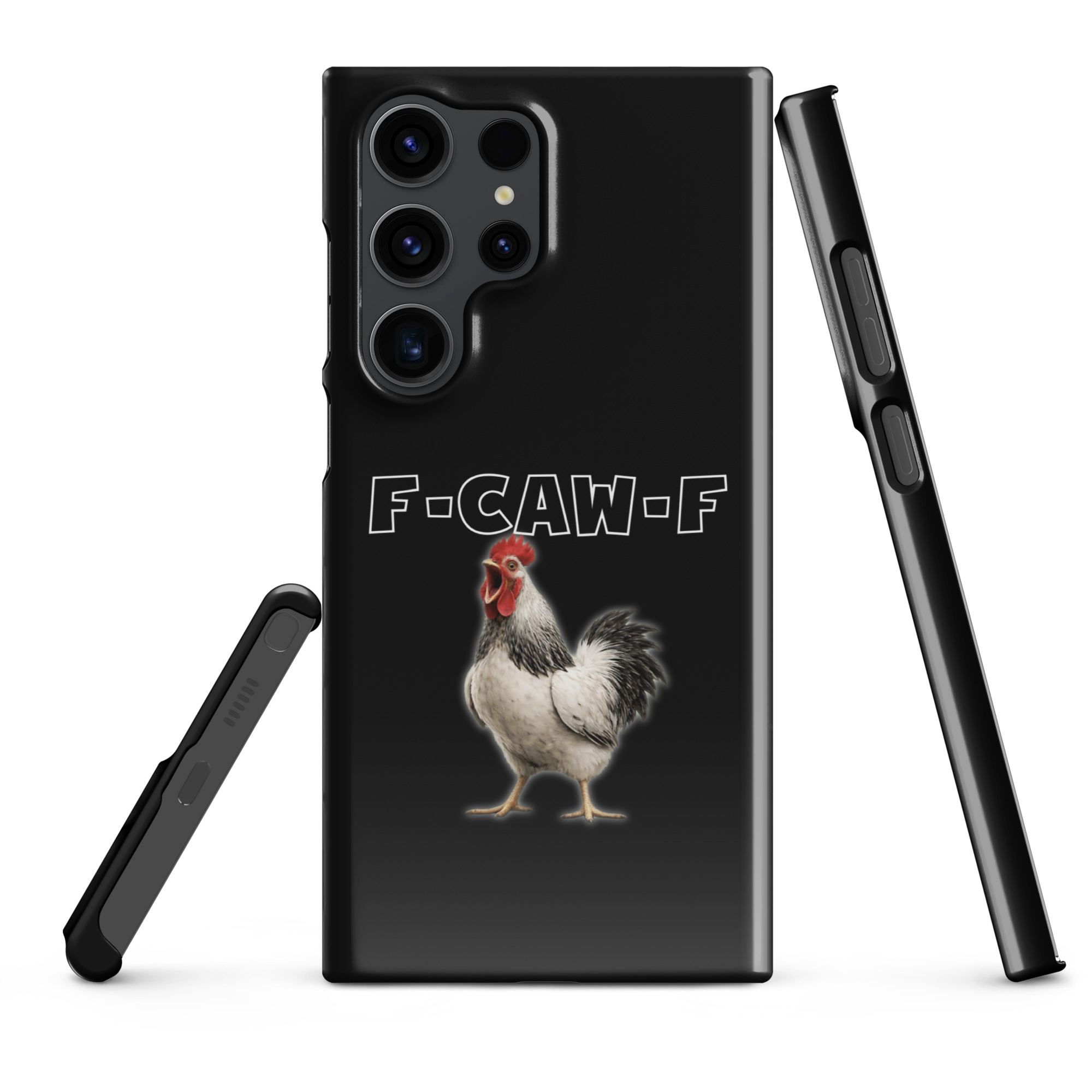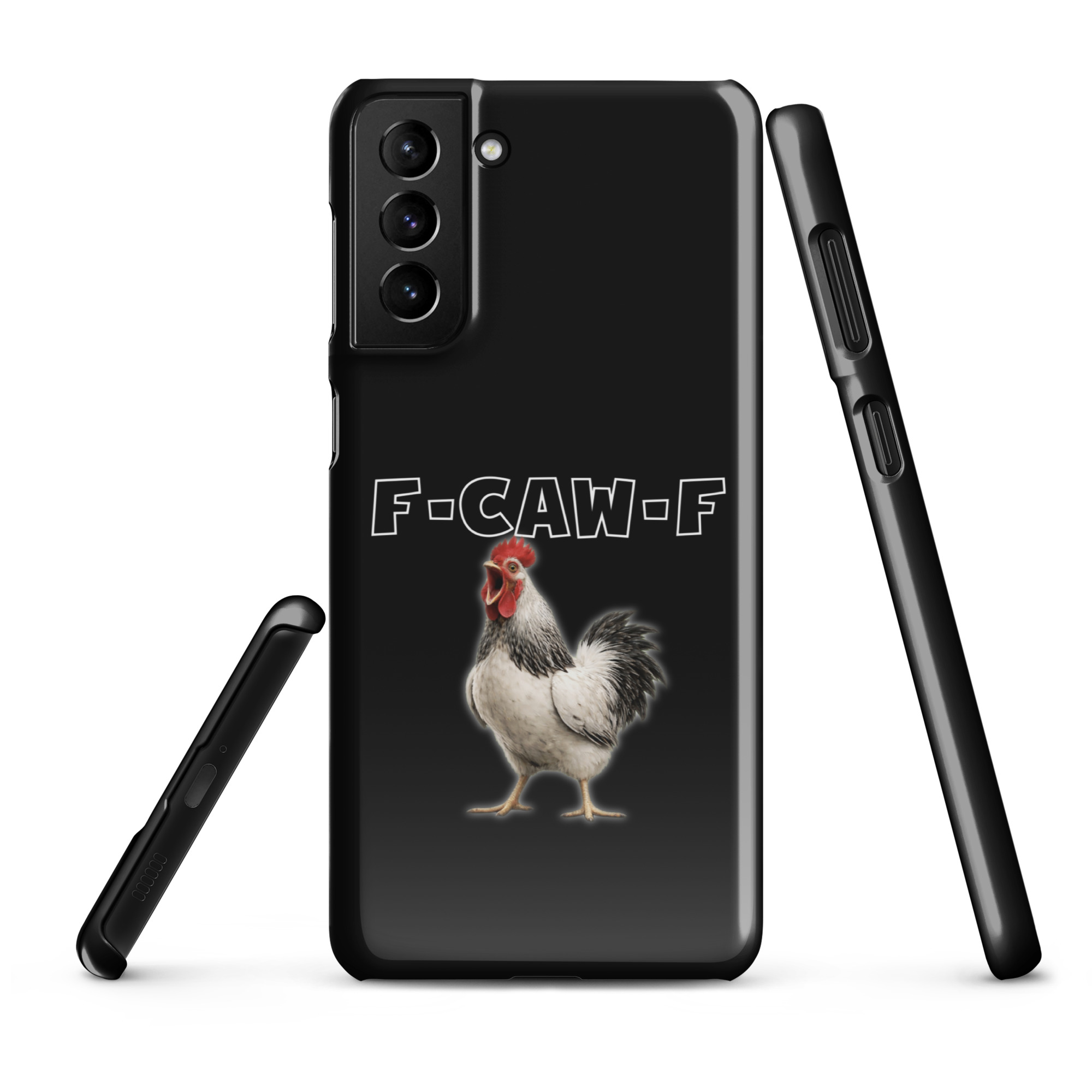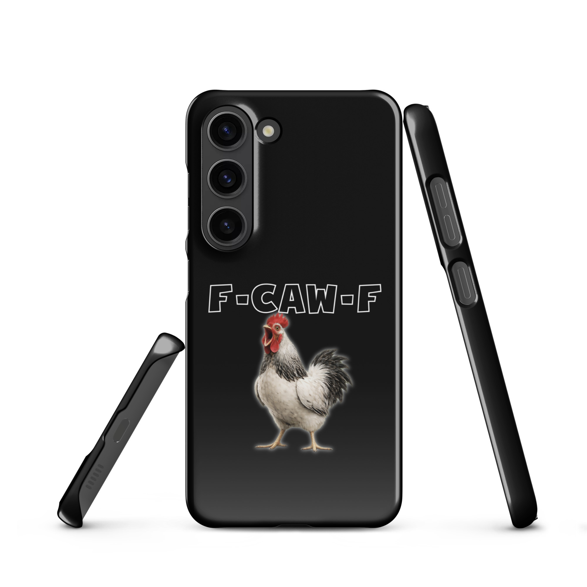 Das ist kein harmloses Gegacker, das ist ein akustischer Mittelfinger mit Federn. Das Motiv greift genau den Moment auf, in dem das Huhn mit weit geöffnetem Schnabel losschreit und dieses Gegacker plötzlich wie „F-Caw-F“ klingt.