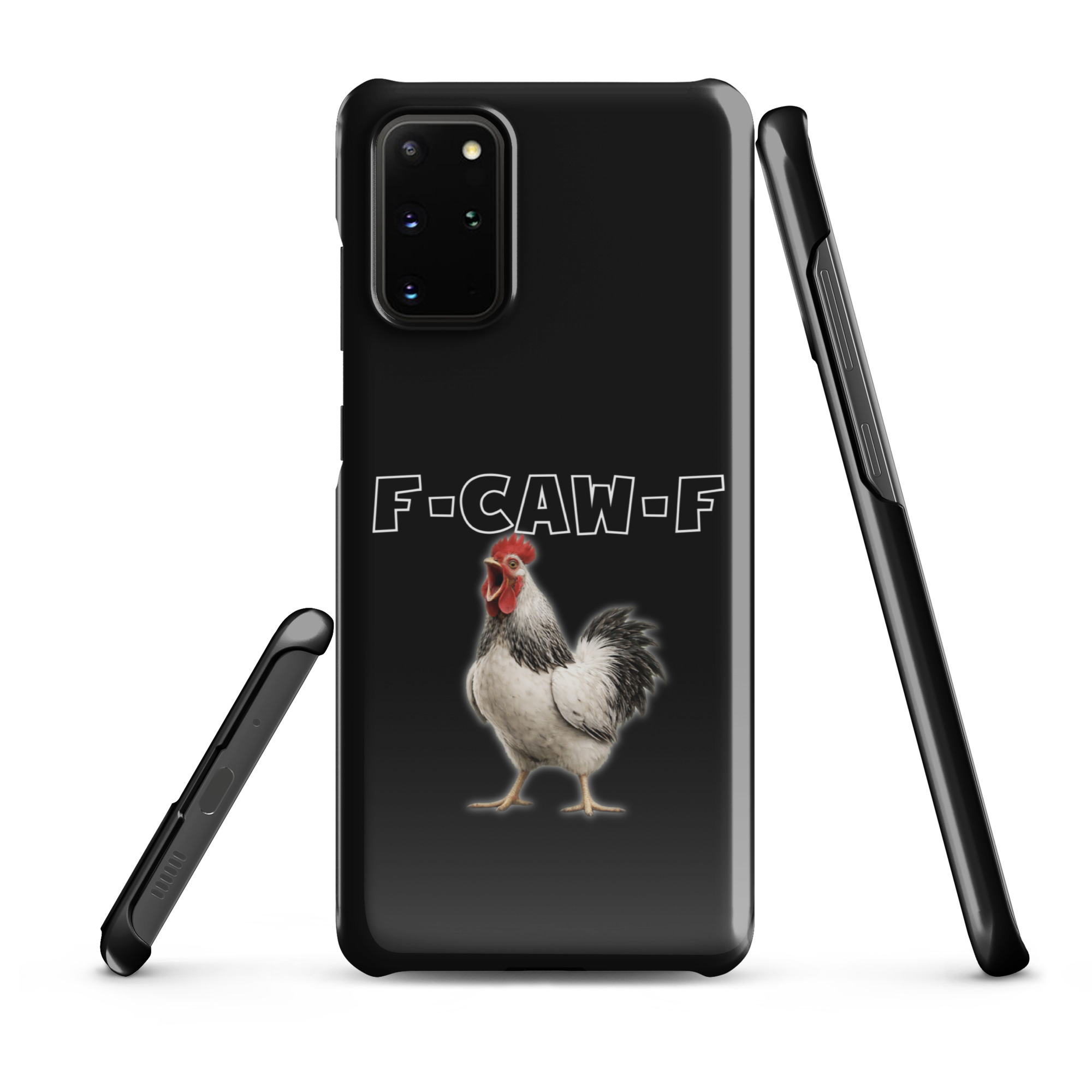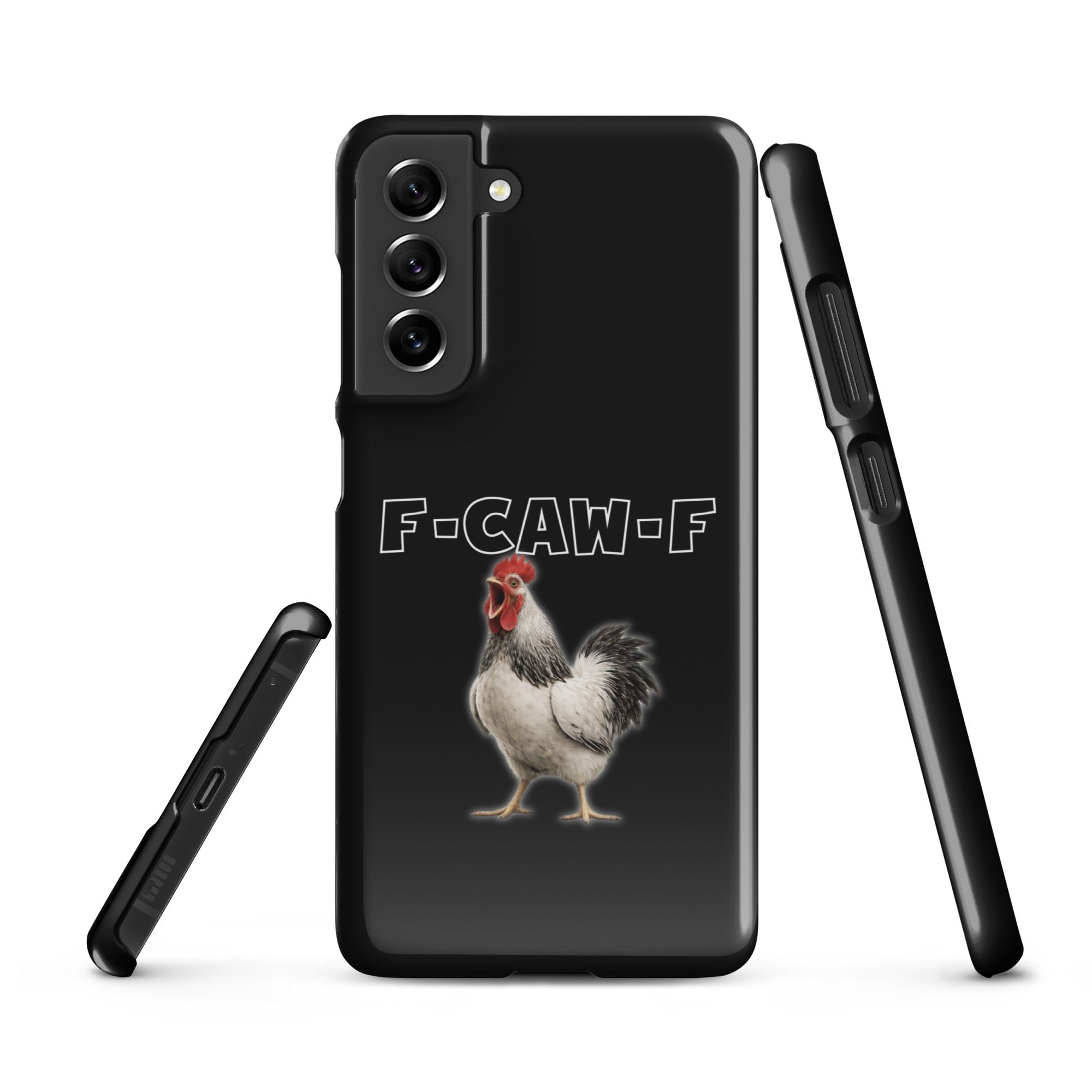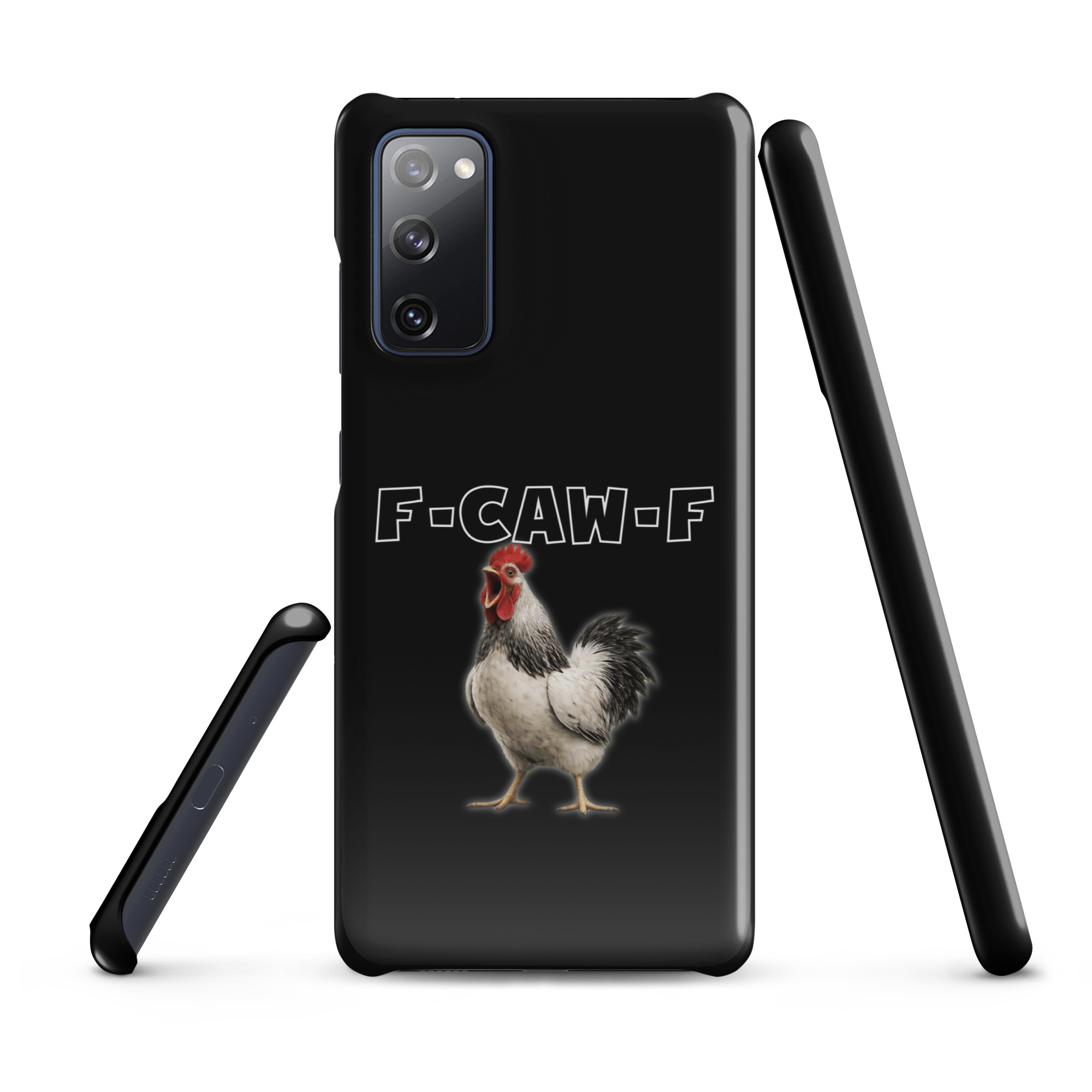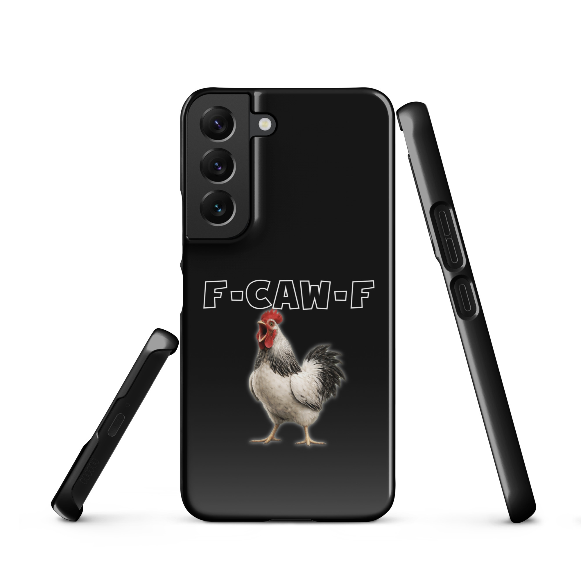 Das ist kein harmloses Gegacker, das ist ein akustischer Mittelfinger mit Federn. Das Motiv greift genau den Moment auf, in dem das Huhn mit weit geöffnetem Schnabel losschreit und dieses Gegacker plötzlich wie „F-Caw-F“ klingt.