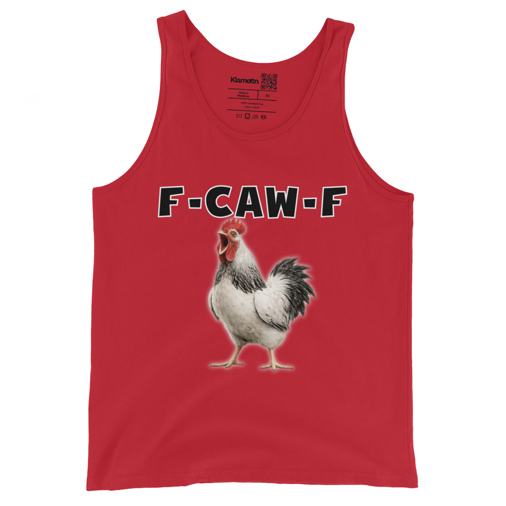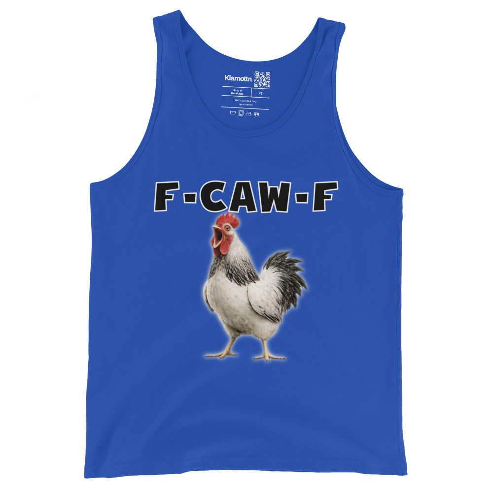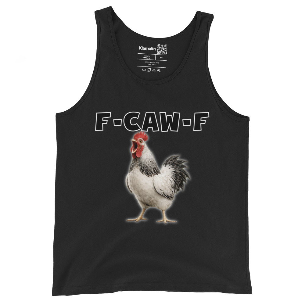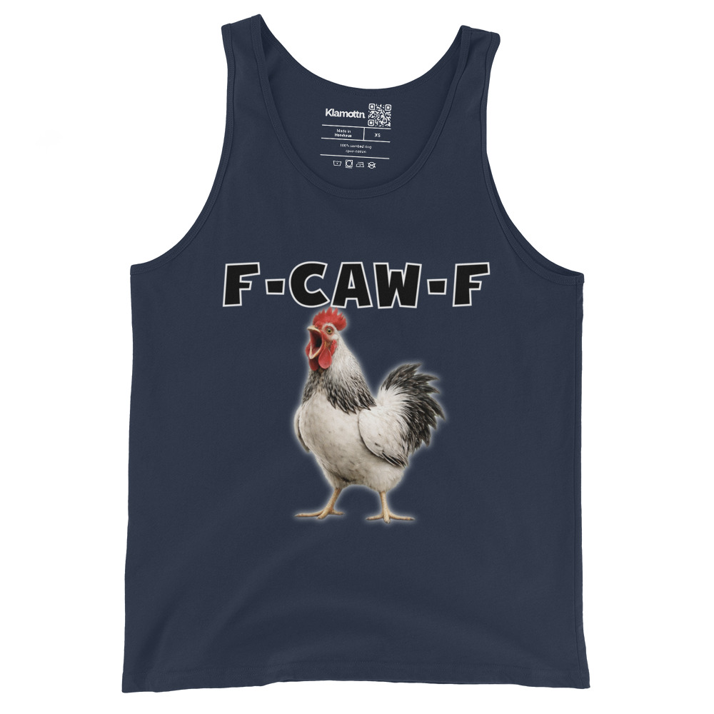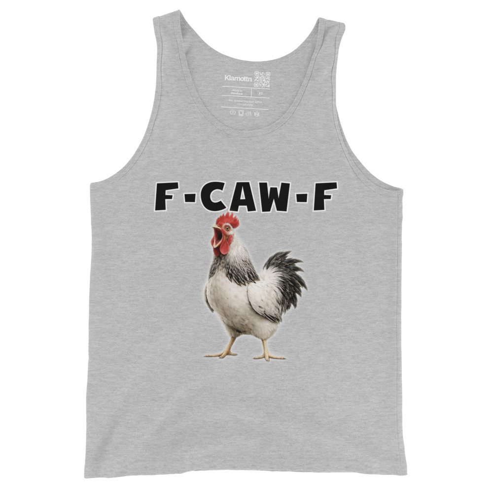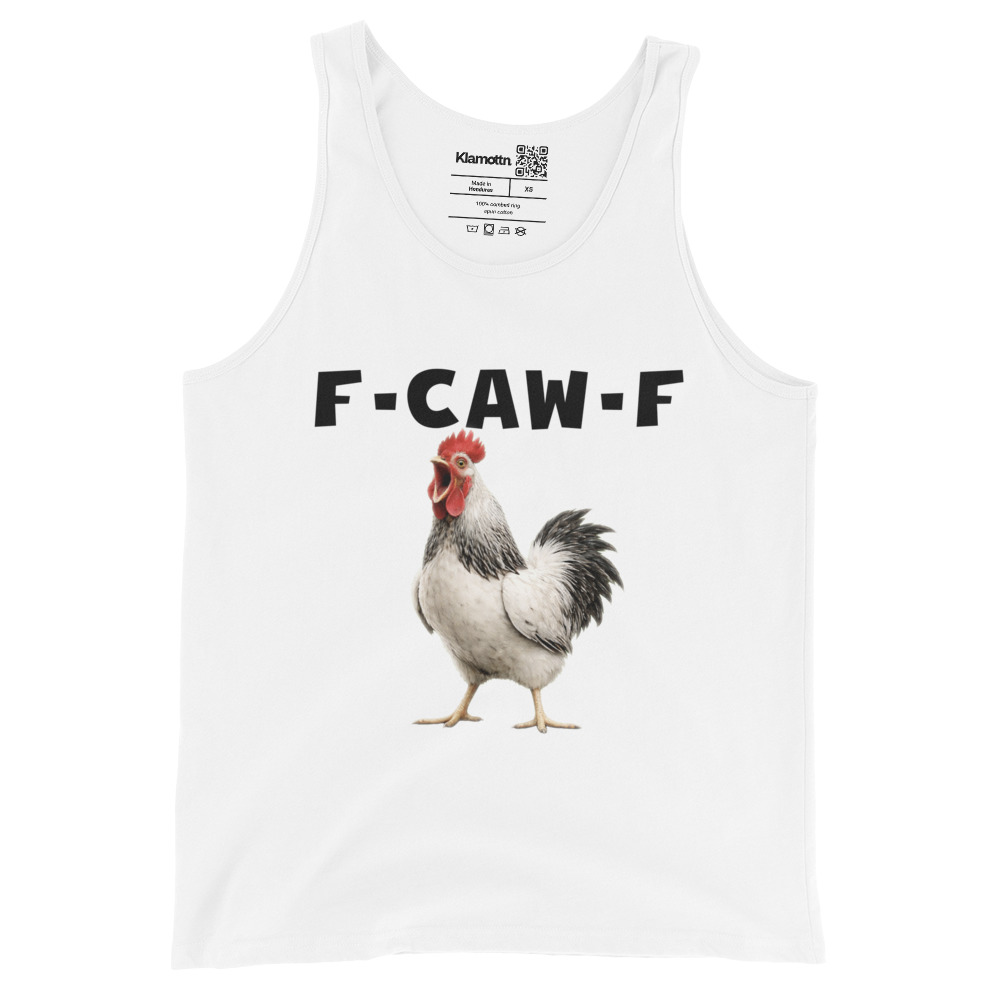 Das ist kein harmloses Gegacker, das ist ein akustischer Mittelfinger mit Federn. Das Motiv greift genau den Moment auf, in dem das Huhn mit weit geöffnetem Schnabel losschreit und dieses Gegacker plötzlich wie „F-Caw-F“ klingt.