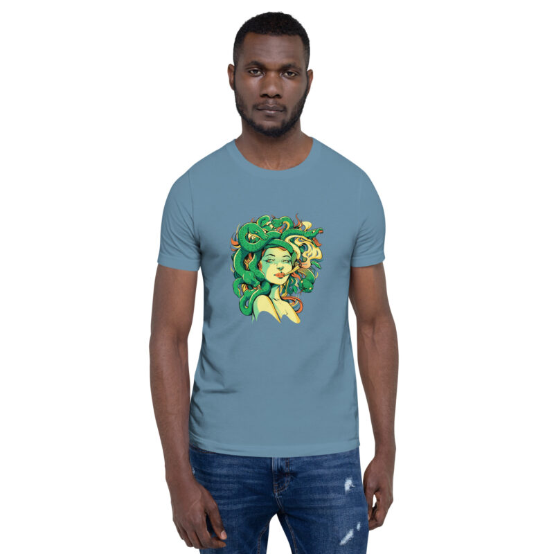 Dieses Design zeigt Medusa, die legendäre Figur aus der griechischen Mythologie, mit ihrem ikonischen Schlangenhaar. In einer überraschenden Wendung sieht man Medusa jedoch ganz entspannt einen Joint rauchen, während ihre Schlangen mit ihren typisch grimmigen Gesichtern um sie herum wirbeln. Diese Darstellung verbindet Mythologie mit modernem Humor auf einzigartige Weise.
