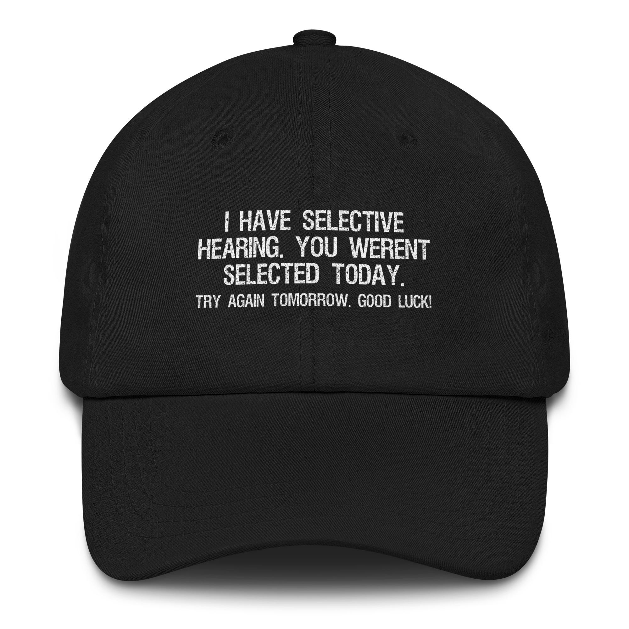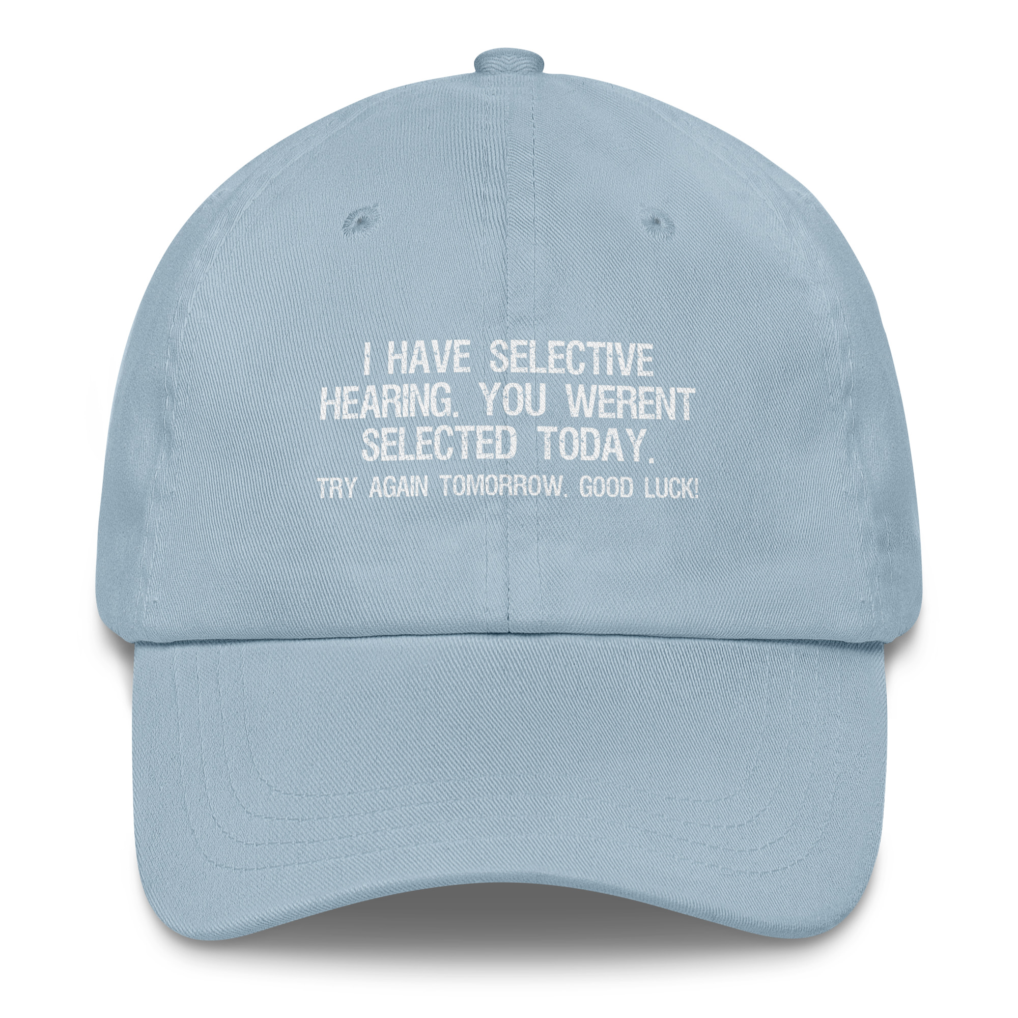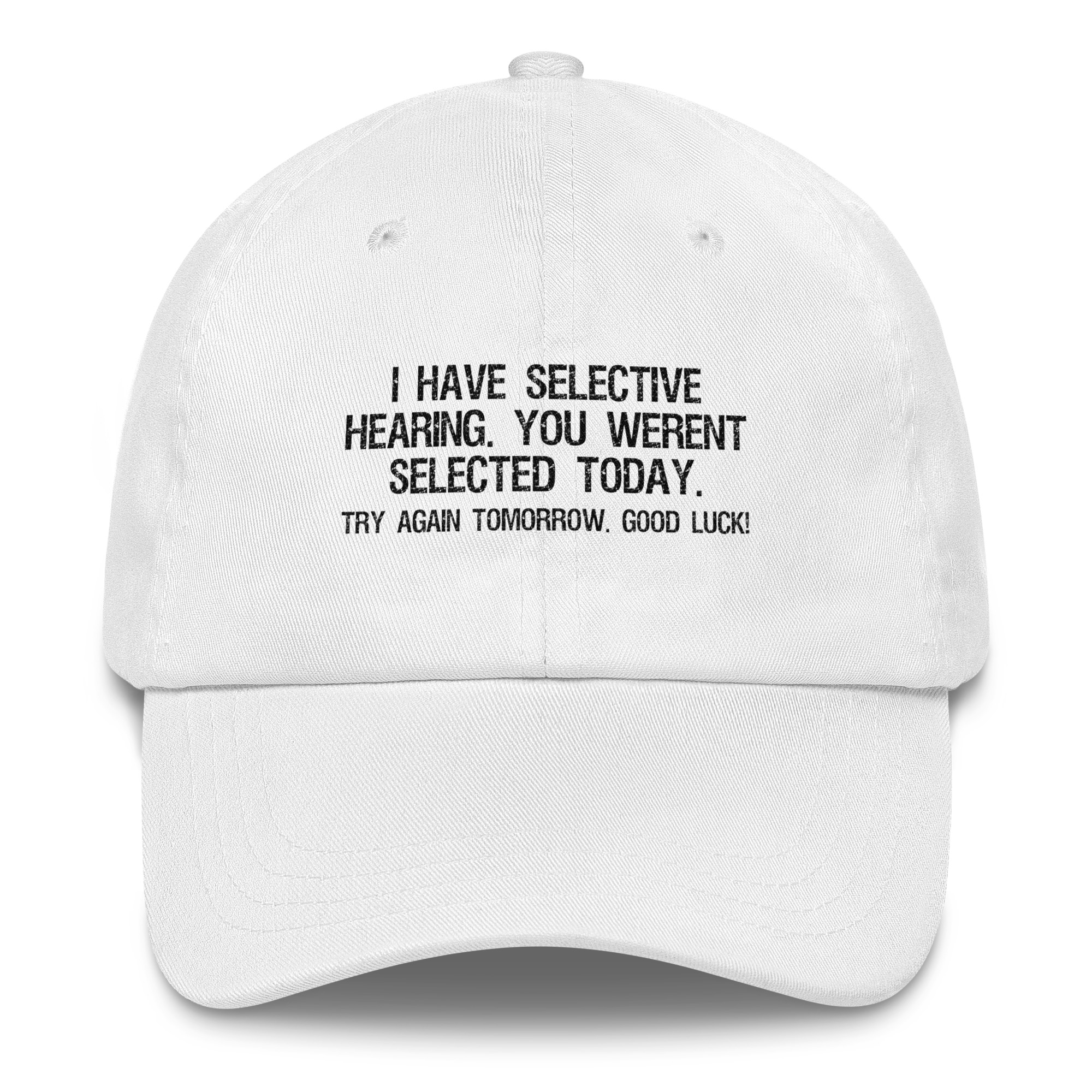 Manchmal hört man einfach nur das, was man hören will, und genau das bringt dieses Motiv perfekt auf den Punkt. Es spielt mit Ironie, trockener Attitüde und einer Prise frechem Humor. Du setzt damit ein klares Zeichen für Selbstbestimmung und innere Gelassenheit.