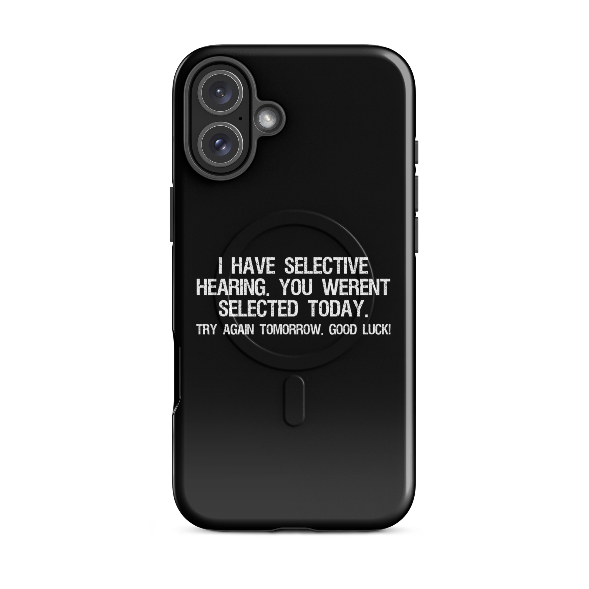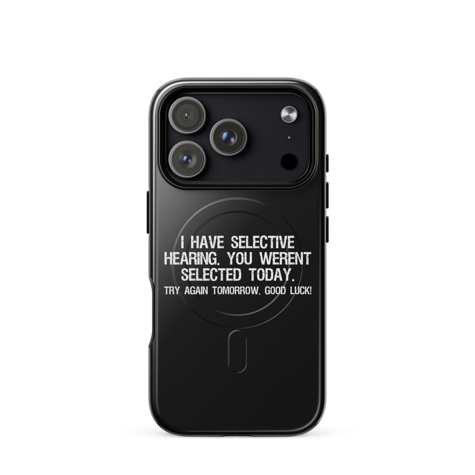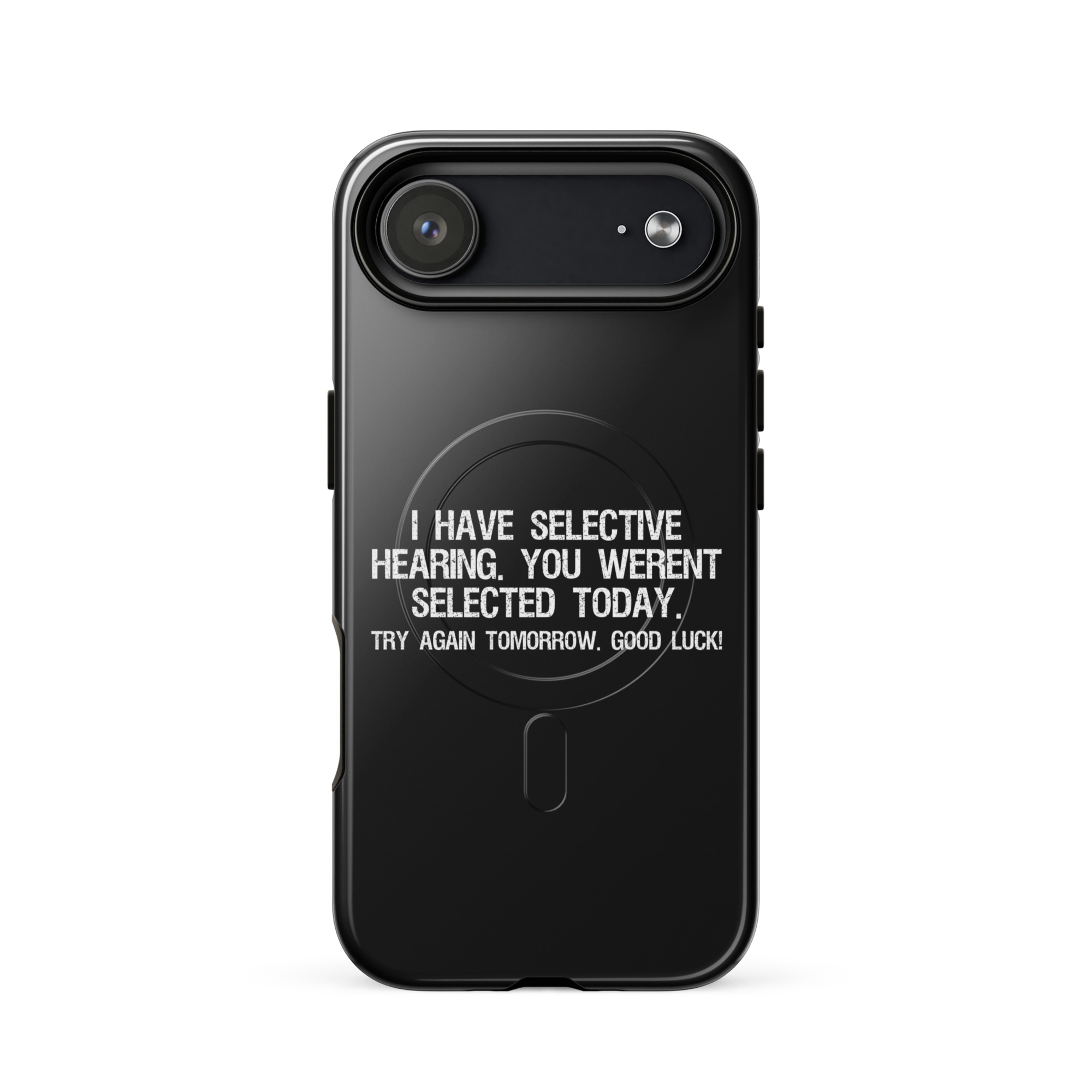 Manchmal hört man einfach nur das, was man hören will, und genau das bringt dieses Motiv perfekt auf den Punkt. Es spielt mit Ironie, trockener Attitüde und einer Prise frechem Humor. Du setzt damit ein klares Zeichen für Selbstbestimmung und innere Gelassenheit.