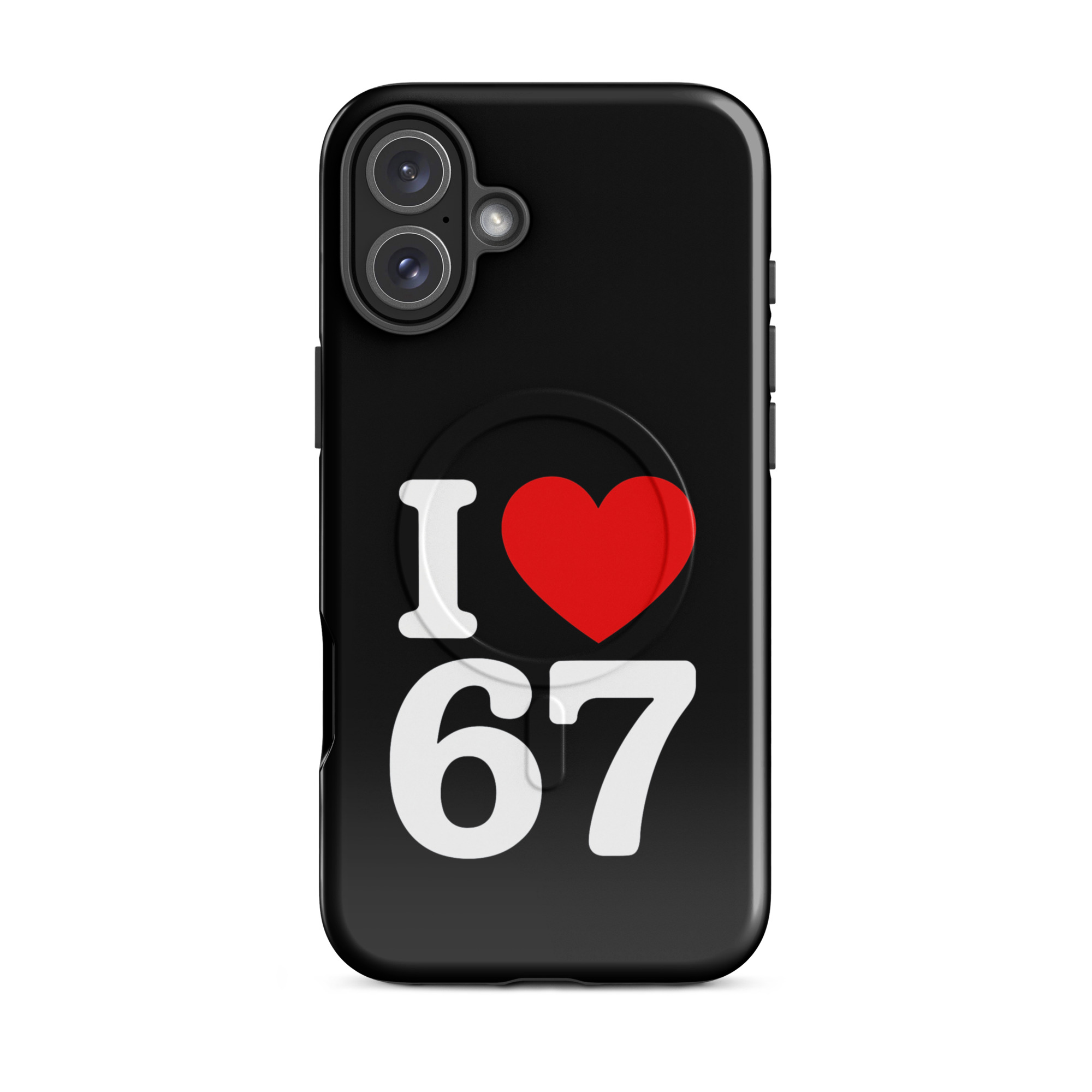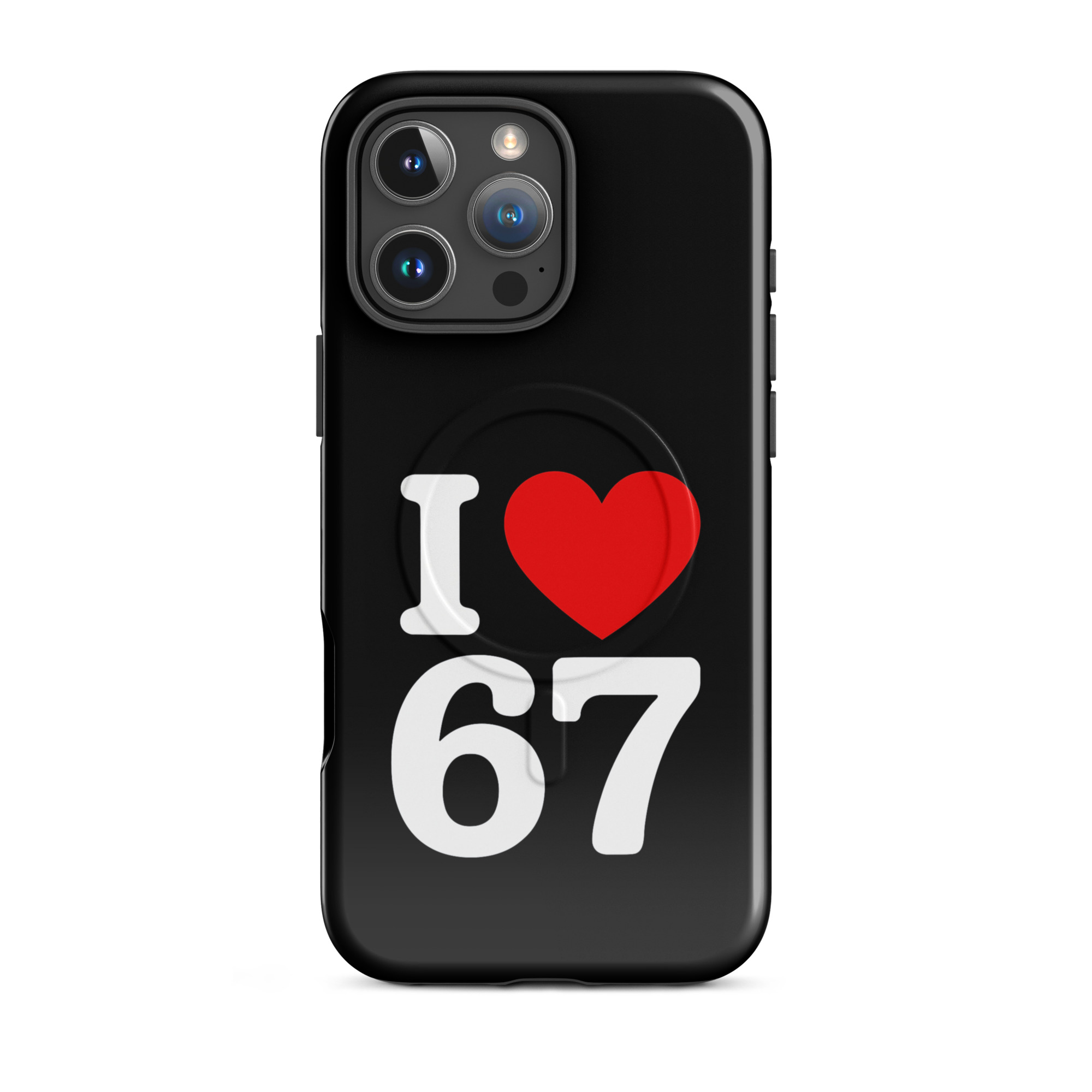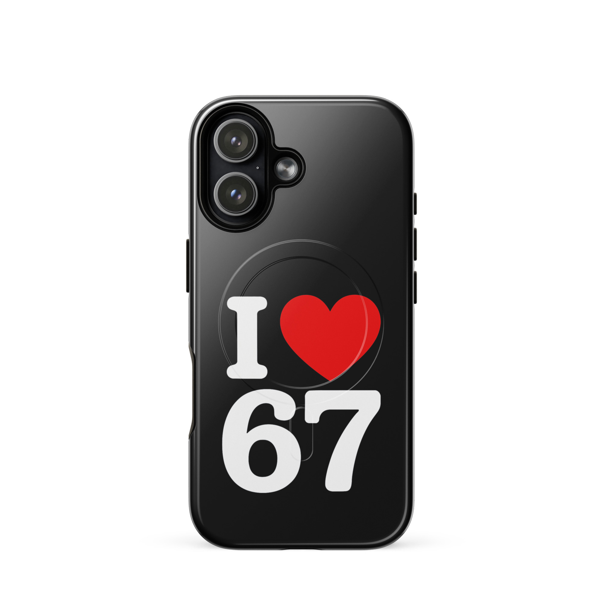 Dieses Motiv lebt genau von dem, was es eigentlich nicht hat: Bedeutung. I Love 67 greift einen viralen Internettrend auf, der bewusst sinnlos ist und genau deshalb funktioniert. Die Zahl steht für einen Hype, der aus Clips, Edits und Wiederholungen entstanden ist, bis er sich selbst getragen hat. Keine Message, kein tiefer Sinn, nur ein Code, den man fühlt oder eben nicht. 67 wird hier zum Symbol für Zugehörigkeit, für Online-Kultur und für diesen speziellen Humor, bei dem das Absurde der eigentliche Witz ist.