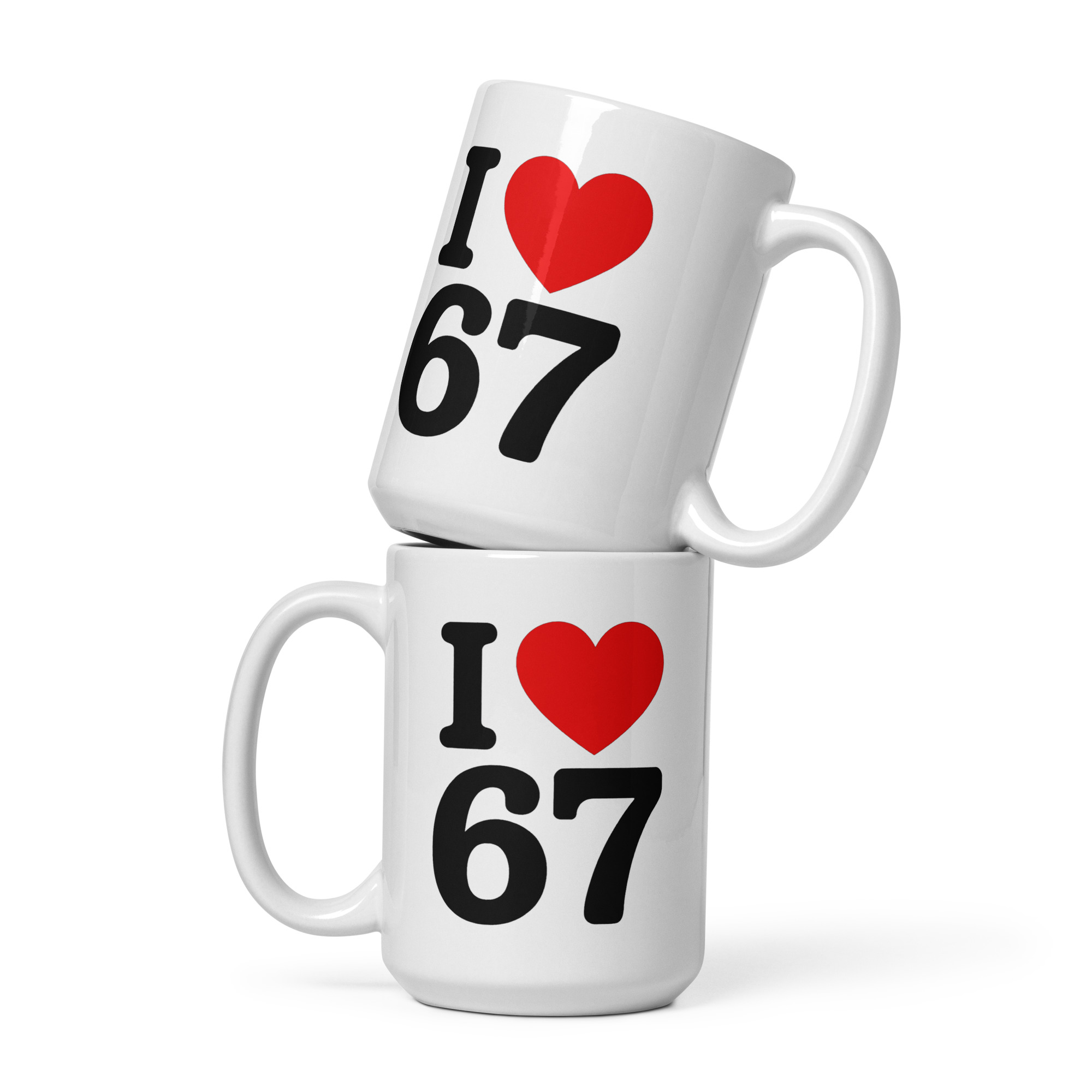 Dieses Motiv lebt genau von dem, was es eigentlich nicht hat: Bedeutung. I Love 67 greift einen viralen Internettrend auf, der bewusst sinnlos ist und genau deshalb funktioniert. Die Zahl steht für einen Hype, der aus Clips, Edits und Wiederholungen entstanden ist, bis er sich selbst getragen hat. Keine Message, kein tiefer Sinn, nur ein Code, den man fühlt oder eben nicht. 67 wird hier zum Symbol für Zugehörigkeit, für Online-Kultur und für diesen speziellen Humor, bei dem das Absurde der eigentliche Witz ist.