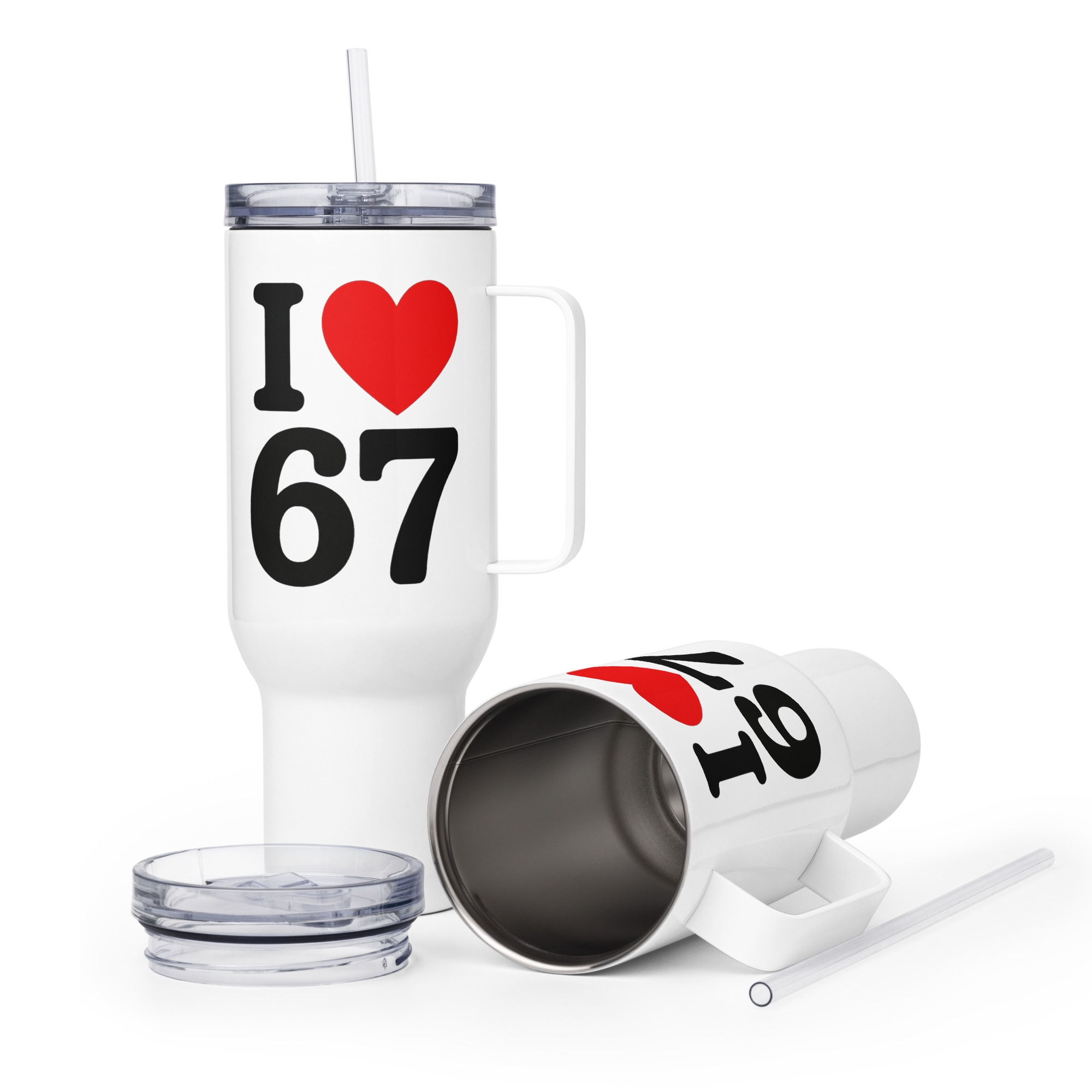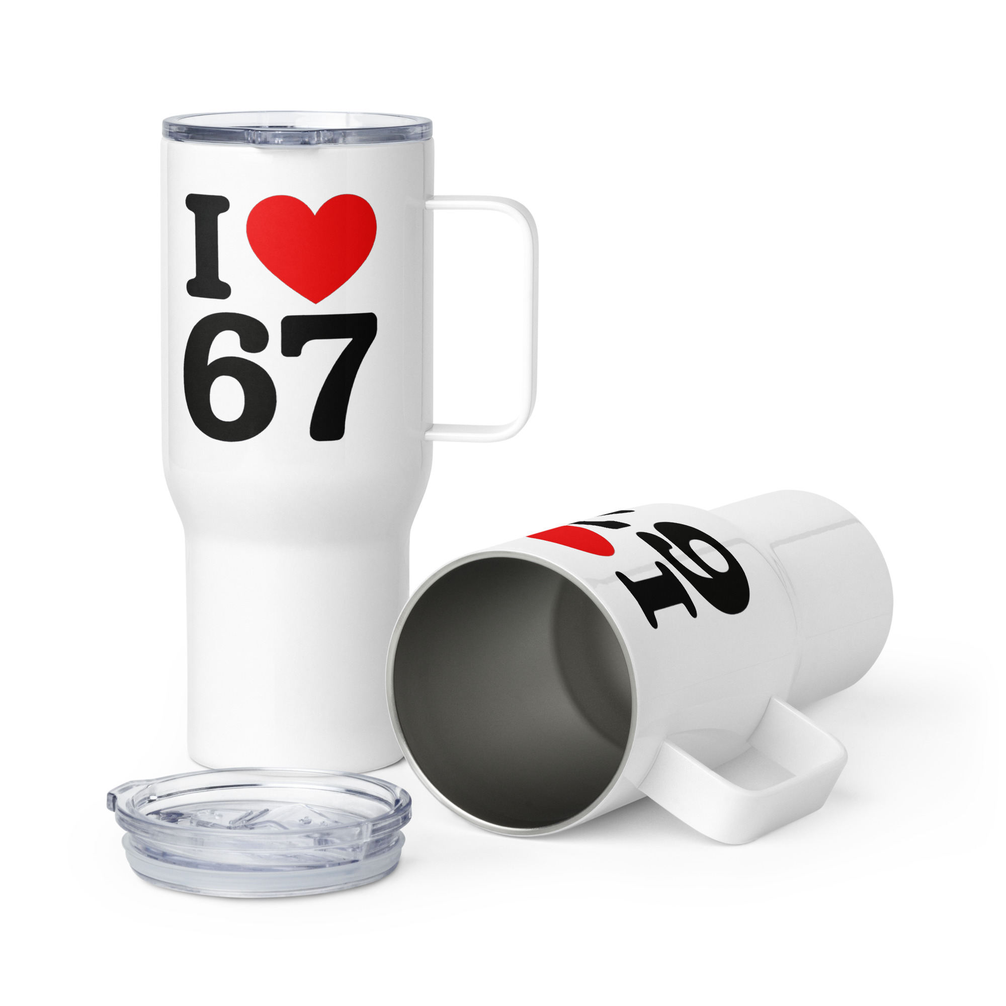 Dieses Motiv lebt genau von dem, was es eigentlich nicht hat: Bedeutung. I Love 67 greift einen viralen Internettrend auf, der bewusst sinnlos ist und genau deshalb funktioniert. Die Zahl steht für einen Hype, der aus Clips, Edits und Wiederholungen entstanden ist, bis er sich selbst getragen hat. Keine Message, kein tiefer Sinn, nur ein Code, den man fühlt oder eben nicht. 67 wird hier zum Symbol für Zugehörigkeit, für Online-Kultur und für diesen speziellen Humor, bei dem das Absurde der eigentliche Witz ist.