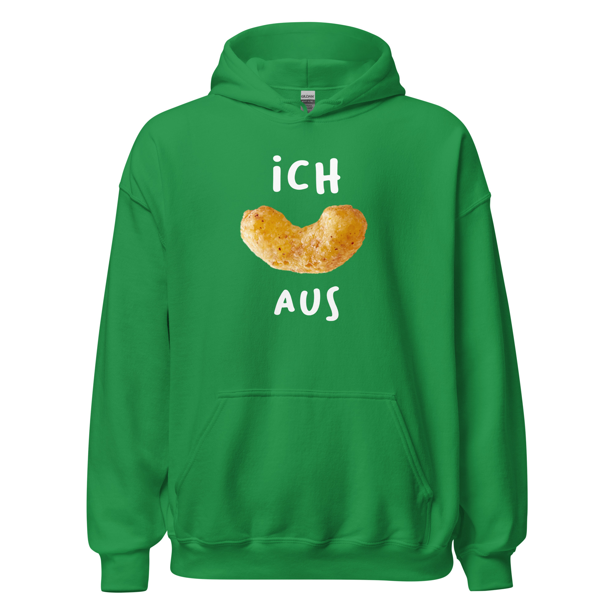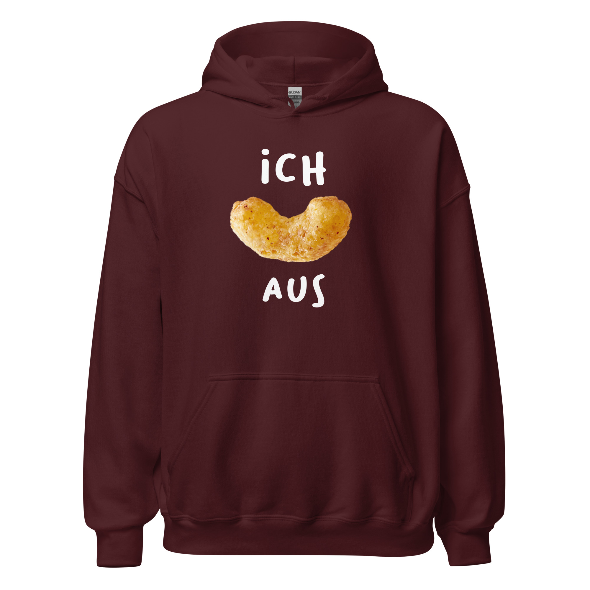 Das Design dieses Hoodies ist ein echter Hingucker: ein knuspriger Erdnussflip, darüber das Wort ‘Ich’ und darunter ‘aus’. Ein humorvolles Statement, das deinen Sinn für Spaß und Lässigkeit unterstreicht.