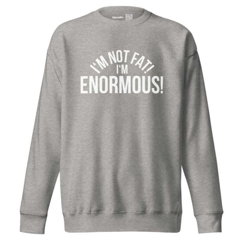 „Ich bin nicht dick, ich bin enorm!“ Dieses Design bringt Selbstbewusstsein und Humor auf den Punkt und ist perfekt für dich, wenn du mit deinem Körper entspannt umgehst und gerne für Lacher sorgst. Mit diesem frechen Spruch zeigst du allen, dass Größe eine Frage der Perspektive ist – und du deine mit Stolz trägst. Egal, ob als witziges Geschenk oder für dich selbst, dieses Statement hebt garantiert die Stimmung und zeigt, dass du dir selbst treu bleibst. Hol dir „I’m Not Fat! I’m Enormous!“ und zeige der Welt, wie großartig du bist – im wahrsten Sinne des Wortes!