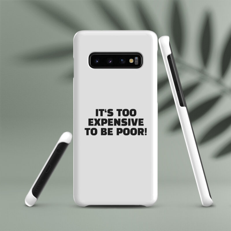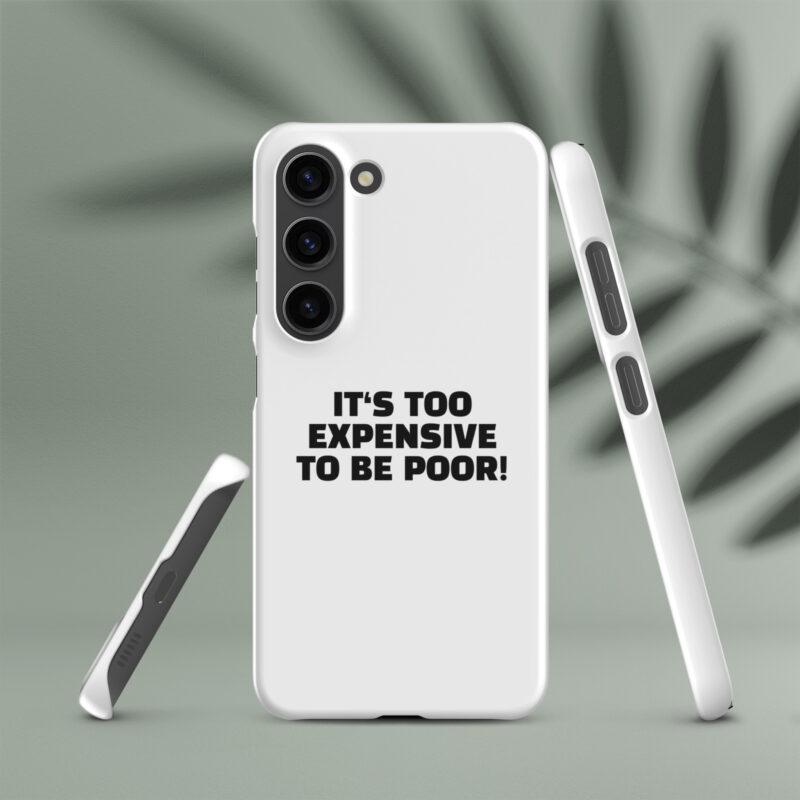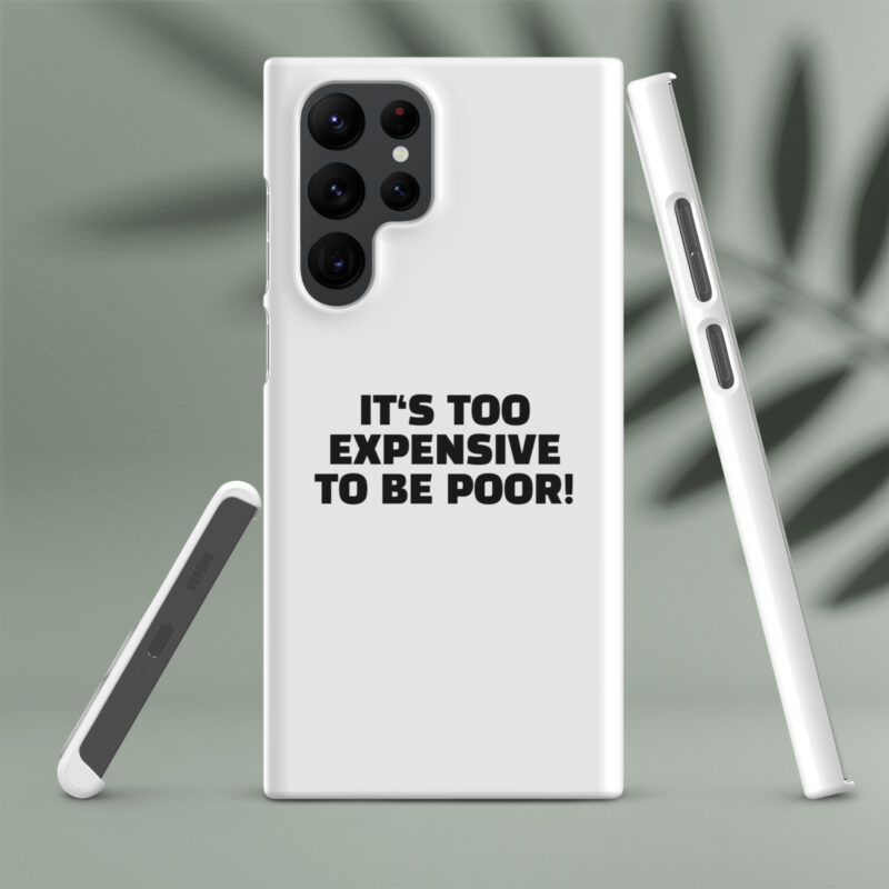 „It’s Too Expensive to Be Poor“ – oder auf Deutsch: „Es ist zu teuer, arm zu sein.“ Dieses Design bringt eine bittere Wahrheit auf den Punkt und verbindet Gesellschaftskritik mit einem Hauch Sarkasmus. Arm zu sein bedeutet oft, nicht die Mittel zu haben, langfristig zu sparen – billige Produkte halten nicht lange, höhere Kreditzinsen treffen die Schwächsten, und teurere Notlösungen werden zum Alltag. Wenn du es leid bist, diese Ironie stillschweigend zu akzeptieren, und ein Statement setzen willst, das zugleich clever und provokant ist, dann ist dieses Design perfekt für dich. Hol dir „It’s Too Expensive to Be Poor“ und mach auf die absurden Ungleichheiten unserer Welt aufmerksam – mit Humor und Stil.
