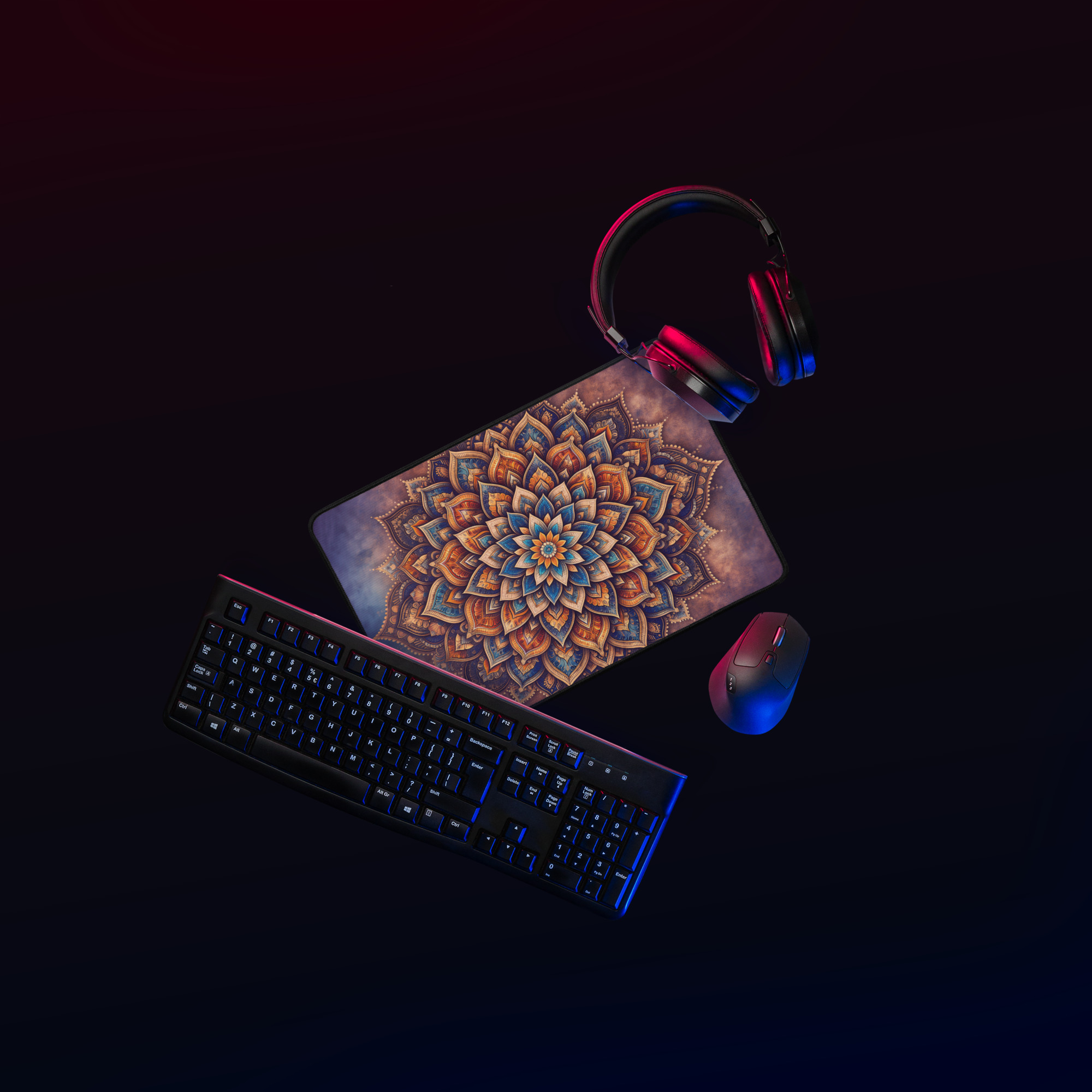 Dieses Motiv bringt Ruhe in deinen Kopf und Stärke in deinen Moment. Es wirkt wie ein visuelles Atemholen, das dich erdet und gleichzeitig Energie freisetzt. Die symmetrische Form zieht den Blick nach innen und schafft sofort ein Gefühl von Fokus und Ausgeglichenheit. Warme Erdtöne treffen auf kühle Blaunuancen und erzeugen eine harmonische Spannung, die nie laut ist, aber immer präsent bleibt. Das Mandala steht für innere Ordnung, Klarheit und den bewussten Umgang mit dir selbst. Es begleitet dich in ruhigen Phasen genauso wie in Momenten, in denen du neue Kraft sammeln willst. Egal ob Meditation, Yoga, Achtsamkeit oder einfach ein Moment für dich – dieses Motiv verstärkt genau diese Stimmung. Es wirkt beruhigend, ohne langweilig zu sein, und kraftvoll, ohne zu dominieren. Die feinen Details laden dazu ein, immer wieder Neues zu entdecken und dabei den Kopf loszulassen. Dieses Mandala ist ein Statement für Balance, Selbstfürsorge und innere Stärke. Es zeigt, dass Ruhe nicht Stillstand bedeutet, sondern bewusste Kontrolle über die eigene Energie. Perfekt für alle, die Tiefe lieben, sich selbst etwas Gutes tun wollen und ihren Alltag mit mehr Fokus und Gelassenheit füllen möchten.