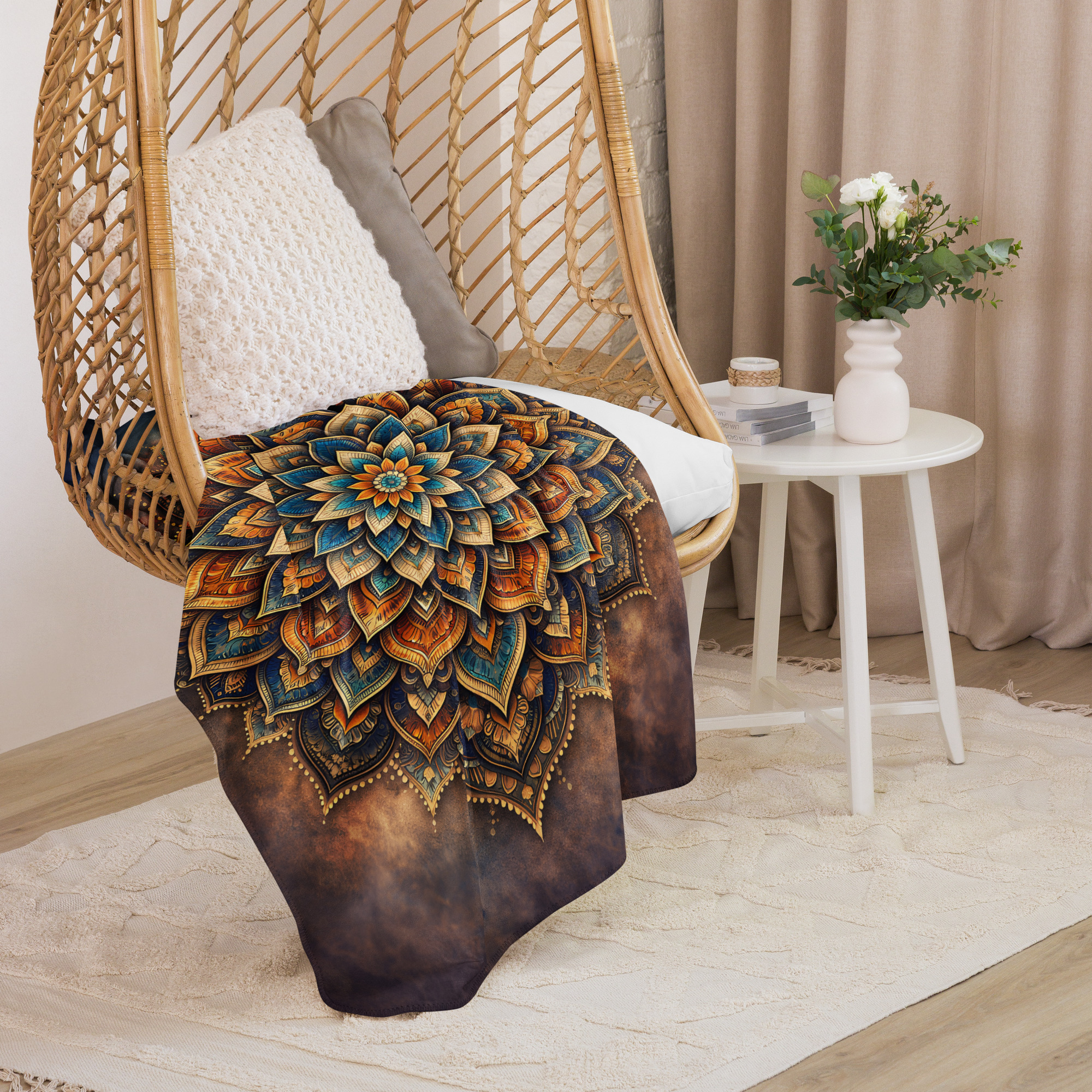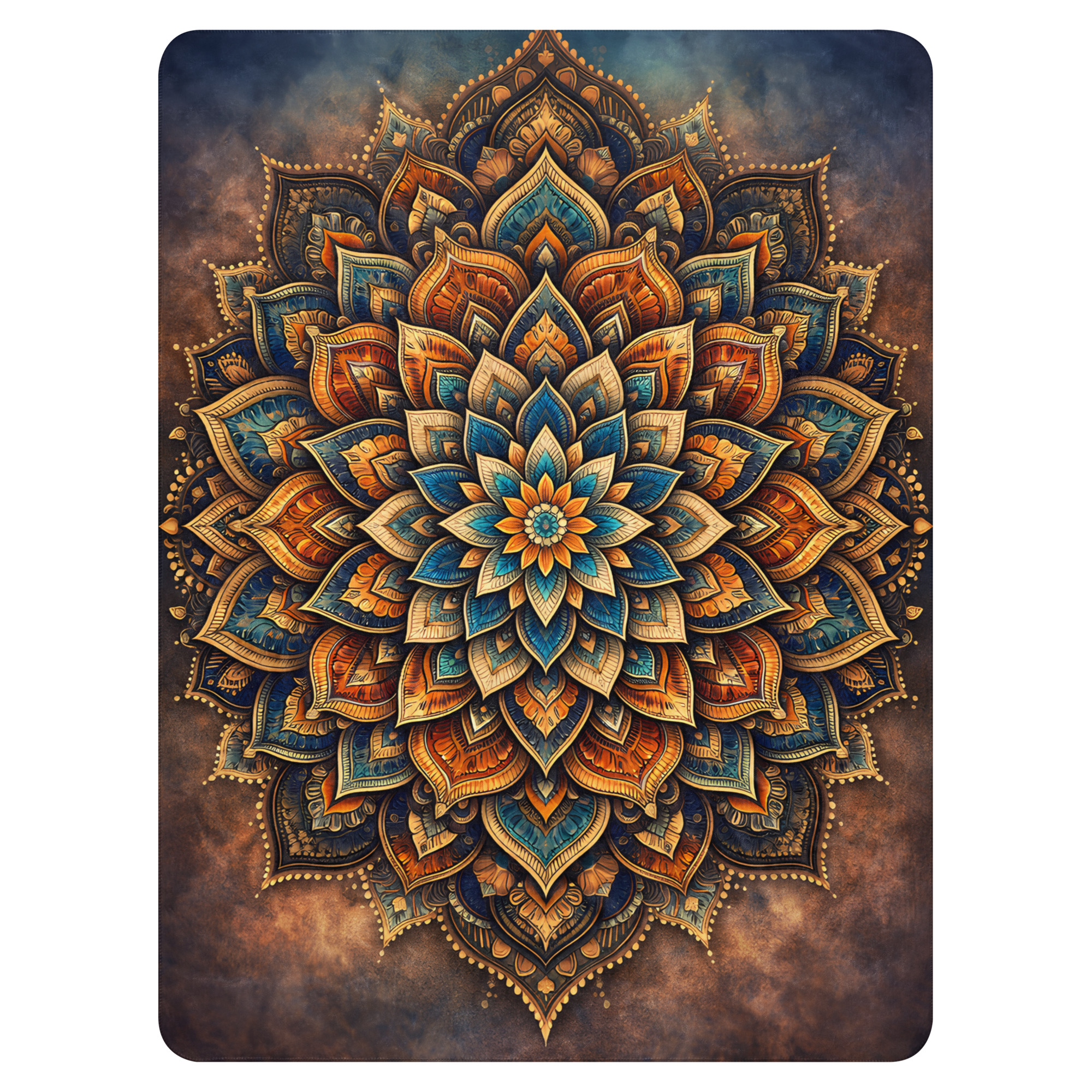 Dieses Motiv bringt Ruhe in deinen Kopf und Stärke in deinen Moment. Es wirkt wie ein visuelles Atemholen, das dich erdet und gleichzeitig Energie freisetzt. Die symmetrische Form zieht den Blick nach innen und schafft sofort ein Gefühl von Fokus und Ausgeglichenheit. Warme Erdtöne treffen auf kühle Blaunuancen und erzeugen eine harmonische Spannung, die nie laut ist, aber immer präsent bleibt. Das Mandala steht für innere Ordnung, Klarheit und den bewussten Umgang mit dir selbst. Es begleitet dich in ruhigen Phasen genauso wie in Momenten, in denen du neue Kraft sammeln willst. Egal ob Meditation, Yoga, Achtsamkeit oder einfach ein Moment für dich – dieses Motiv verstärkt genau diese Stimmung. Es wirkt beruhigend, ohne langweilig zu sein, und kraftvoll, ohne zu dominieren. Die feinen Details laden dazu ein, immer wieder Neues zu entdecken und dabei den Kopf loszulassen. Dieses Mandala ist ein Statement für Balance, Selbstfürsorge und innere Stärke. Es zeigt, dass Ruhe nicht Stillstand bedeutet, sondern bewusste Kontrolle über die eigene Energie. Perfekt für alle, die Tiefe lieben, sich selbst etwas Gutes tun wollen und ihren Alltag mit mehr Fokus und Gelassenheit füllen möchten.