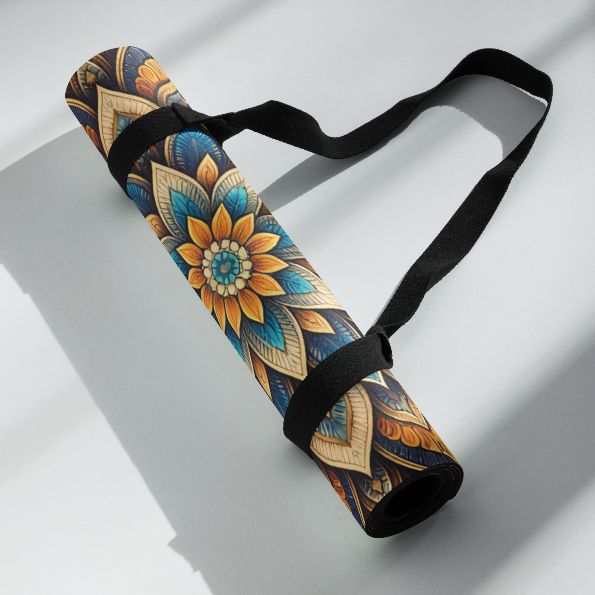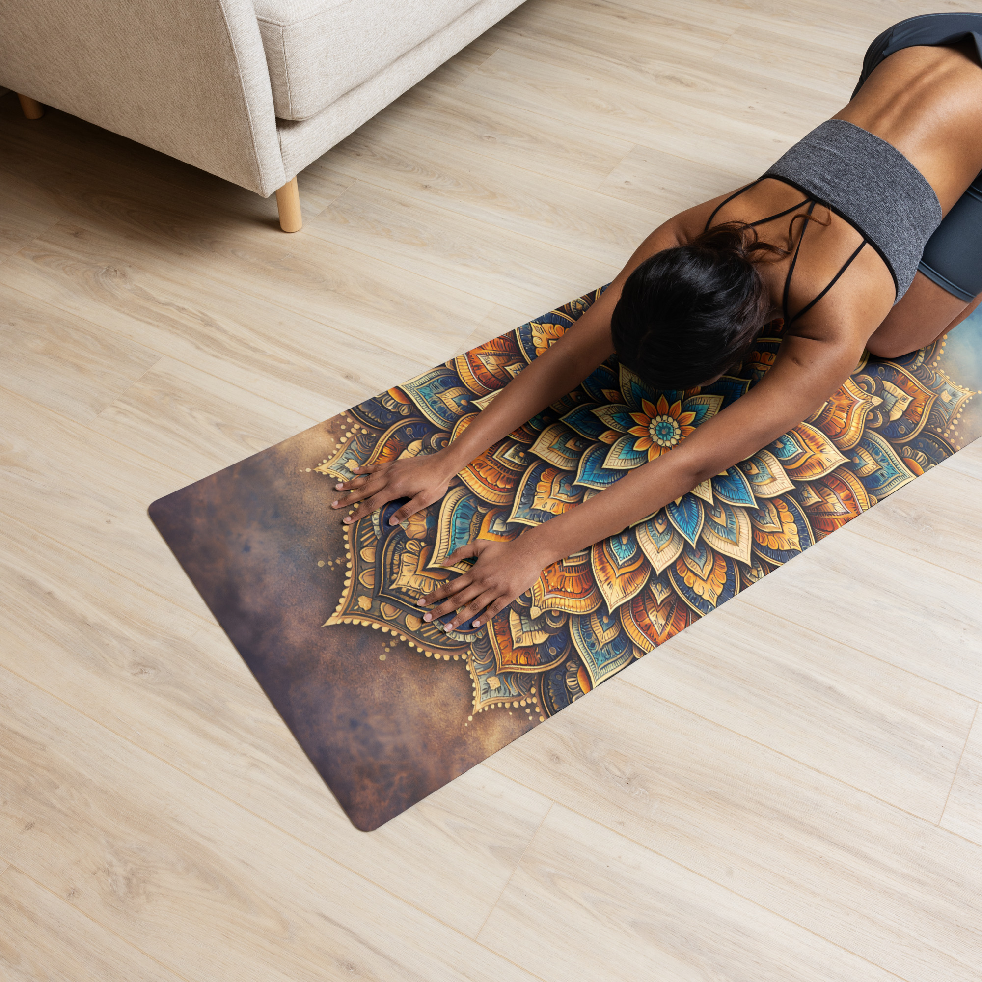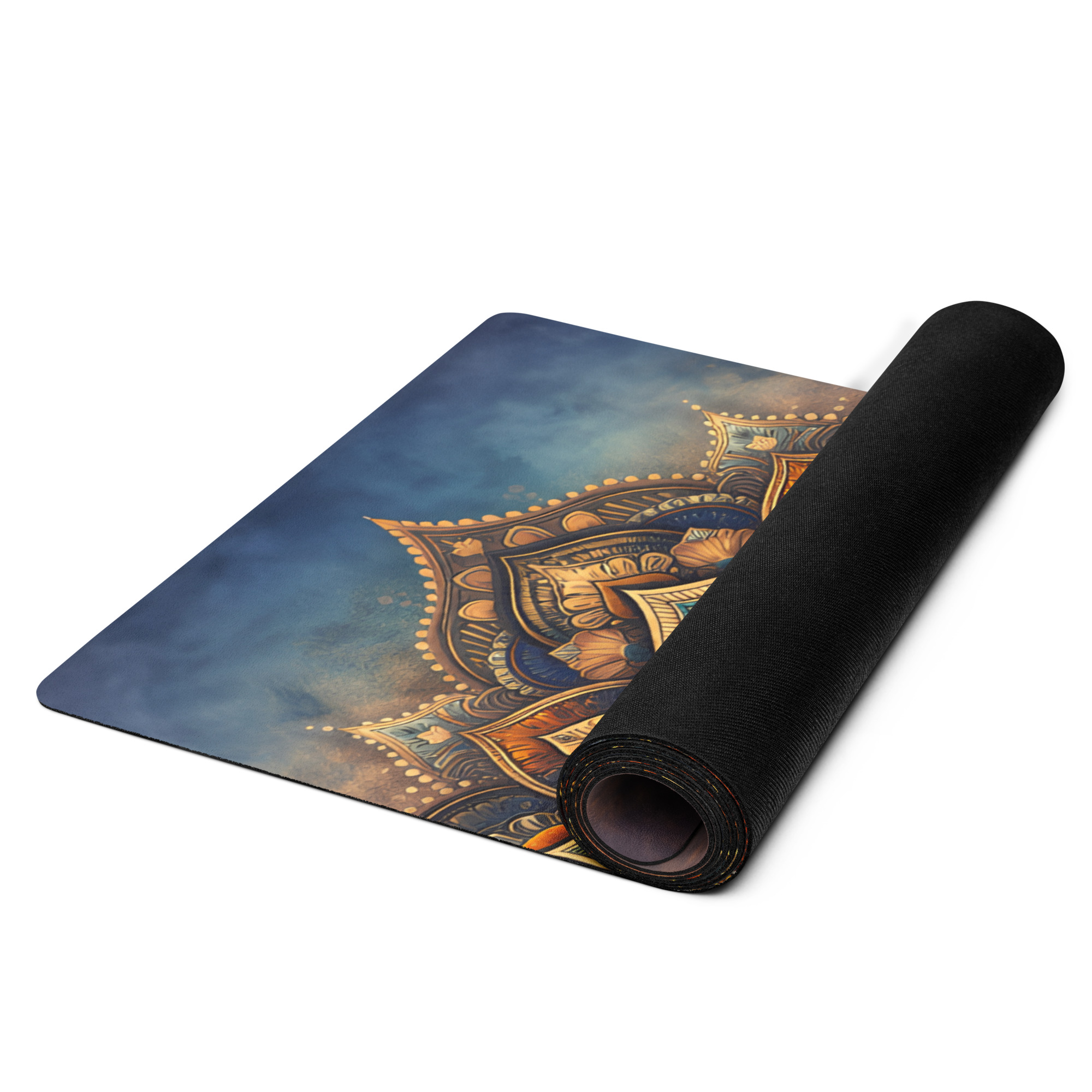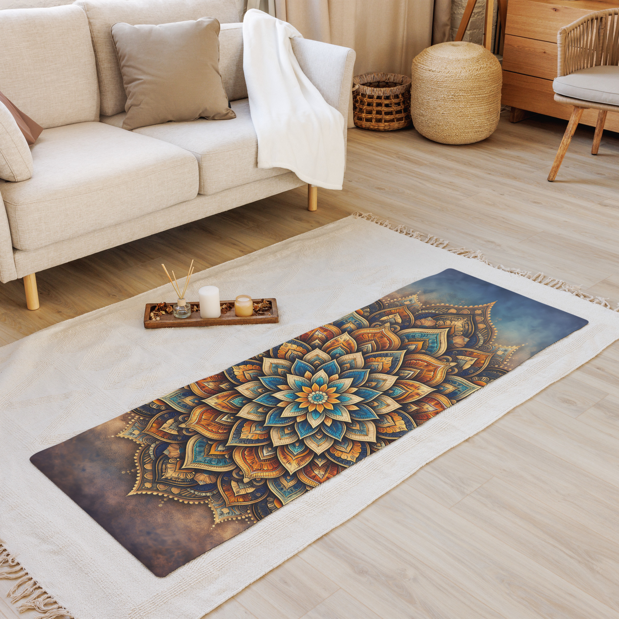 Dieses Motiv bringt Ruhe in deinen Kopf und Stärke in deinen Moment. Es wirkt wie ein visuelles Atemholen, das dich erdet und gleichzeitig Energie freisetzt. Die symmetrische Form zieht den Blick nach innen und schafft sofort ein Gefühl von Fokus und Ausgeglichenheit. Warme Erdtöne treffen auf kühle Blaunuancen und erzeugen eine harmonische Spannung, die nie laut ist, aber immer präsent bleibt. Das Mandala steht für innere Ordnung, Klarheit und den bewussten Umgang mit dir selbst. Es begleitet dich in ruhigen Phasen genauso wie in Momenten, in denen du neue Kraft sammeln willst. Egal ob Meditation, Yoga, Achtsamkeit oder einfach ein Moment für dich – dieses Motiv verstärkt genau diese Stimmung. Es wirkt beruhigend, ohne langweilig zu sein, und kraftvoll, ohne zu dominieren. Die feinen Details laden dazu ein, immer wieder Neues zu entdecken und dabei den Kopf loszulassen. Dieses Mandala ist ein Statement für Balance, Selbstfürsorge und innere Stärke. Es zeigt, dass Ruhe nicht Stillstand bedeutet, sondern bewusste Kontrolle über die eigene Energie. Perfekt für alle, die Tiefe lieben, sich selbst etwas Gutes tun wollen und ihren Alltag mit mehr Fokus und Gelassenheit füllen möchten.