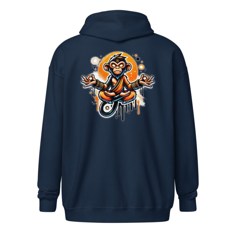 Dieses Design verbindet spirituelle Gelassenheit mit urbanem Street-Art-Stil. Ein cooler, meditierender Affe sitzt im Lotussitz, mit geschlossenen Augen und vollkommener Balance – umgeben von einer mystischen Aura aus Energie und Ruhe. Seine orangen Gewänder erinnern an buddhistische Mönche, während die leuchtenden Farben und die dynamischen Details einen modernen, künstlerischen Touch verleihen. Perfekt für Yoga-Fans, Meditationsfreunde und alle, die nach innerer Ruhe streben, aber dabei auch eine gewisse Rebellion ausstrahlen wollen. Bleib gechillt – sei wie der Zen-Affe!