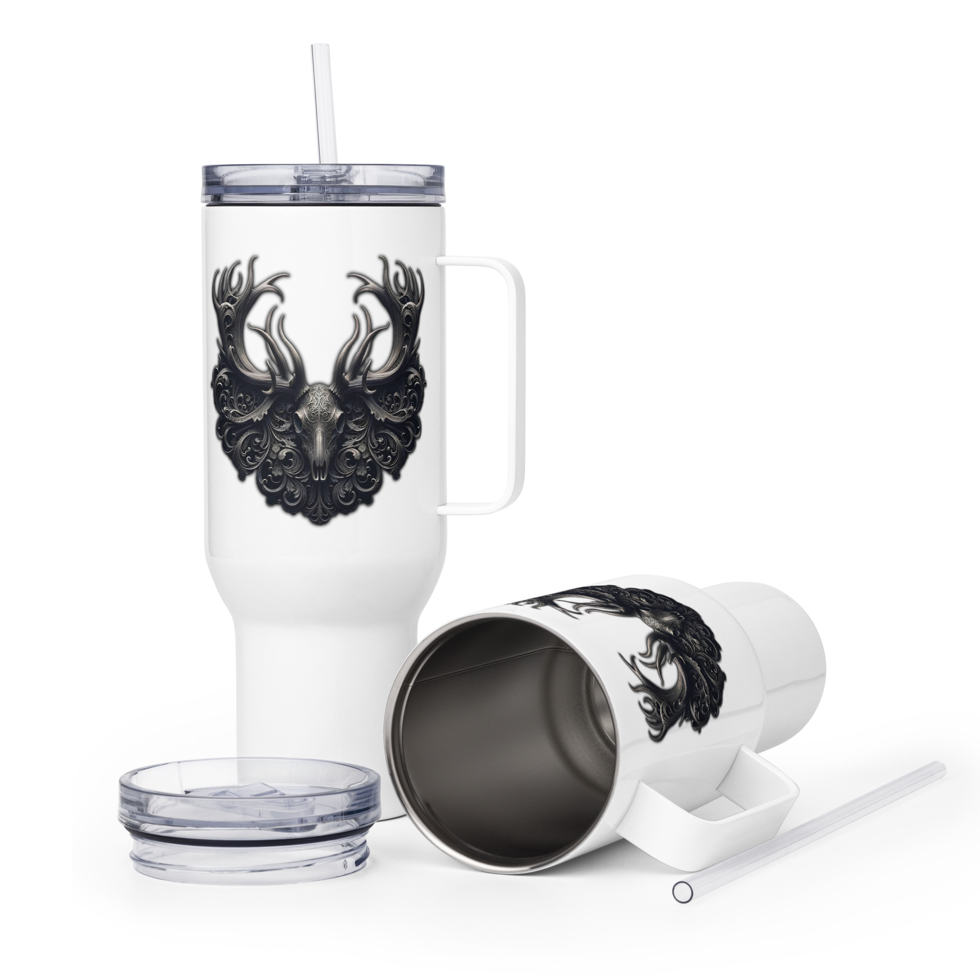 Kraftvoll, düster und voller Magie – dieser Hirschschädel wirkt wie ein uraltes Symbol aus einer anderen Welt. Die detailreichen Ornamente verleihen ihm eine fast königliche Aura, während die mächtigen Geweihe Stärke und Unendlichkeit ausstrahlen. Dieses Motiv steht für die Verbindung von Leben und Tod, Natur und Mythos, Vergänglichkeit und Ewigkeit. Es ist ein Sinnbild für innere Stärke, spirituelle Tiefe und die geheimnisvolle Seite des Waldes. Stell dir vor, wie dieses Kunstwerk deine Haltung nach außen trägt: stolz, frei und voller Mysterium. Ein echter Blickfang für alle, die das Besondere lieben und sich mit mythischen Symbolen identifizieren. Perfekt für dunkle Nächte, Festivals, Gothic-Vibes oder einfach als Statement für deine Einzigartigkeit.