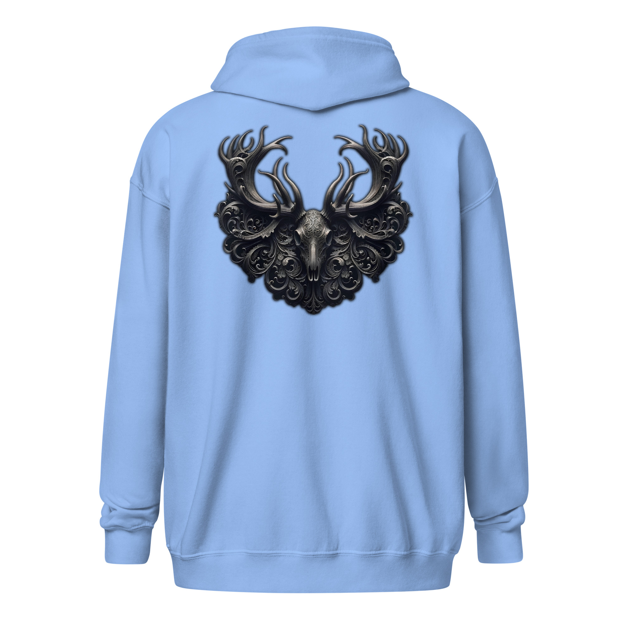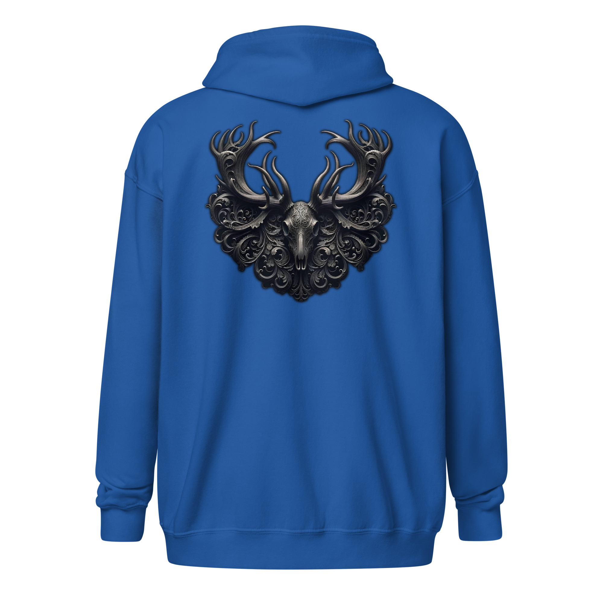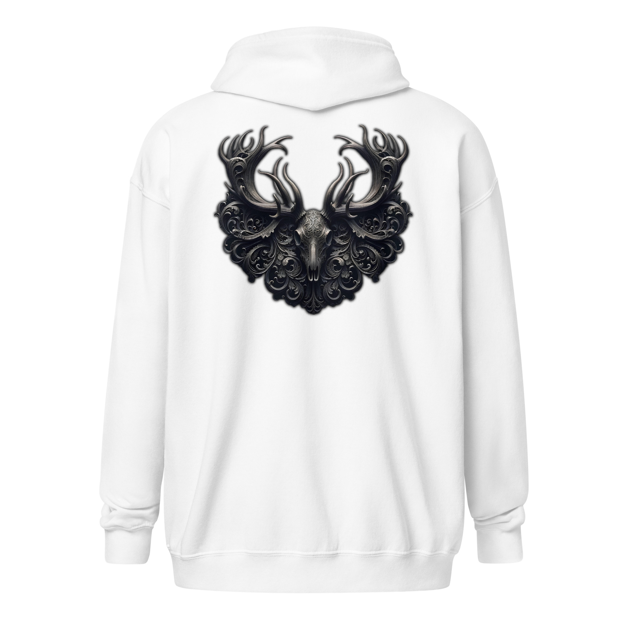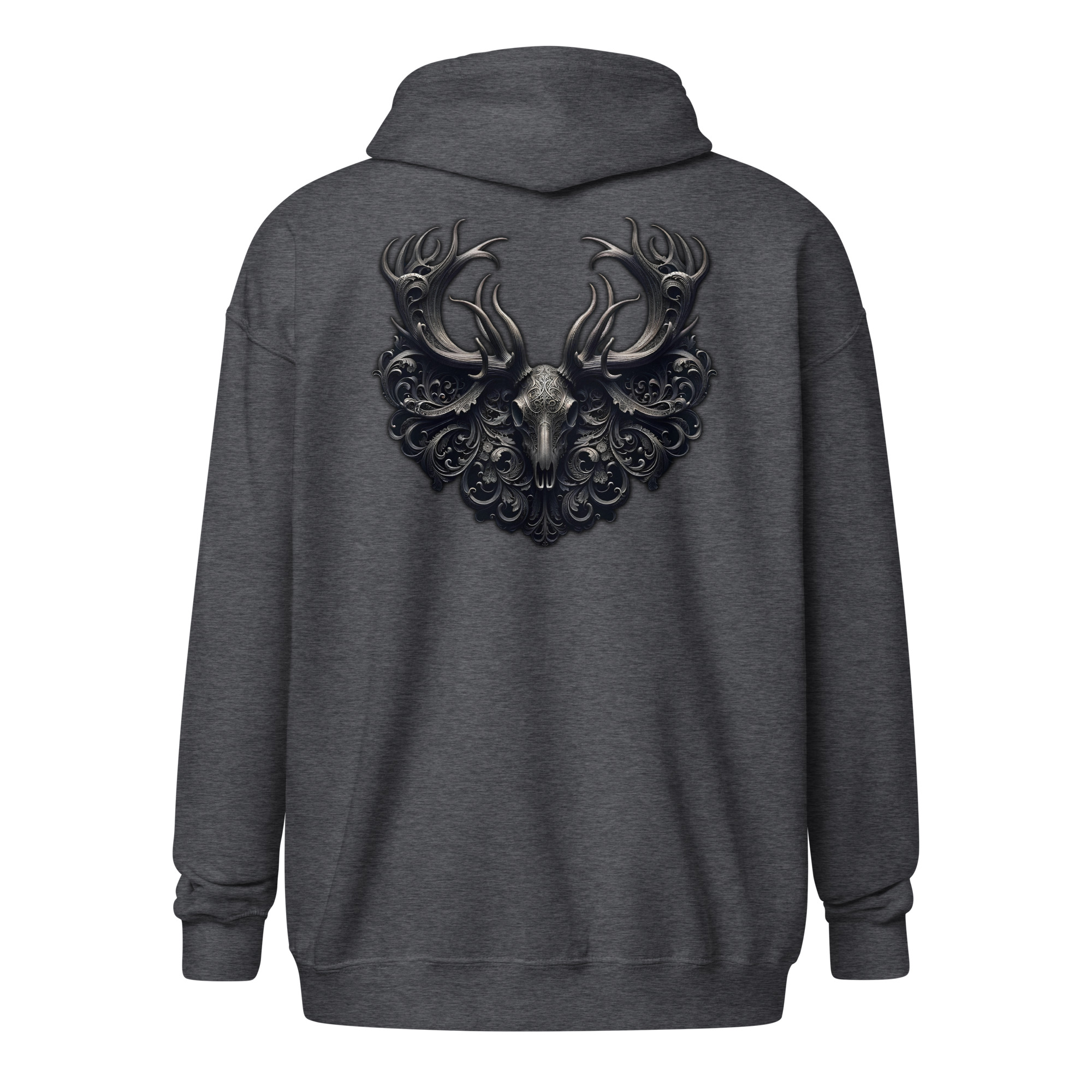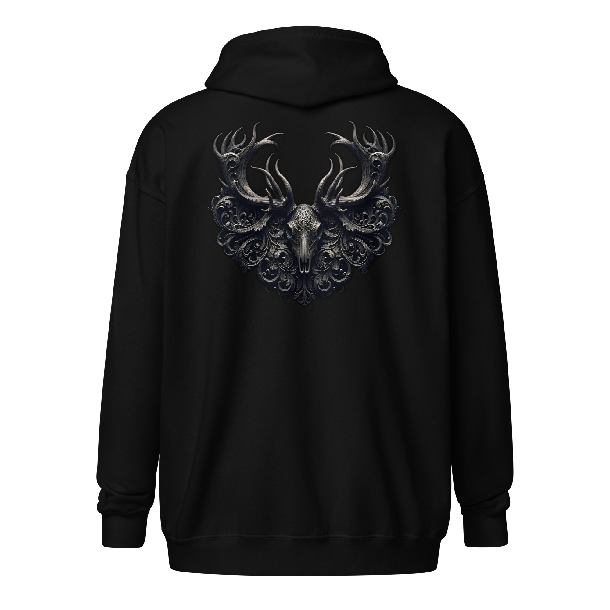 Kraftvoll, düster und voller Magie – dieser Hirschschädel wirkt wie ein uraltes Symbol aus einer anderen Welt. Die detailreichen Ornamente verleihen ihm eine fast königliche Aura, während die mächtigen Geweihe Stärke und Unendlichkeit ausstrahlen. Dieses Motiv steht für die Verbindung von Leben und Tod, Natur und Mythos, Vergänglichkeit und Ewigkeit. Es ist ein Sinnbild für innere Stärke, spirituelle Tiefe und die geheimnisvolle Seite des Waldes. Stell dir vor, wie dieses Kunstwerk deine Haltung nach außen trägt: stolz, frei und voller Mysterium. Ein echter Blickfang für alle, die das Besondere lieben und sich mit mythischen Symbolen identifizieren. Perfekt für dunkle Nächte, Festivals, Gothic-Vibes oder einfach als Statement für deine Einzigartigkeit.