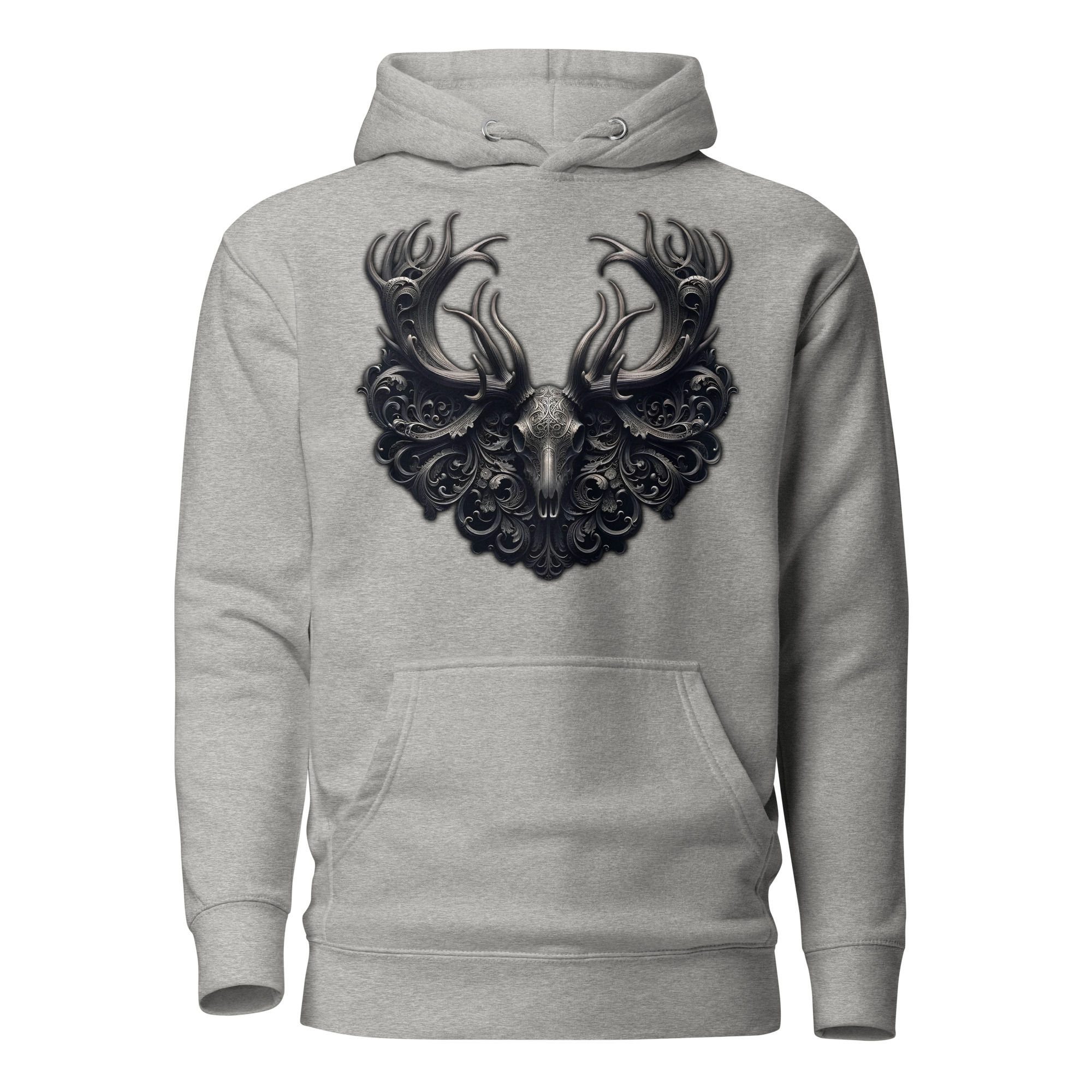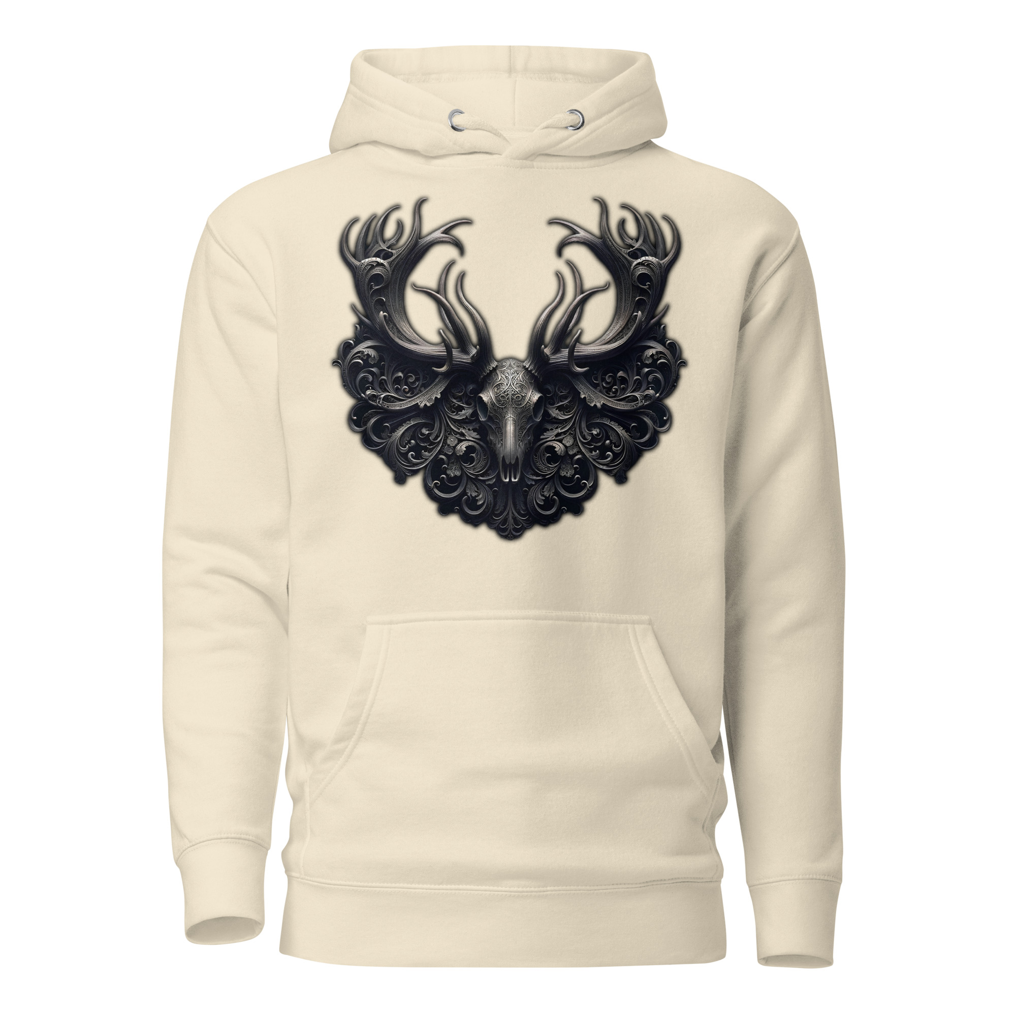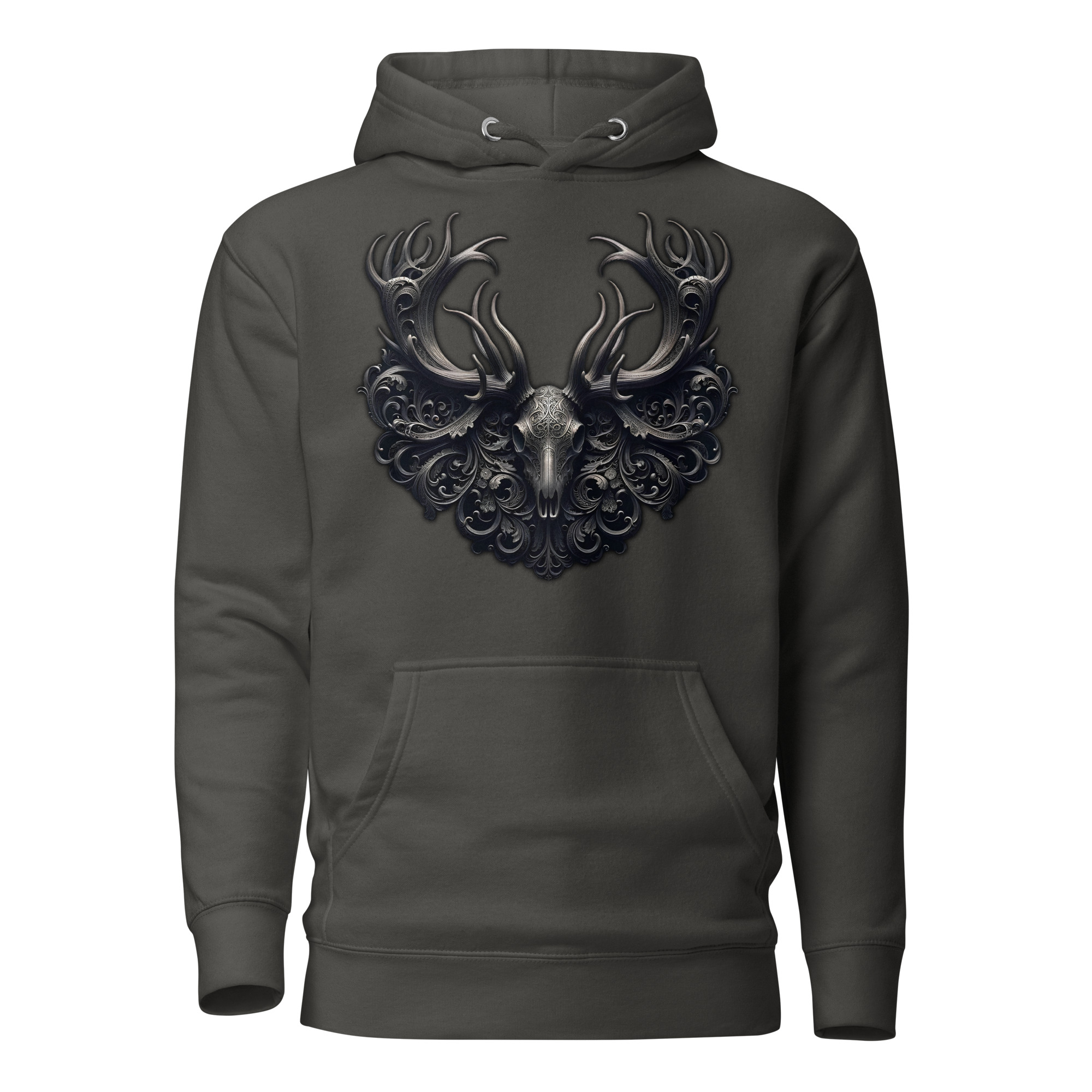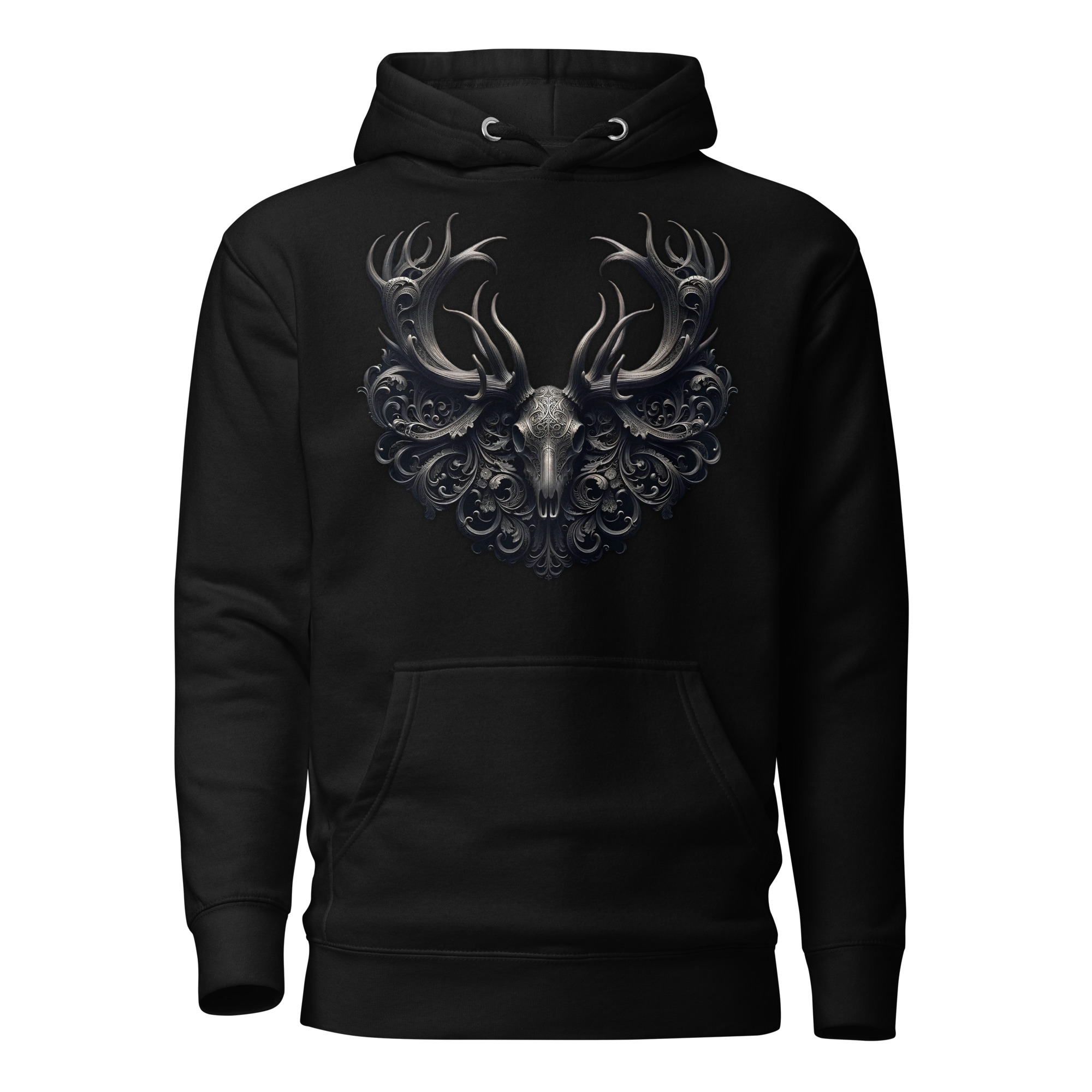 Kraftvoll, düster und voller Magie – dieser Hirschschädel wirkt wie ein uraltes Symbol aus einer anderen Welt. Die detailreichen Ornamente verleihen ihm eine fast königliche Aura, während die mächtigen Geweihe Stärke und Unendlichkeit ausstrahlen. Dieses Motiv steht für die Verbindung von Leben und Tod, Natur und Mythos, Vergänglichkeit und Ewigkeit. Es ist ein Sinnbild für innere Stärke, spirituelle Tiefe und die geheimnisvolle Seite des Waldes. Stell dir vor, wie dieses Kunstwerk deine Haltung nach außen trägt: stolz, frei und voller Mysterium. Ein echter Blickfang für alle, die das Besondere lieben und sich mit mythischen Symbolen identifizieren. Perfekt für dunkle Nächte, Festivals, Gothic-Vibes oder einfach als Statement für deine Einzigartigkeit.