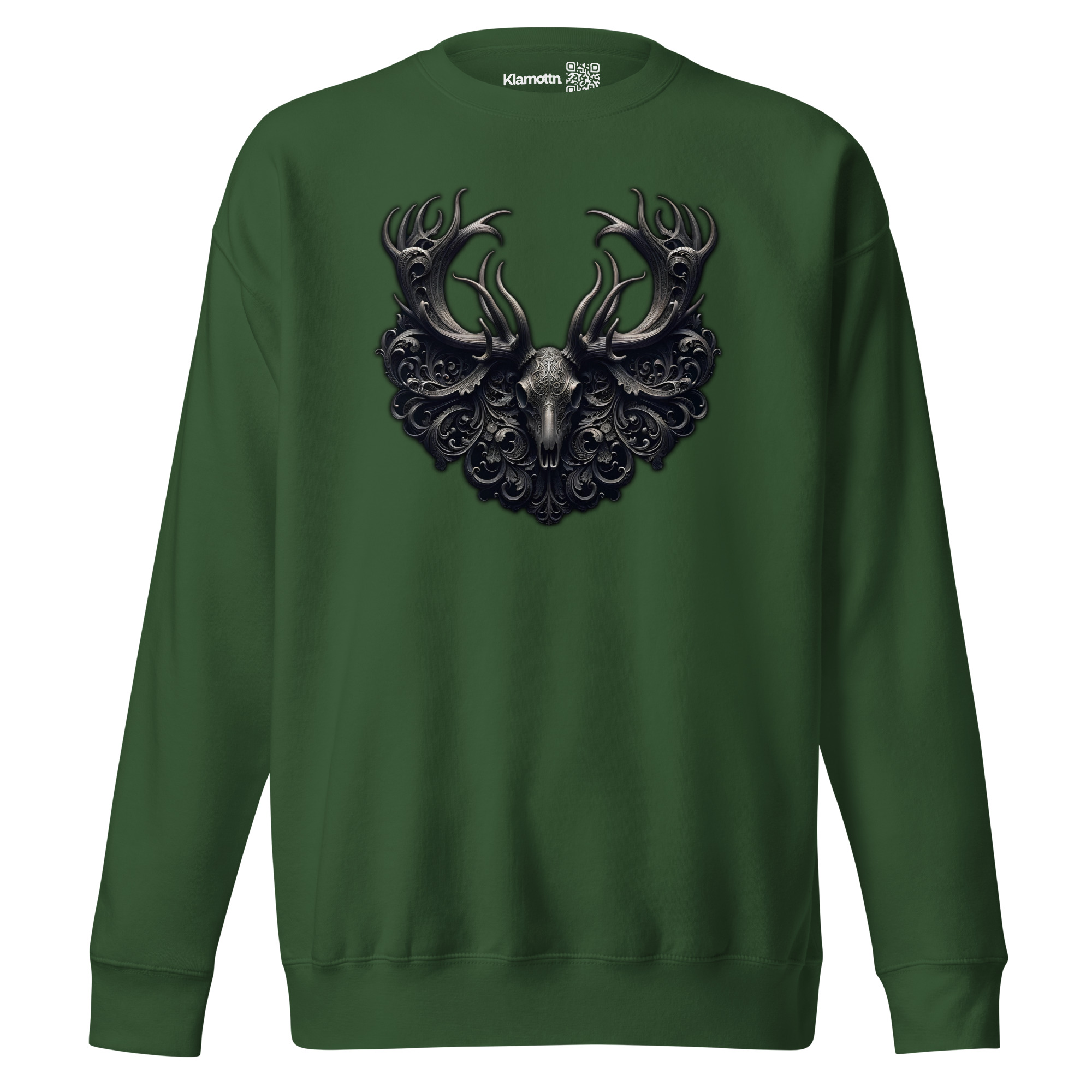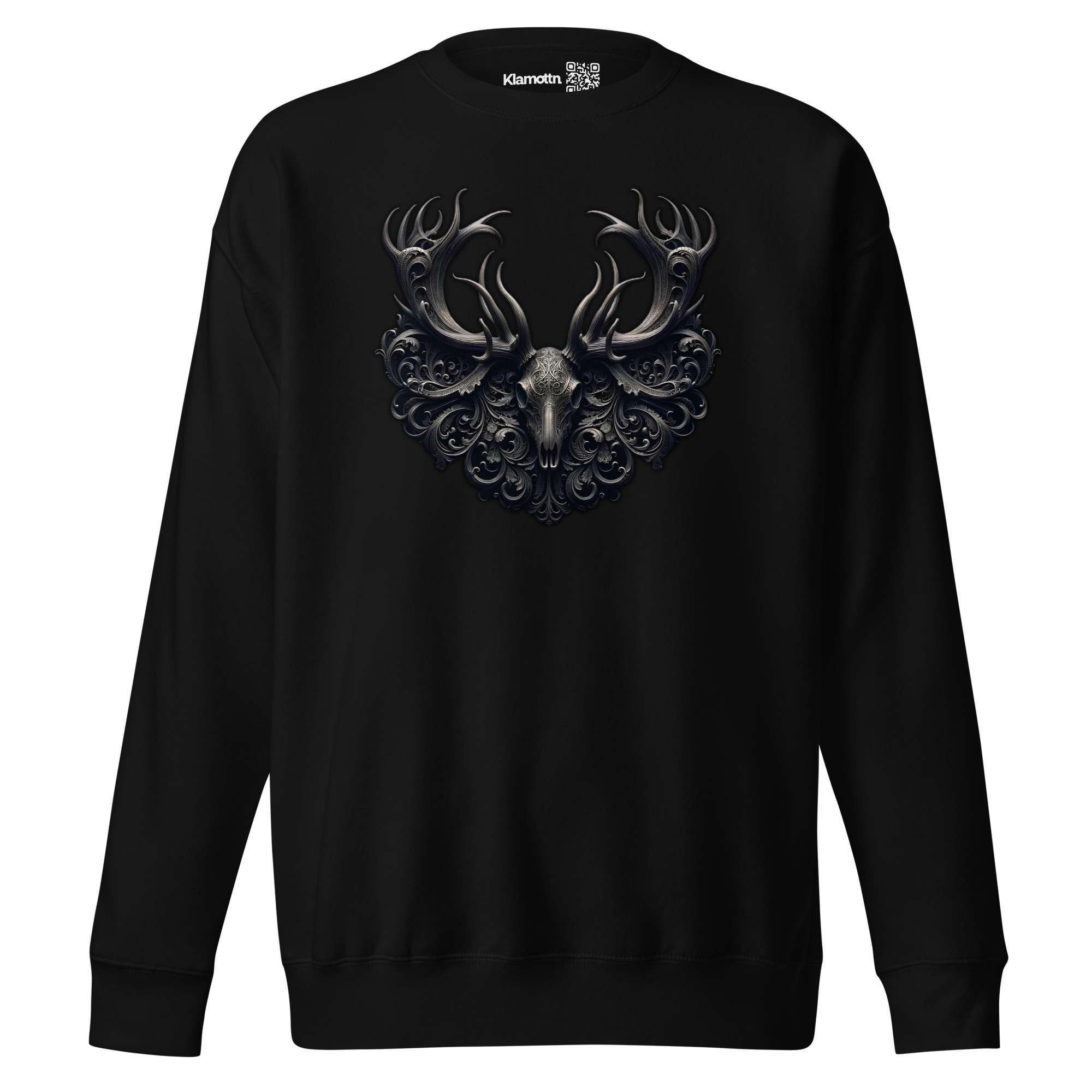 Kraftvoll, düster und voller Magie – dieser Hirschschädel wirkt wie ein uraltes Symbol aus einer anderen Welt. Die detailreichen Ornamente verleihen ihm eine fast königliche Aura, während die mächtigen Geweihe Stärke und Unendlichkeit ausstrahlen. Dieses Motiv steht für die Verbindung von Leben und Tod, Natur und Mythos, Vergänglichkeit und Ewigkeit. Es ist ein Sinnbild für innere Stärke, spirituelle Tiefe und die geheimnisvolle Seite des Waldes. Stell dir vor, wie dieses Kunstwerk deine Haltung nach außen trägt: stolz, frei und voller Mysterium. Ein echter Blickfang für alle, die das Besondere lieben und sich mit mythischen Symbolen identifizieren. Perfekt für dunkle Nächte, Festivals, Gothic-Vibes oder einfach als Statement für deine Einzigartigkeit.