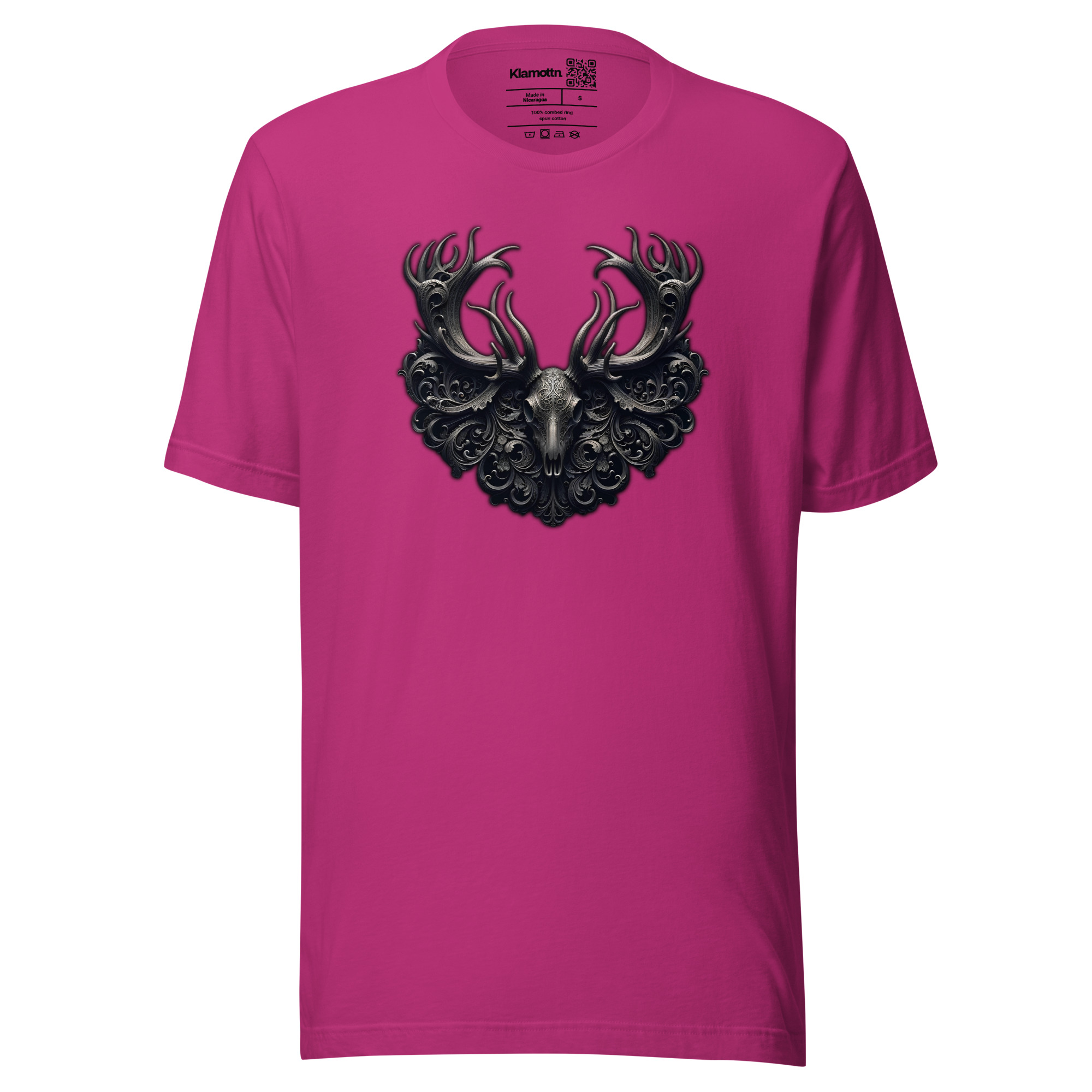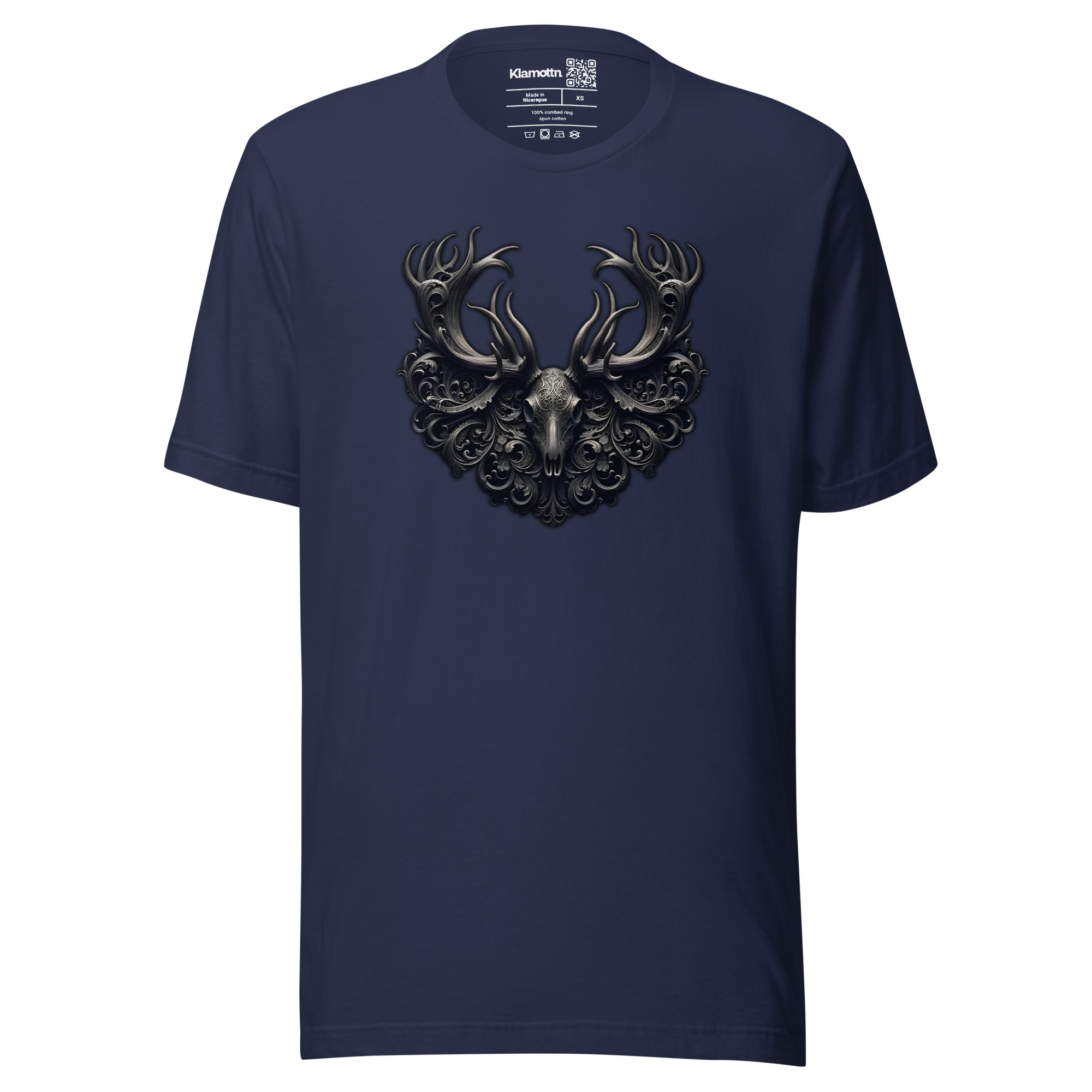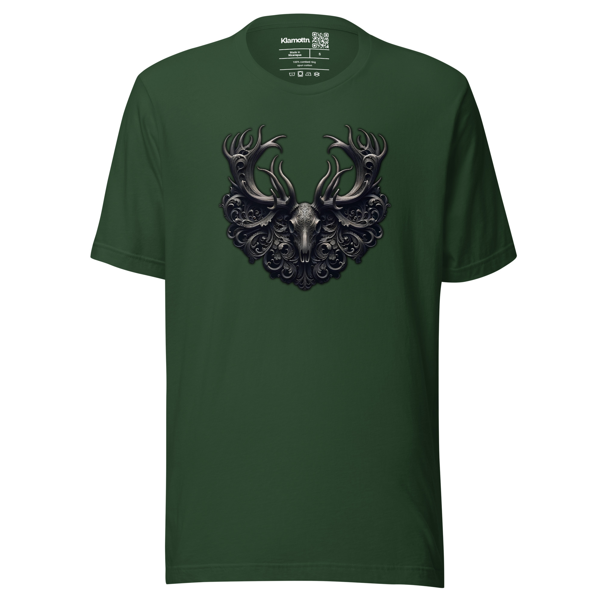 Kraftvoll, düster und voller Magie – dieser Hirschschädel wirkt wie ein uraltes Symbol aus einer anderen Welt. Die detailreichen Ornamente verleihen ihm eine fast königliche Aura, während die mächtigen Geweihe Stärke und Unendlichkeit ausstrahlen. Dieses Motiv steht für die Verbindung von Leben und Tod, Natur und Mythos, Vergänglichkeit und Ewigkeit. Es ist ein Sinnbild für innere Stärke, spirituelle Tiefe und die geheimnisvolle Seite des Waldes. Stell dir vor, wie dieses Kunstwerk deine Haltung nach außen trägt: stolz, frei und voller Mysterium. Ein echter Blickfang für alle, die das Besondere lieben und sich mit mythischen Symbolen identifizieren. Perfekt für dunkle Nächte, Festivals, Gothic-Vibes oder einfach als Statement für deine Einzigartigkeit.