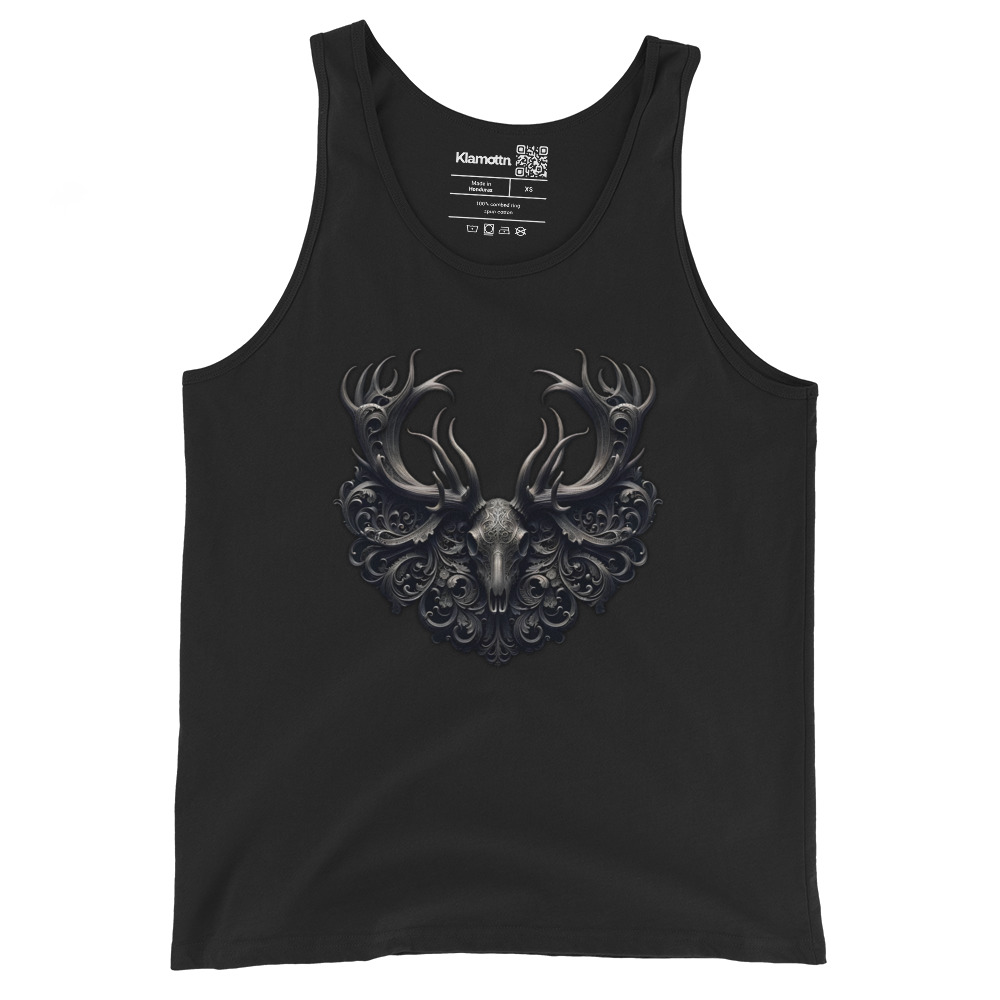 Kraftvoll, düster und voller Magie – dieser Hirschschädel wirkt wie ein uraltes Symbol aus einer anderen Welt. Die detailreichen Ornamente verleihen ihm eine fast königliche Aura, während die mächtigen Geweihe Stärke und Unendlichkeit ausstrahlen. Dieses Motiv steht für die Verbindung von Leben und Tod, Natur und Mythos, Vergänglichkeit und Ewigkeit. Es ist ein Sinnbild für innere Stärke, spirituelle Tiefe und die geheimnisvolle Seite des Waldes. Stell dir vor, wie dieses Kunstwerk deine Haltung nach außen trägt: stolz, frei und voller Mysterium. Ein echter Blickfang für alle, die das Besondere lieben und sich mit mythischen Symbolen identifizieren. Perfekt für dunkle Nächte, Festivals, Gothic-Vibes oder einfach als Statement für deine Einzigartigkeit.