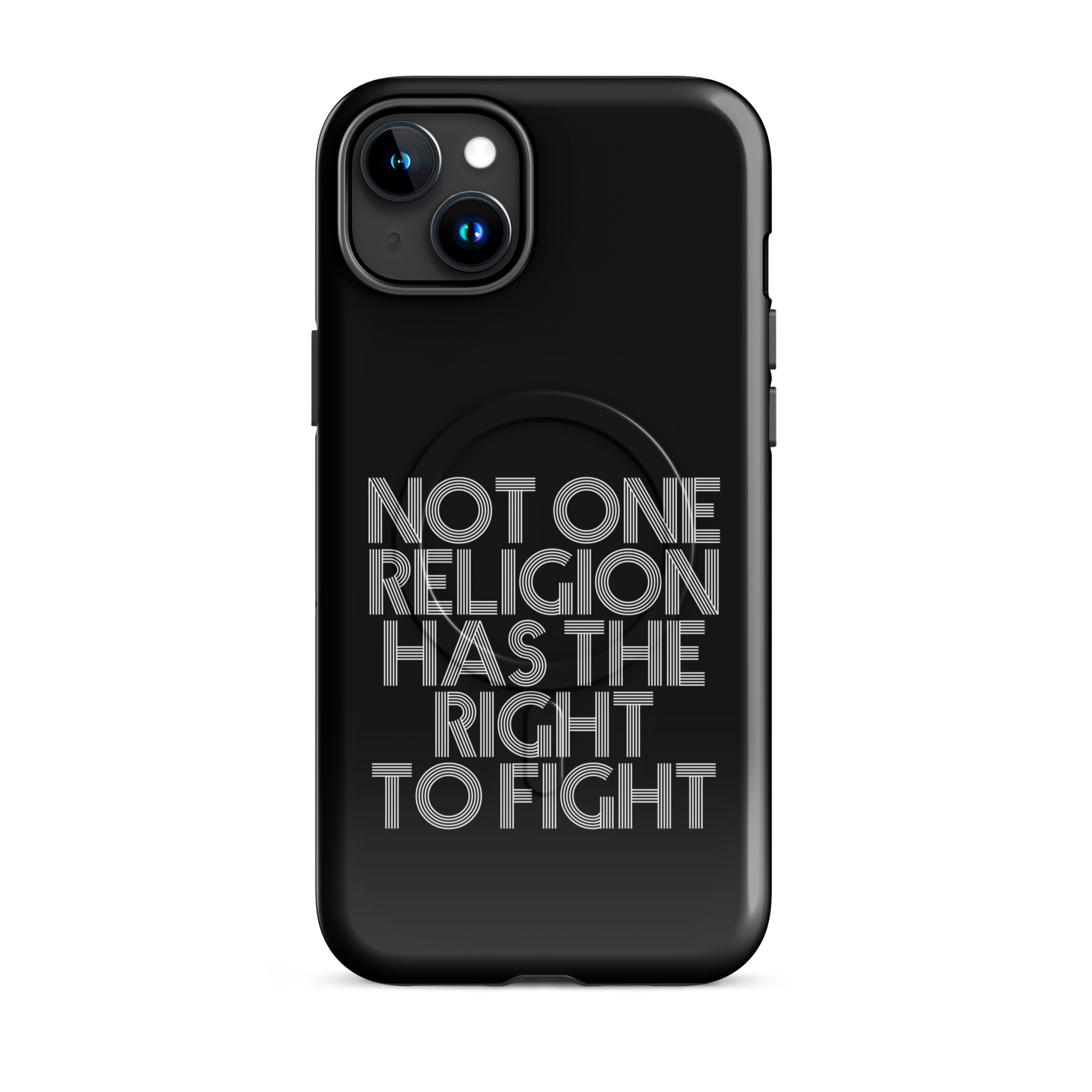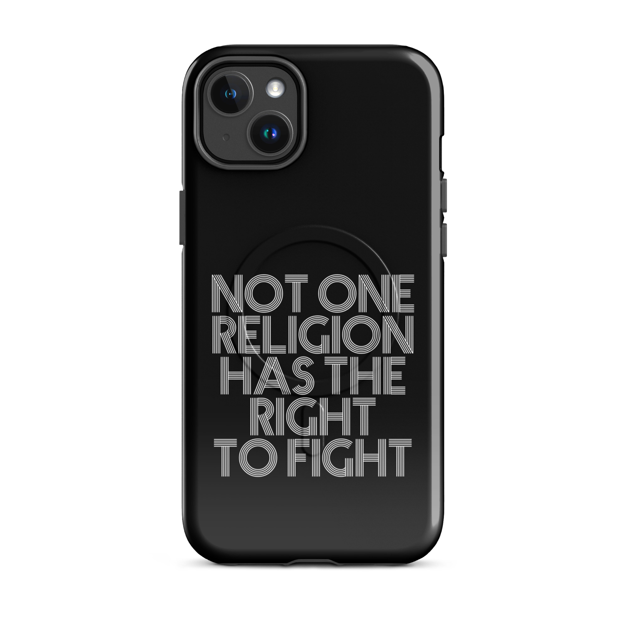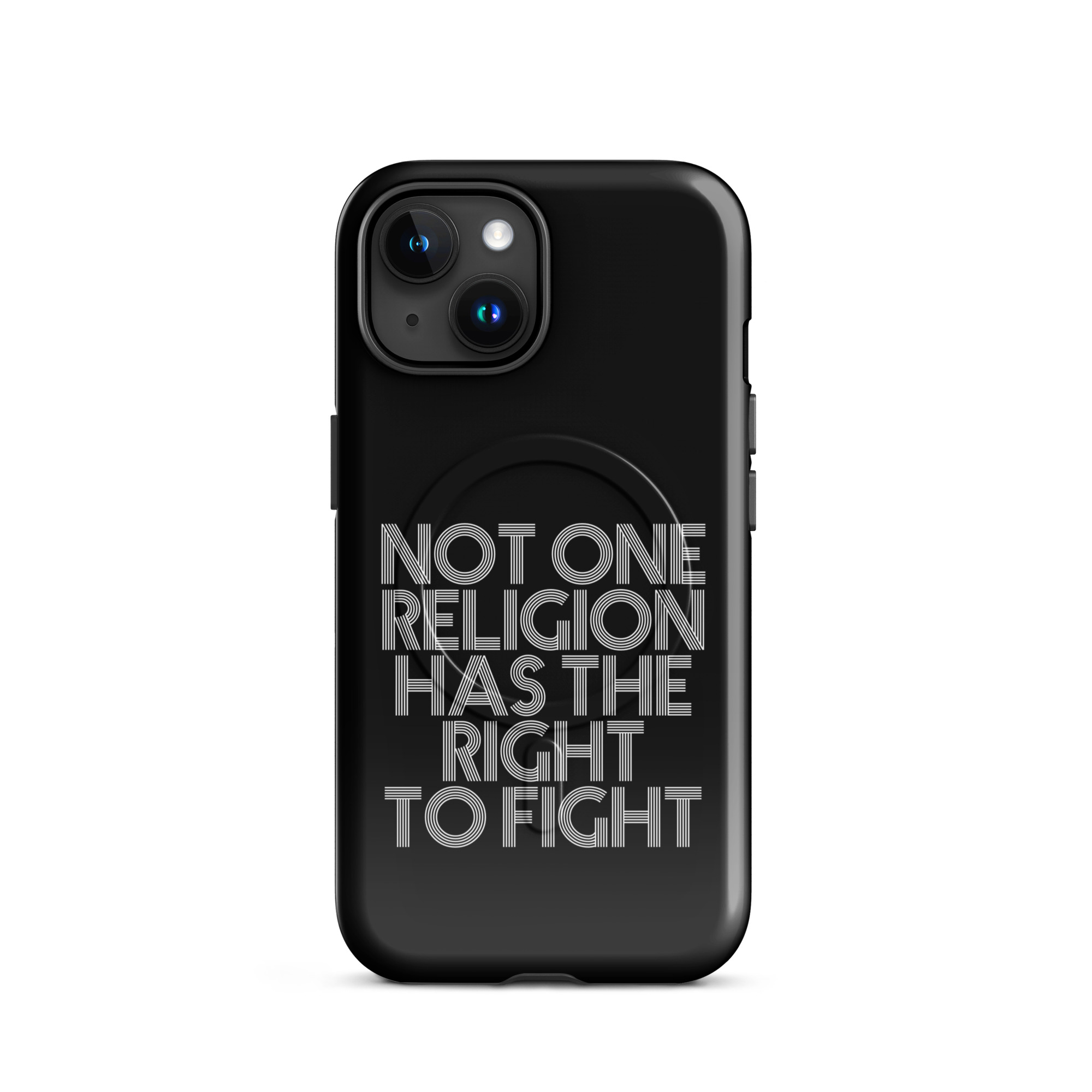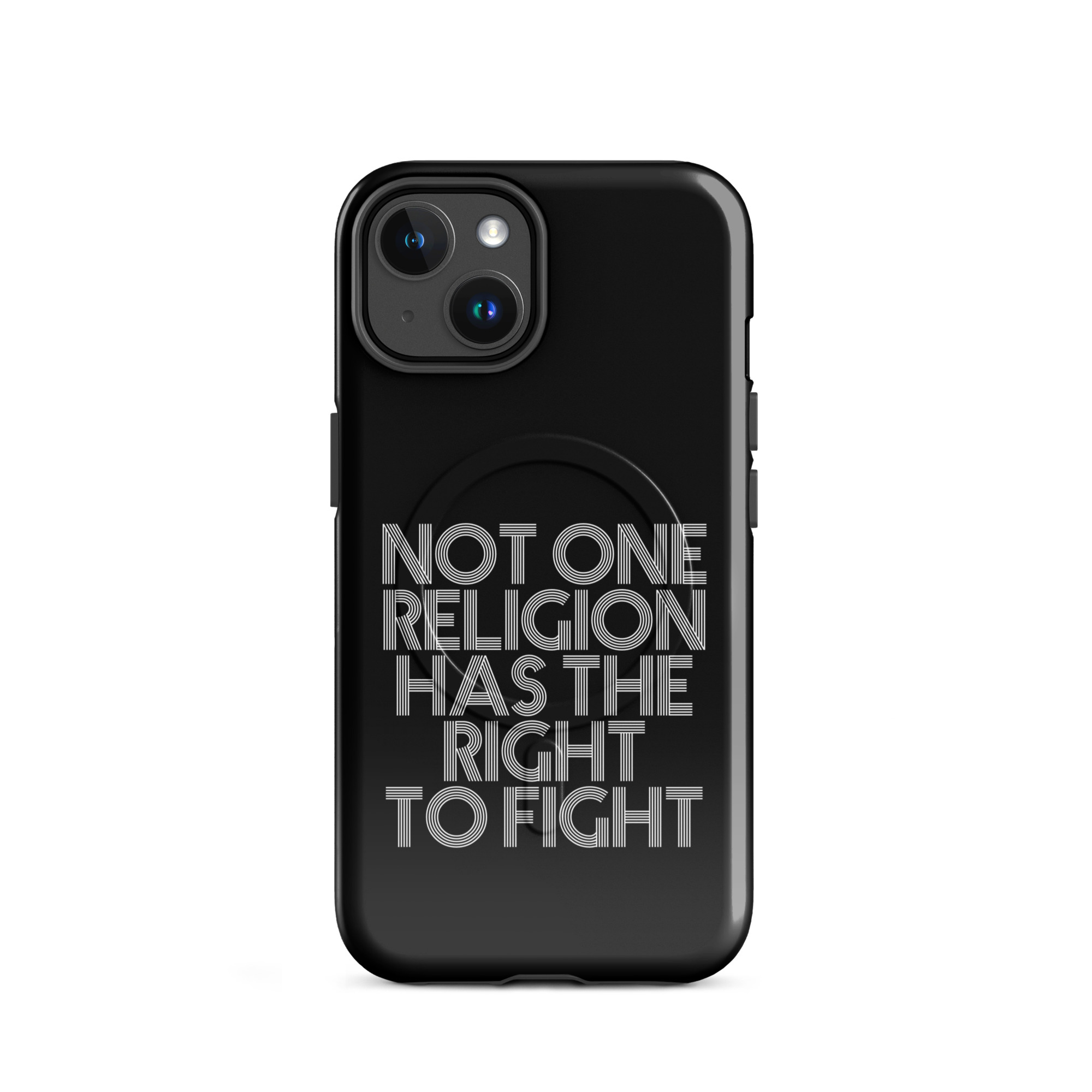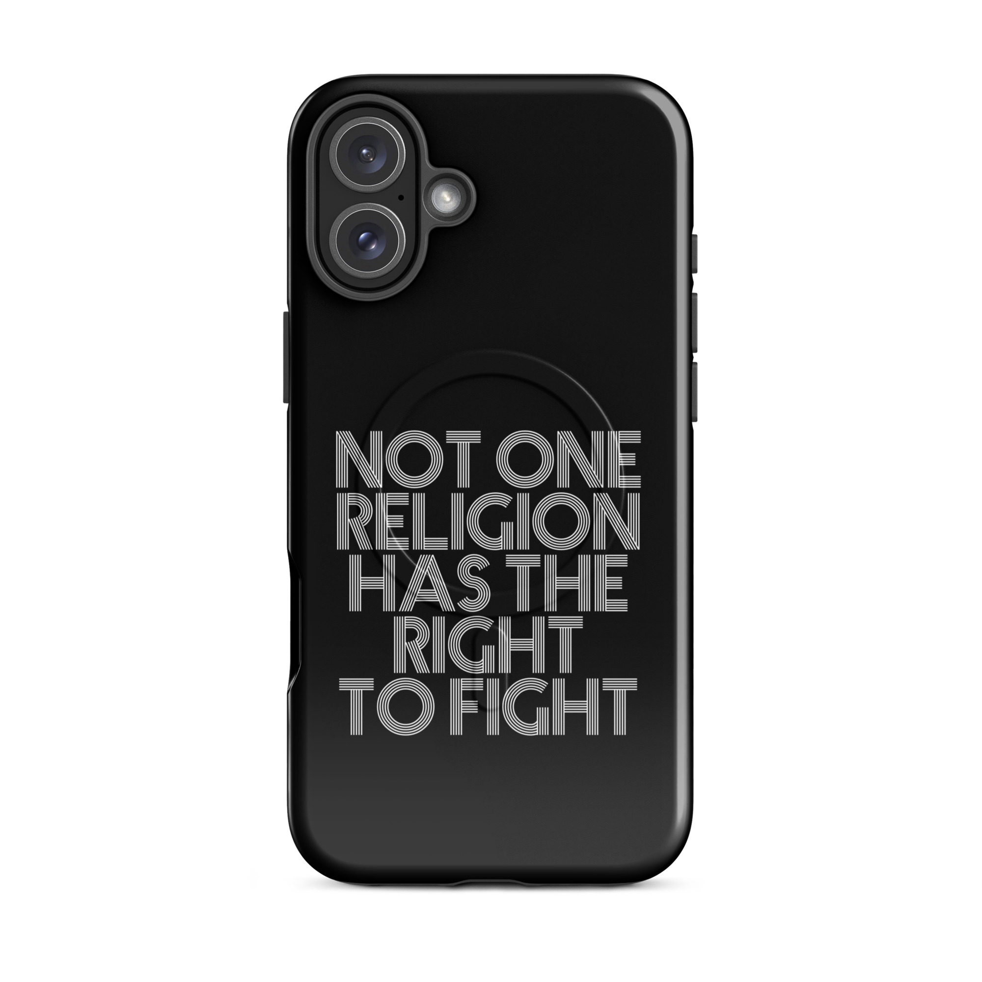 Die klare Typografie verleiht der Botschaft Gewicht. Kein Schnörkel, keine Ablenkung – nur pure Aussagekraft. Dieses Motiv fordert zum Nachdenken auf und setzt ein starkes Zeichen gegen Fanatismus, Intoleranz und religiöse Machtspiele. Es erinnert daran, dass Glaube niemals als Rechtfertigung für Gewalt dienen darf.