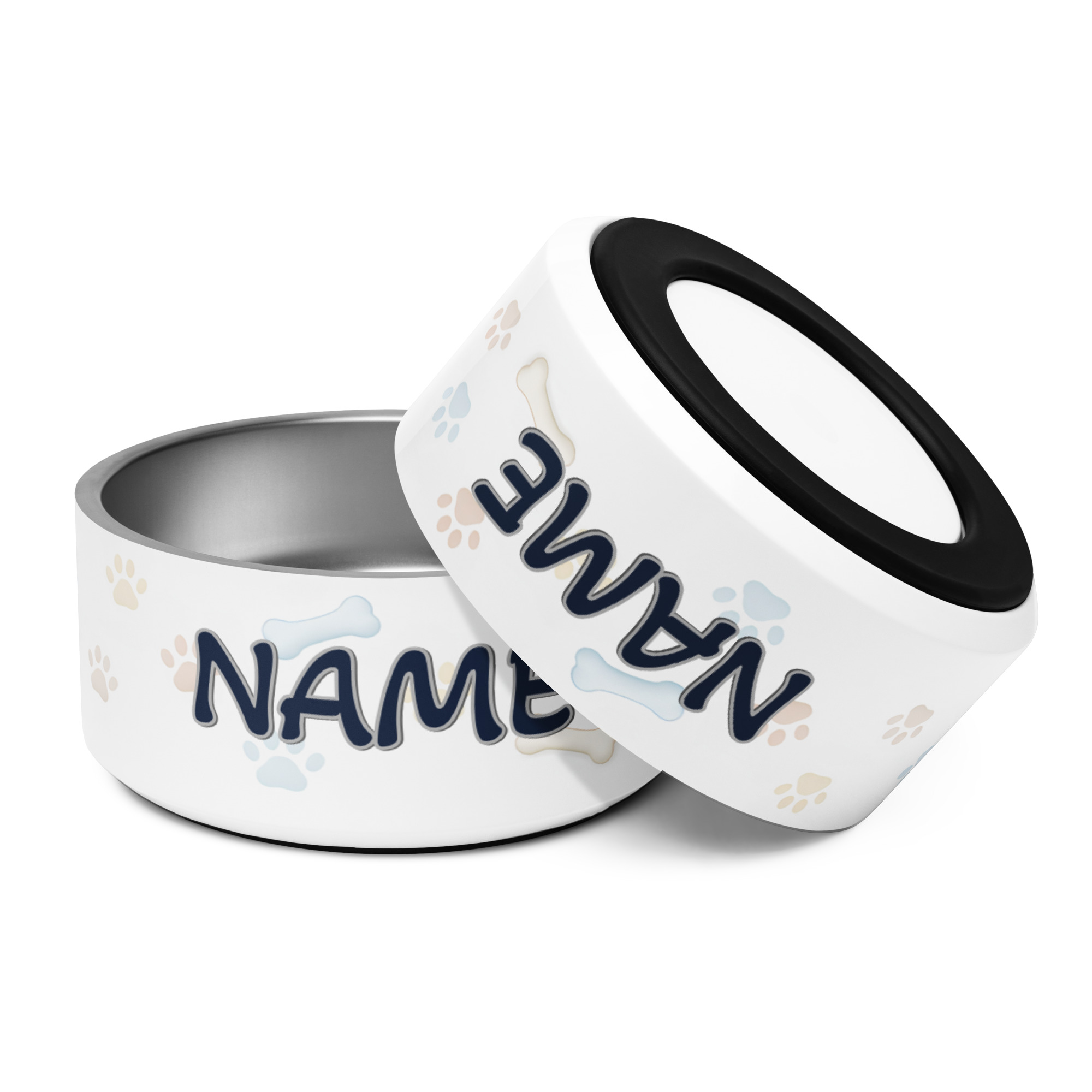 Dieser liebevoll gestaltete Hundenapf mit Namen verbindet zeitloses Design mit persönlicher Note. Das dezente Pfoten- und Knochenmuster in sanften Farben sorgt für einen ruhigen, hochwertigen Look – perfekt für jedes Zuhause.