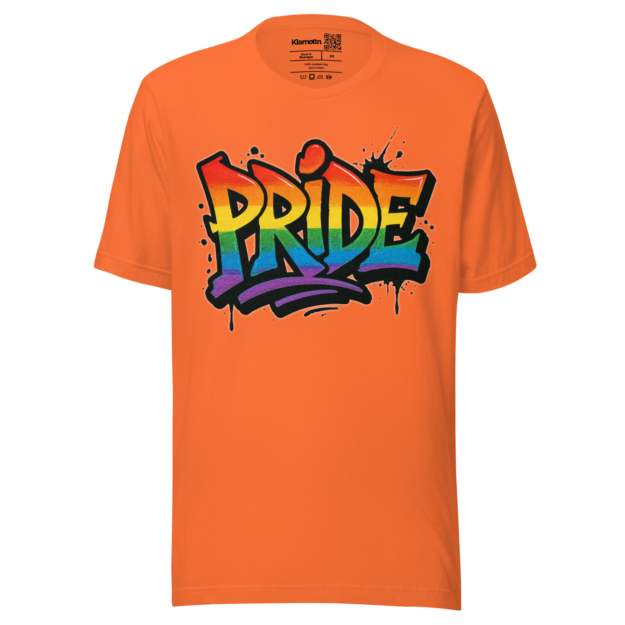 Dieses kraftvolle Design bringt Farbe, Haltung und ein klares Statement auf den Punkt! Das Wort „PRIDE“ ist in den Farben des Regenbogens gestaltet – von Rot über Orange, Gelb, Grün, Blau bis hin zu Violett – und im dynamischen Graffiti-Stil gesprayt. Schwarze Konturen und Farbspritzer verleihen dem Motiv eine urbane, rebellische Note, während die Farben für Vielfalt, Liebe, Freiheit und Stolz stehen.