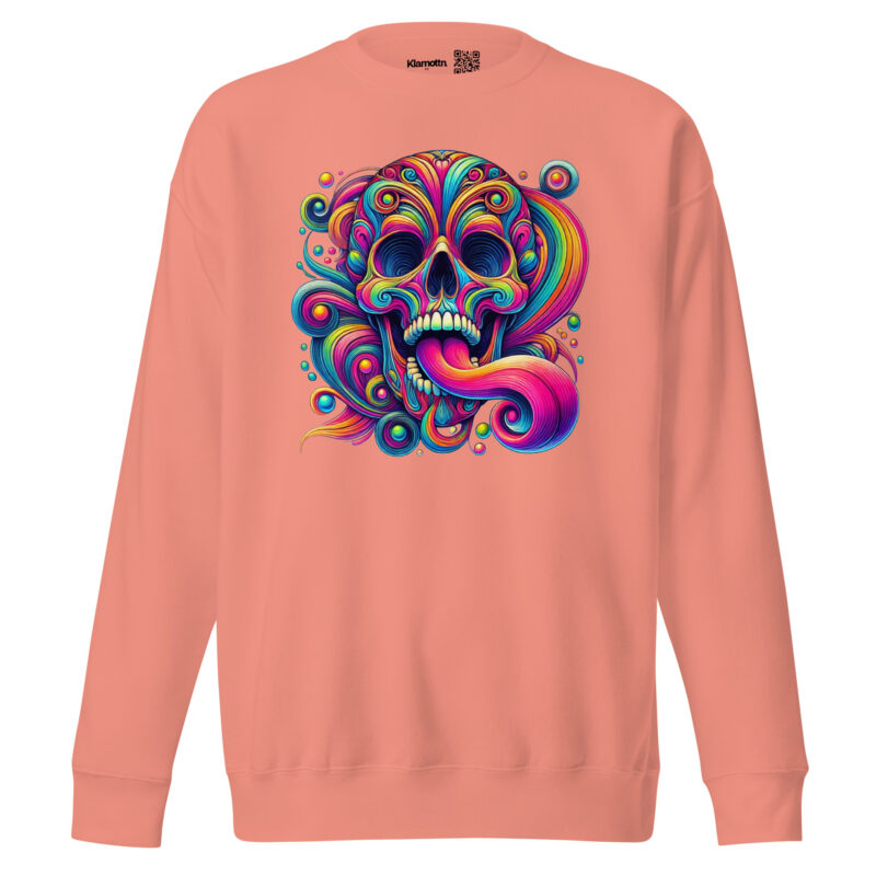 Tauche ein in die Welt der Farben und Fantasie mit diesem hypnotisierenden Totenkopf-Design! Die intensiven Farben und die kunstvoll geschwungenen Linien verleihen dem Schädel eine lebendige, psychedelische Ausstrahlung, die sofort ins Auge sticht. Mit seiner herausgestreckten Zunge und den spiralförmigen, fließenden Mustern strahlt dieser Totenkopf eine einzigartige Mischung aus Mystik und Kreativität aus. Ideal für dich, wenn du ein Fan von außergewöhnlicher Kunst und surrealen Elementen bist und gerne etwas trägst, das anders ist. Dieses Design bringt Farbe und Spannung in deinen Alltag und ist ein echter Blickfang für alle, die es auffällig und künstlerisch lieben!