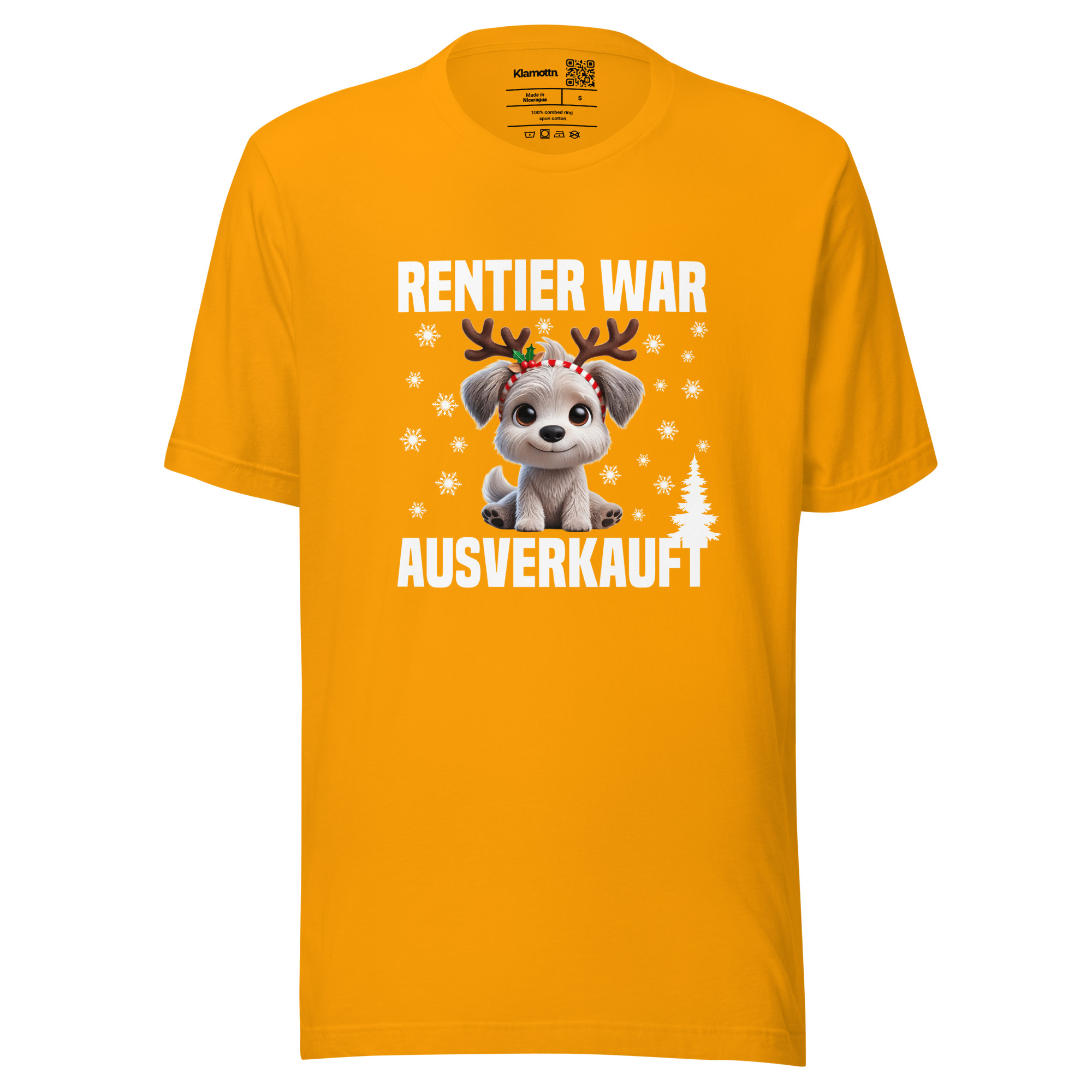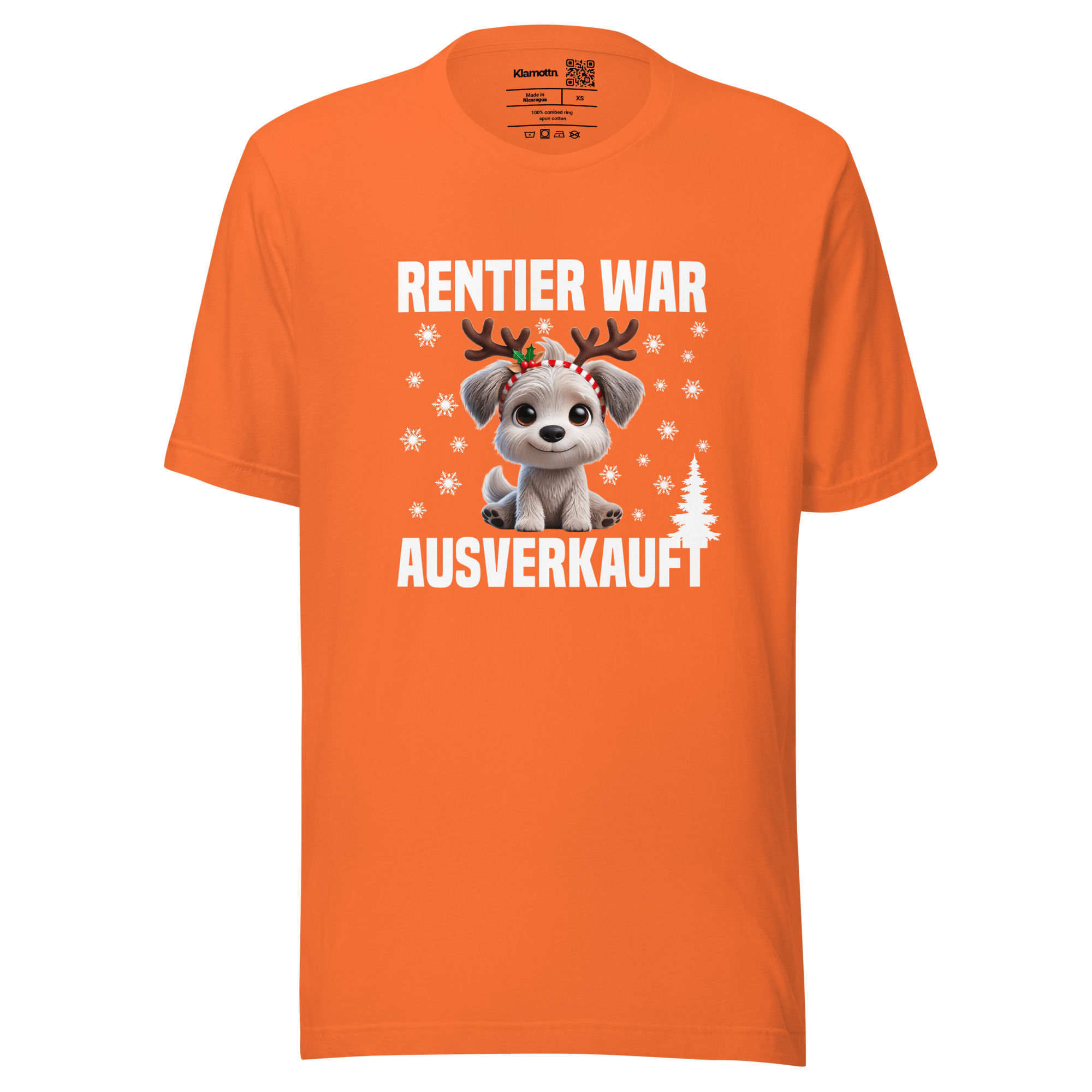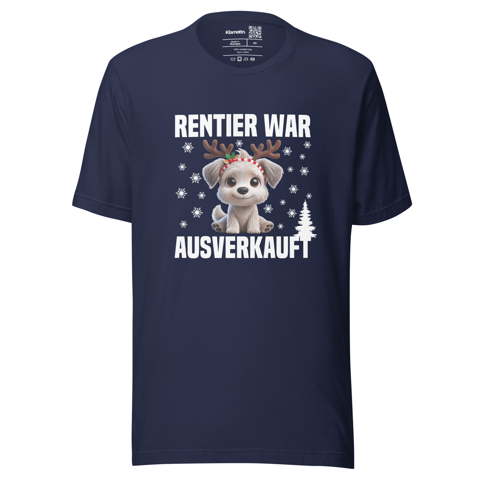 Warum sich mit einem Rentier zufriedengeben, wenn dieser putzige Hund bereit ist, die Show zu stehlen? Mit seinem niedlichen Rentiergeweih und dem charmanten Lächeln ist er der perfekte Ersatz für Rudolph und seine Crew. Der Spruch „Rentier war ausverkauft“ sorgt für einen humorvollen Blickfang und macht klar: Weihnachten geht auch tierisch originell! Ob als Hingucker auf der Weihnachtsfeier oder als Geschenk für Tierliebhaber – dieses Design bringt festliche Stimmung mit einem süßen Augenzwinkern. Lass diesen kleinen Weihnachtshelfer dein Herz erwärmen und zeig, dass es auch ohne Rentiere zauberhaft wird!
