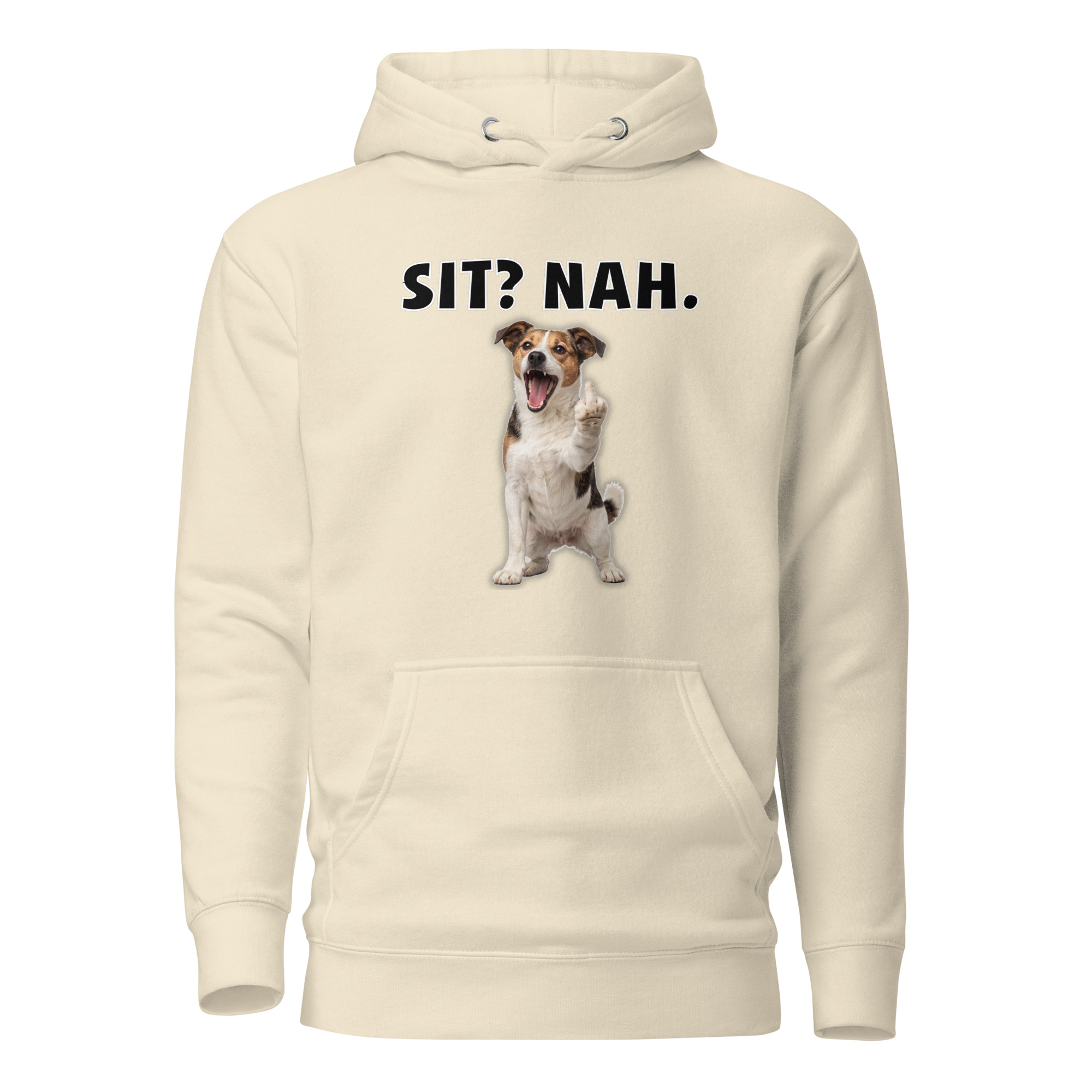 Frech, laut, unmissverständlich und komplett kompromisslos. Es geht um Selbstbestimmung, um Trotz, um dieses innere Augenrollen, wenn jemand glaubt, Autorität zu haben. Der offene Mund wirkt wie ein lautes inneres „Nein“, während die Geste keinen Spielraum für Missverständnisse lässt. Perfekt für alle Hundeliebhaber, die sich nichts vorschreiben lassen und lieber ihren eigenen Weg gehen.