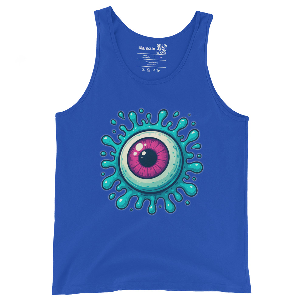 Dieses auffällige Design zeigt ein riesiges, detailreich gezeichnetes Auge in leuchtendem Pink, umgeben von einem dynamischen türkisblauen Splash-Effekt. Der kräftige Kontrast zwischen der irisierenden Pupille und den fließenden Tropfen lässt das Motiv regelrecht aus dem Bild springen. Ob als Symbol für Wachsamkeit, Neugier oder einfach ein stylischer Eyecatcher – dieses Design zieht alle Blicke auf sich. Ideal für alle, die es auffällig, modern und ein wenig surreal mögen.