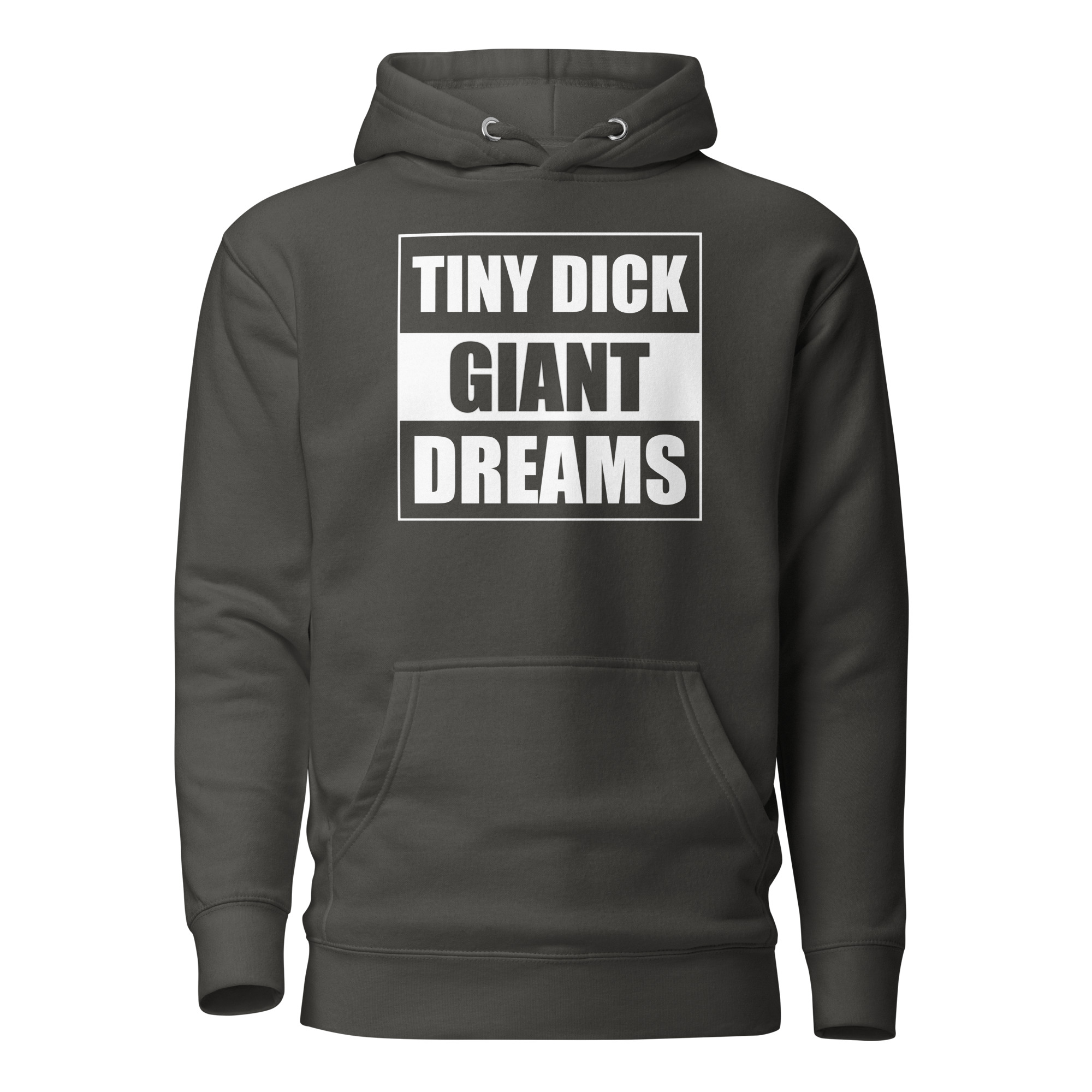 Klein anfangen, groß träumen – dieses Motiv bringt es auf den Punkt. Mit seinem provokanten Statement sorgt es garantiert für Aufmerksamkeit und ein Schmunzeln. Es steht für Selbstironie, Mut und die Größe deiner Visionen, egal was andere sagen. Wahre Größe wird nicht in Zentimetern gemessen wird, sondern in deinen Ambitionen. Dein Schwanz spielt dabei keine Rolle. Winziger Schwanz, riesige Träume. Dieses Design schreit förmlich nach Selbstbewusstsein und einem Augenzwinkern zugleich. Perfekt für alle, die Humor mit einer klaren Botschaft verbinden wollen. Ob im Alltag, beim Feiern oder als klares Statement auf der Straße – hier setzt du ein starkes Zeichen. Ein Must-Have für alle, die Konventionen sprengen und zeigen wollen, dass ihre Träume größer sind als jede Begrenzung.