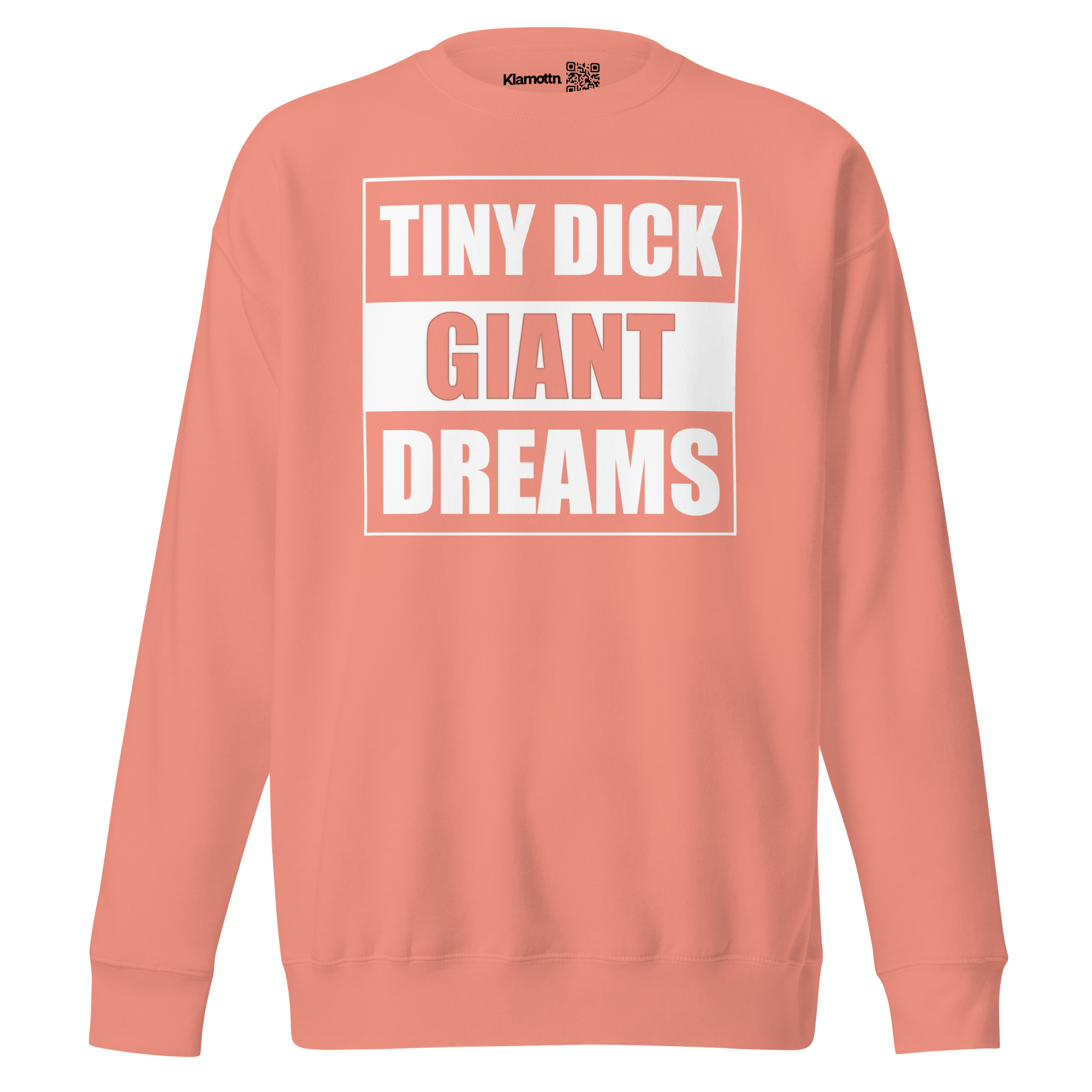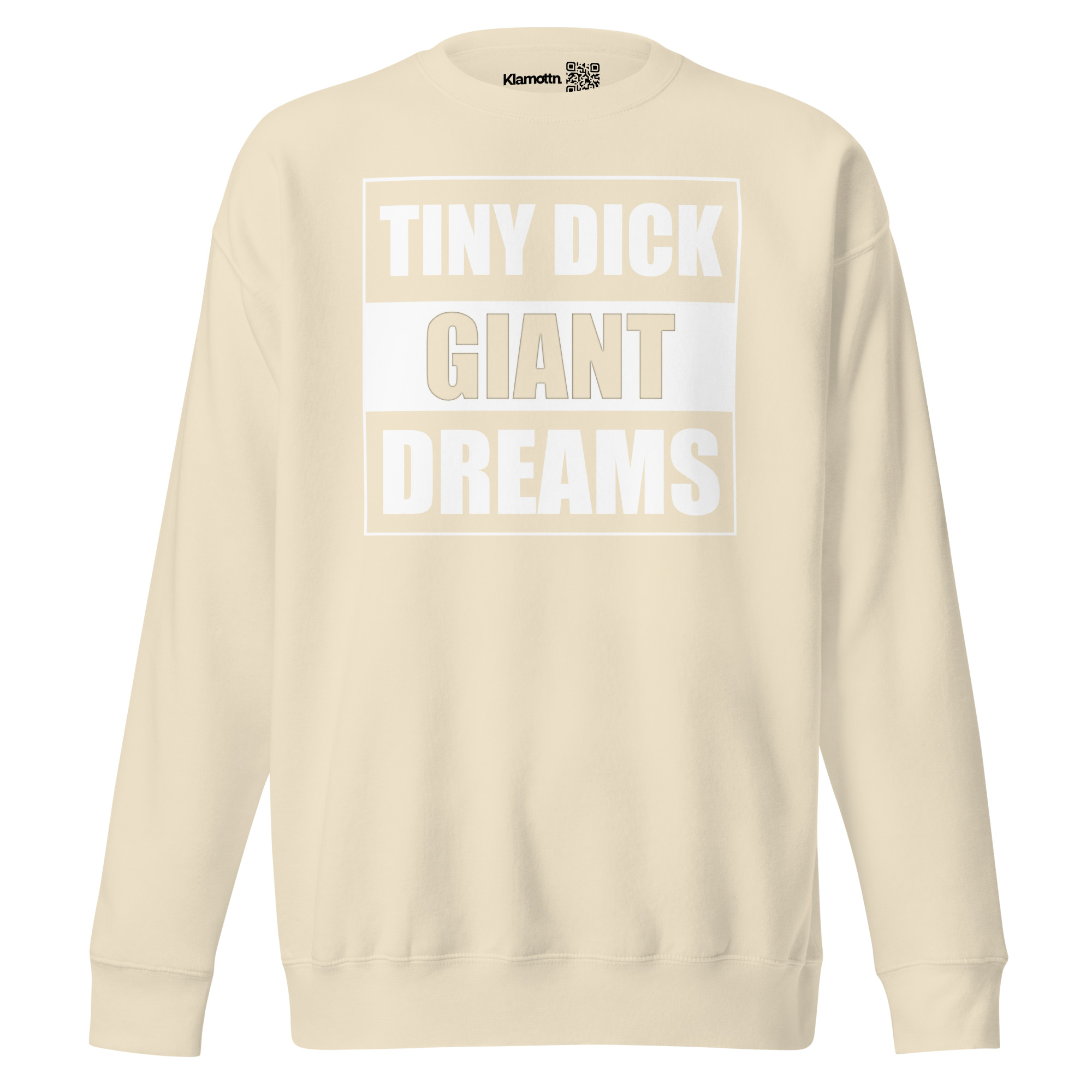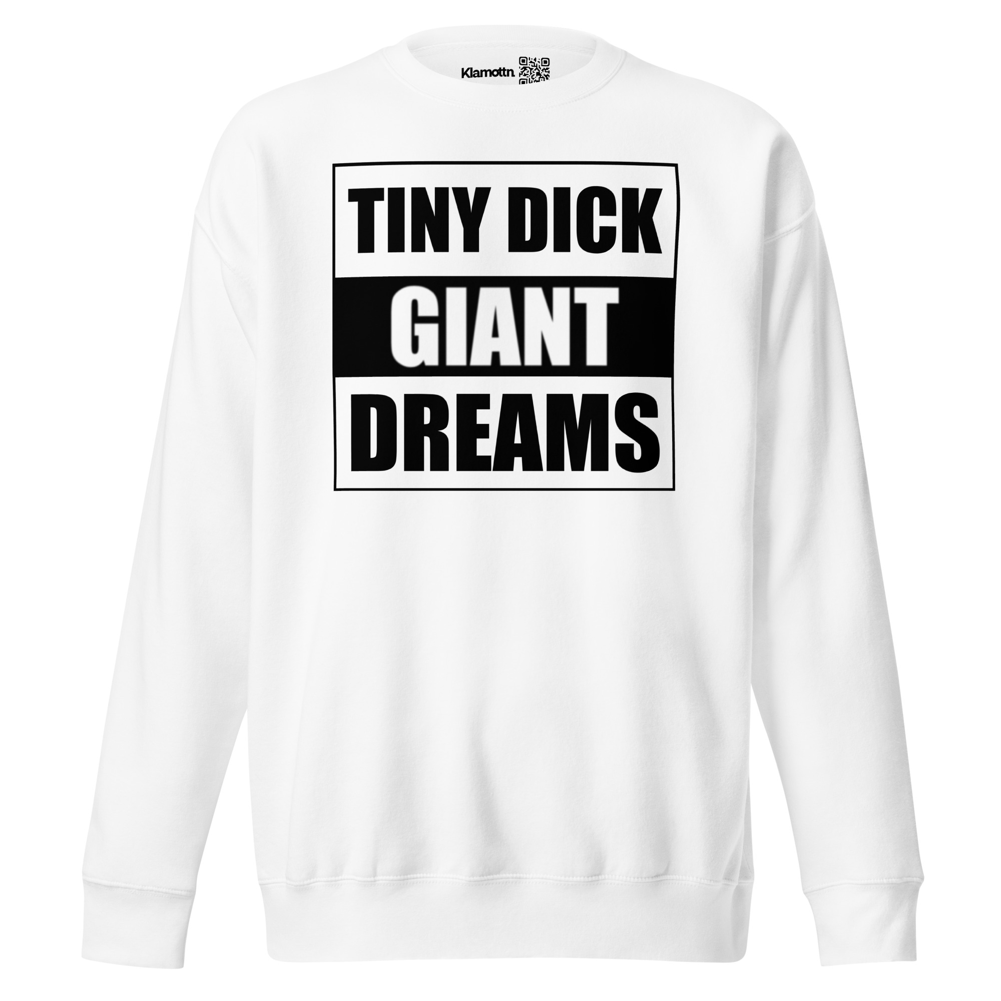 Klein anfangen, groß träumen – dieses Motiv bringt es auf den Punkt. Mit seinem provokanten Statement sorgt es garantiert für Aufmerksamkeit und ein Schmunzeln. Es steht für Selbstironie, Mut und die Größe deiner Visionen, egal was andere sagen. Wahre Größe wird nicht in Zentimetern gemessen wird, sondern in deinen Ambitionen. Dein Schwanz spielt dabei keine Rolle. Winziger Schwanz, riesige Träume. Dieses Design schreit förmlich nach Selbstbewusstsein und einem Augenzwinkern zugleich. Perfekt für alle, die Humor mit einer klaren Botschaft verbinden wollen. Ob im Alltag, beim Feiern oder als klares Statement auf der Straße – hier setzt du ein starkes Zeichen. Ein Must-Have für alle, die Konventionen sprengen und zeigen wollen, dass ihre Träume größer sind als jede Begrenzung.