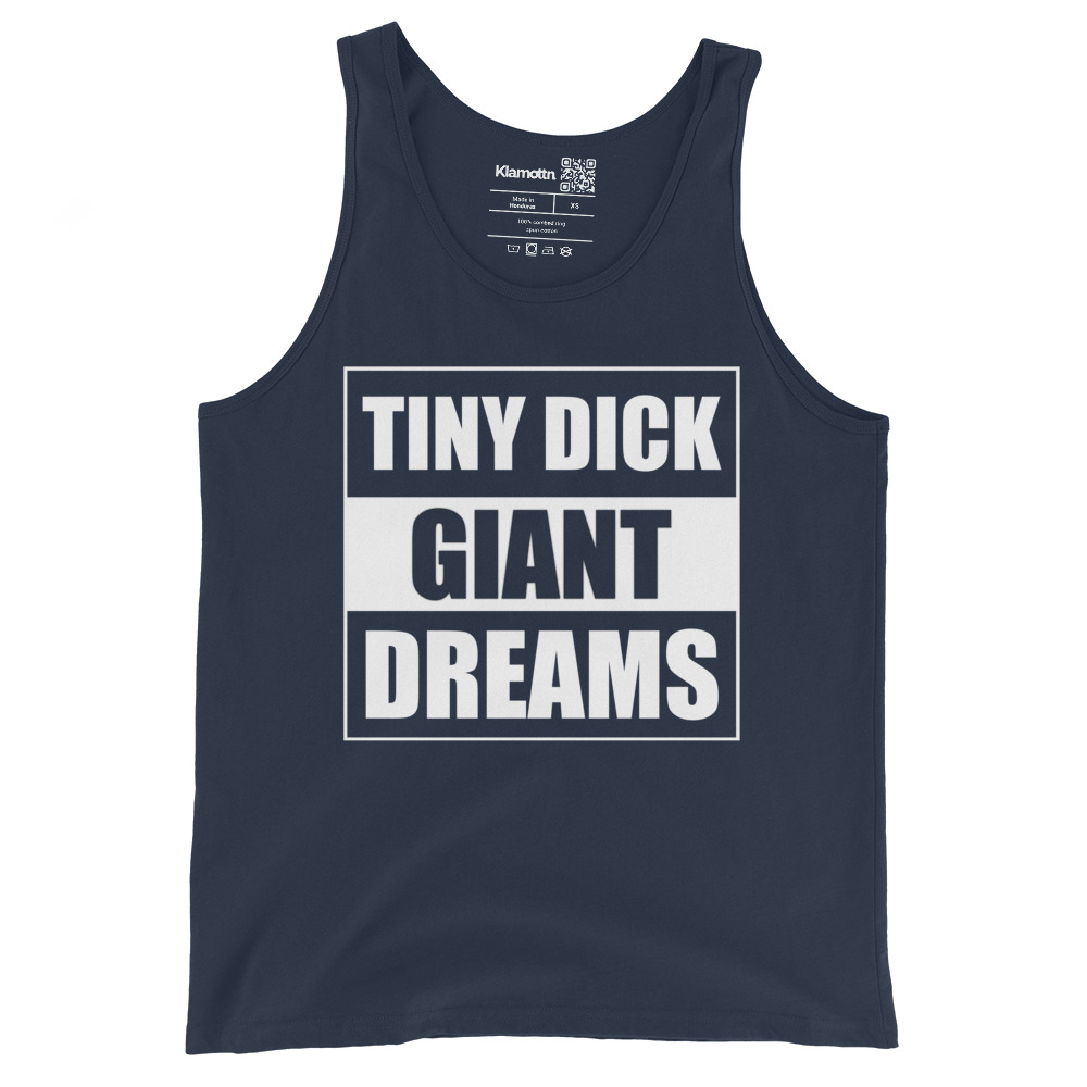 Klein anfangen, groß träumen – dieses Motiv bringt es auf den Punkt. Mit seinem provokanten Statement sorgt es garantiert für Aufmerksamkeit und ein Schmunzeln. Es steht für Selbstironie, Mut und die Größe deiner Visionen, egal was andere sagen. Wahre Größe wird nicht in Zentimetern gemessen wird, sondern in deinen Ambitionen. Dein Schwanz spielt dabei keine Rolle. Winziger Schwanz, riesige Träume. Dieses Design schreit förmlich nach Selbstbewusstsein und einem Augenzwinkern zugleich. Perfekt für alle, die Humor mit einer klaren Botschaft verbinden wollen. Ob im Alltag, beim Feiern oder als klares Statement auf der Straße – hier setzt du ein starkes Zeichen. Ein Must-Have für alle, die Konventionen sprengen und zeigen wollen, dass ihre Träume größer sind als jede Begrenzung.