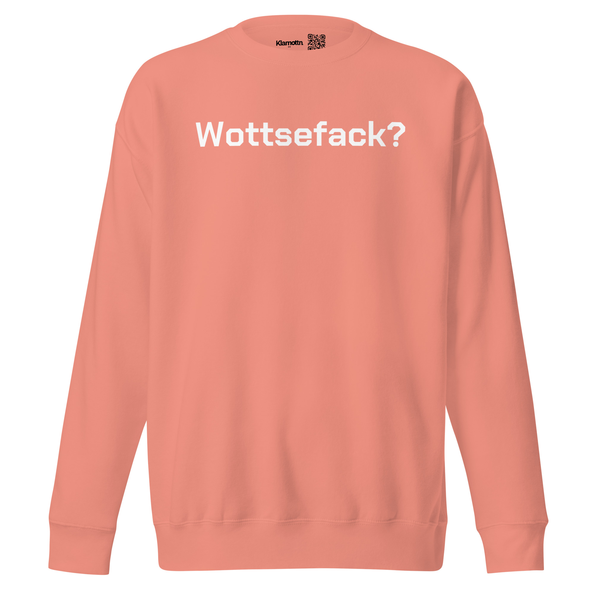 Egal, ob du überrascht, verwundert oder einfach nur ratlos bist, dieser Spruch sagt alles, was du nicht in Worte fassen kannst! Mit “Wottsefack?” sagst du alles aus, wenn die Welt mal wieder verrücktspielt. Dieses Design bringt deinen inneren WTF-Moment auf den Punkt und sorgt garantiert für schmunzelnde Blicke. Perfekt, um jede Situation humorvoll zu meistern – hol’s dir und zeig deinen ganz persönlichen Ausdruck von “Was geht hier ab?” oder auch “What the Fuck?”.